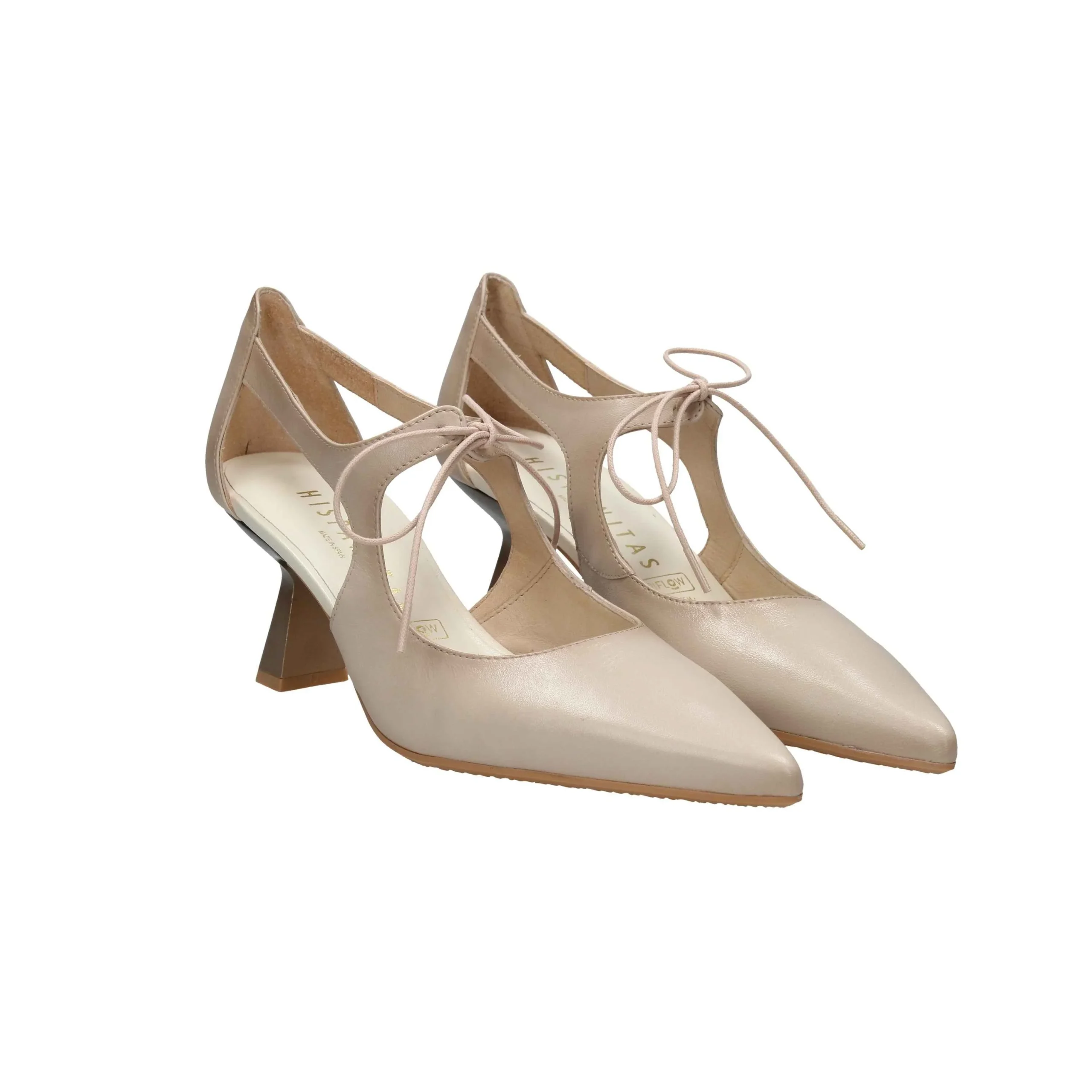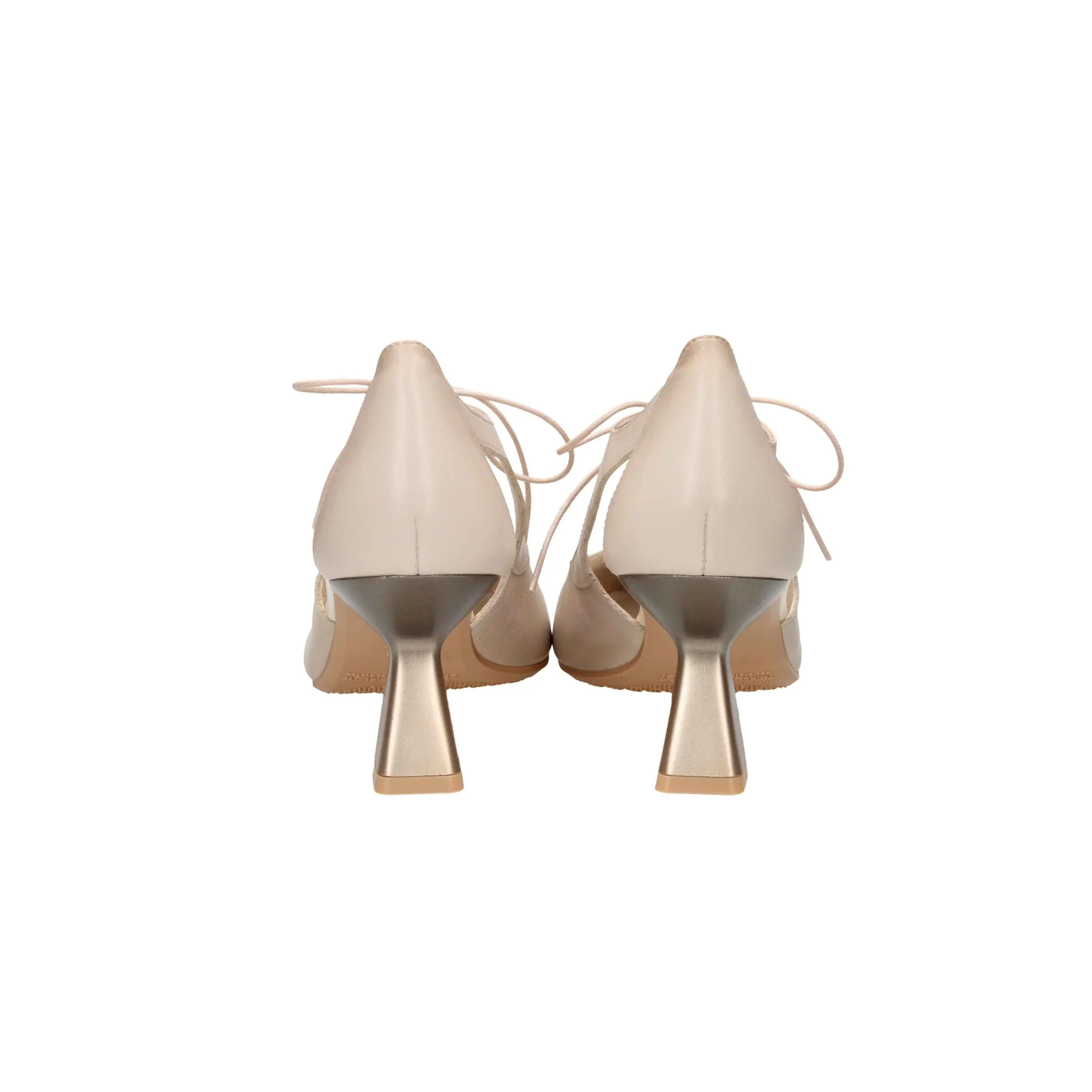 Decollete in pelle, tacco alto 7cm, suola in gomma, con soletta in pelle.
