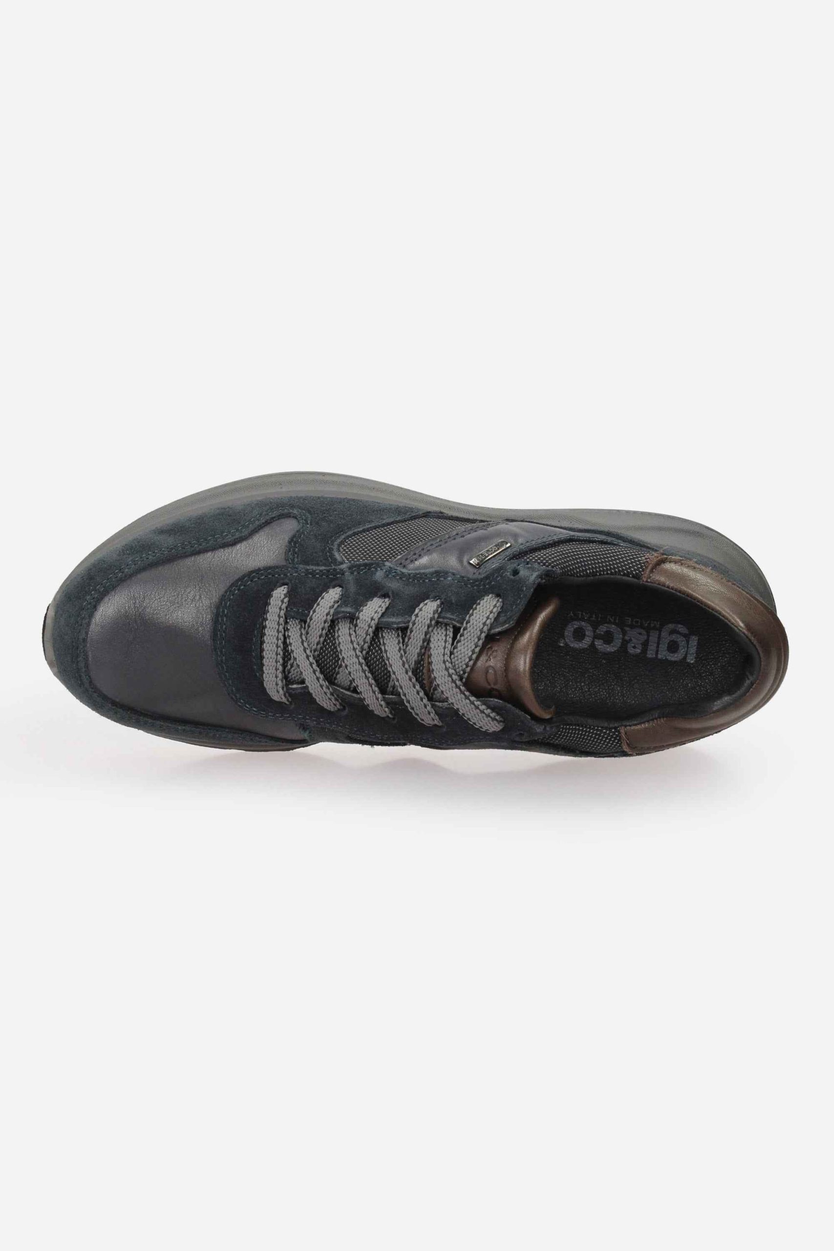 La sneakers in *GORE-TEX è realizzata in camoscio e pelle con dettagli in tela impermeabile e traspirante.