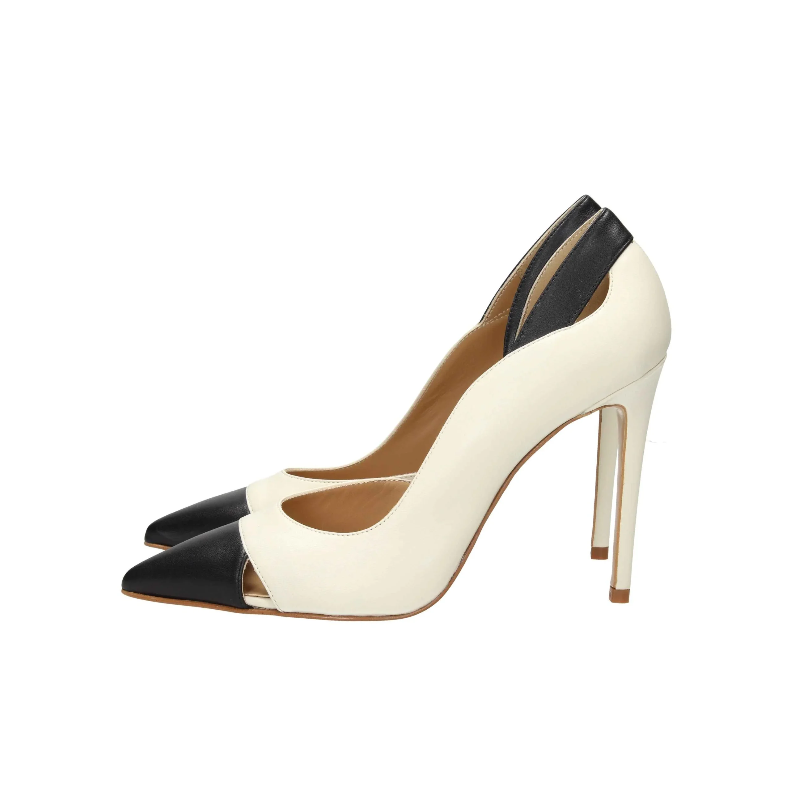 Decollete in nappa, tacco alto 11cm, suola in gomma, soletta in pelle.