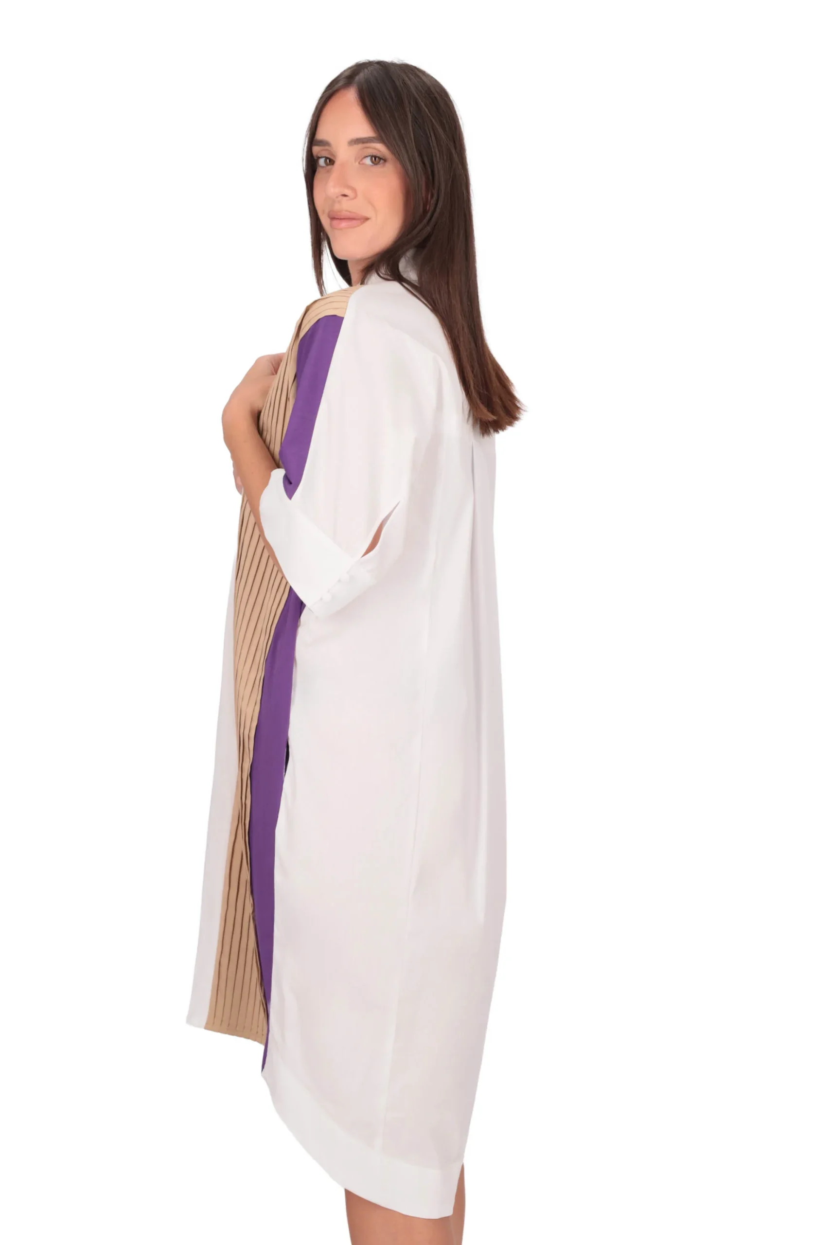 La modella in foto è alta 175 cm e indossa una taglia 40.