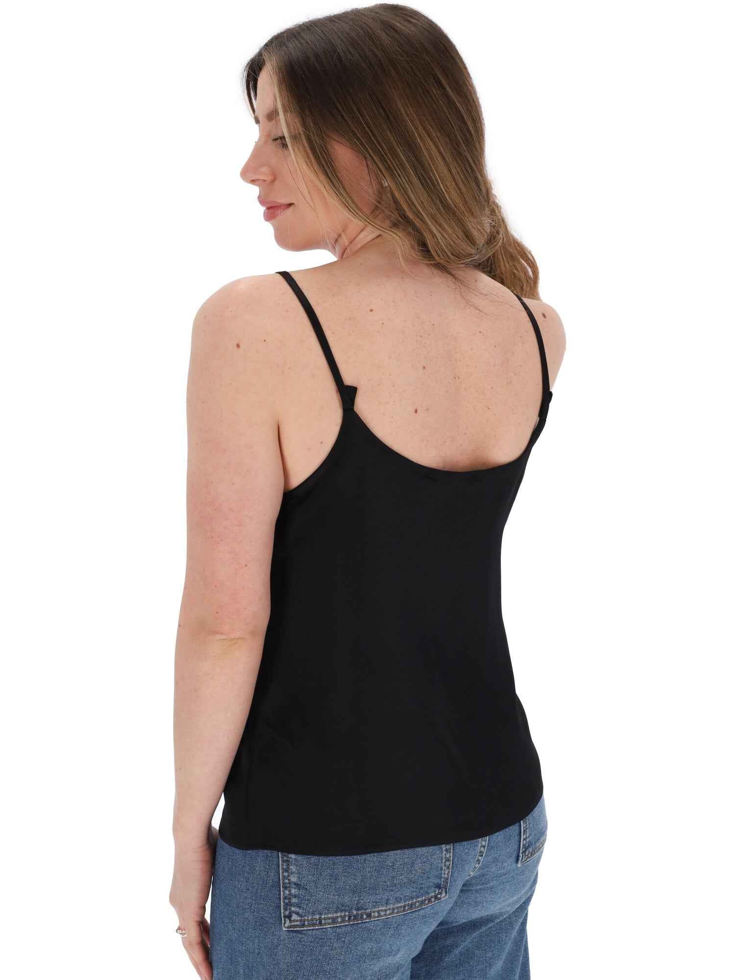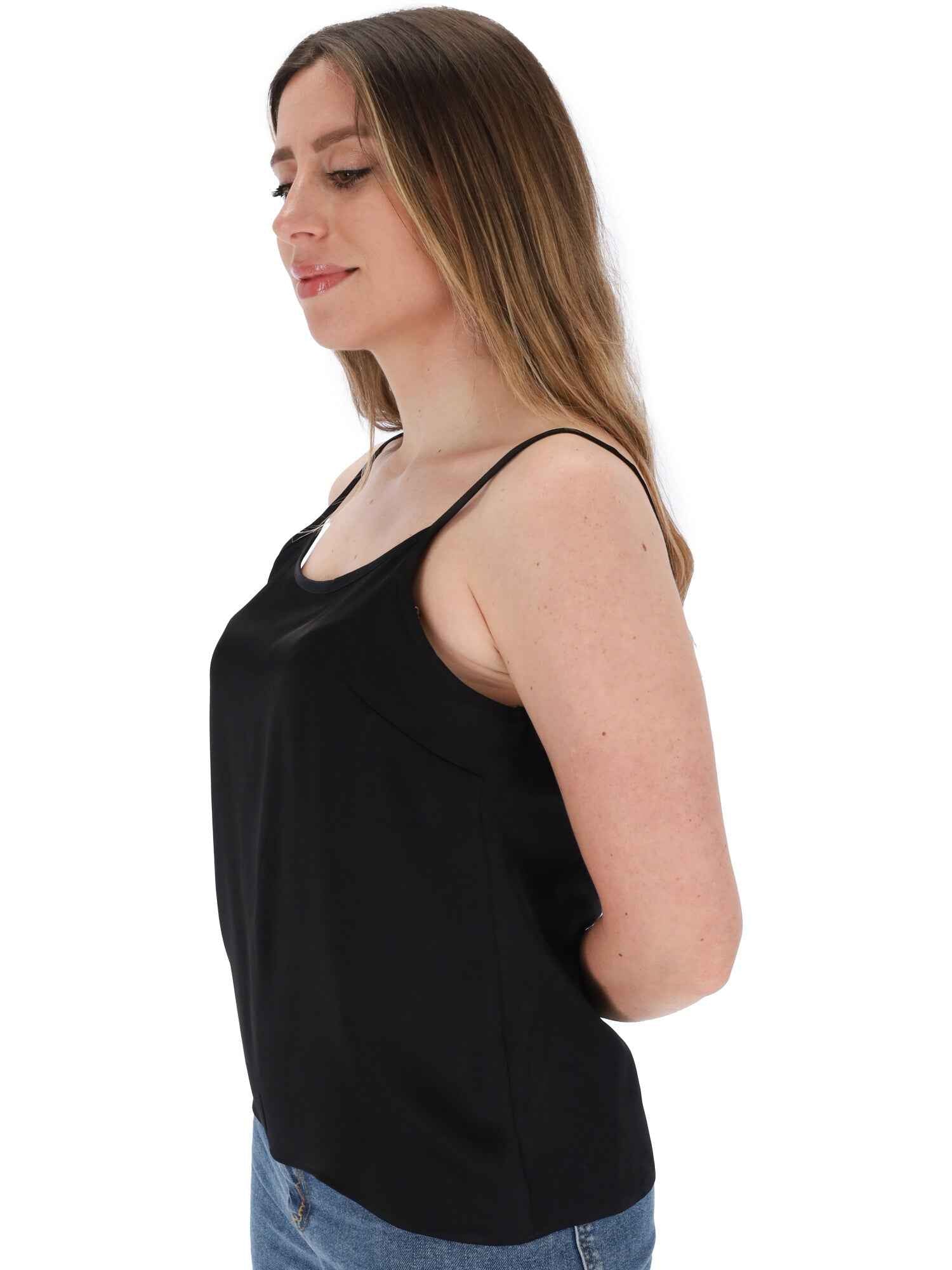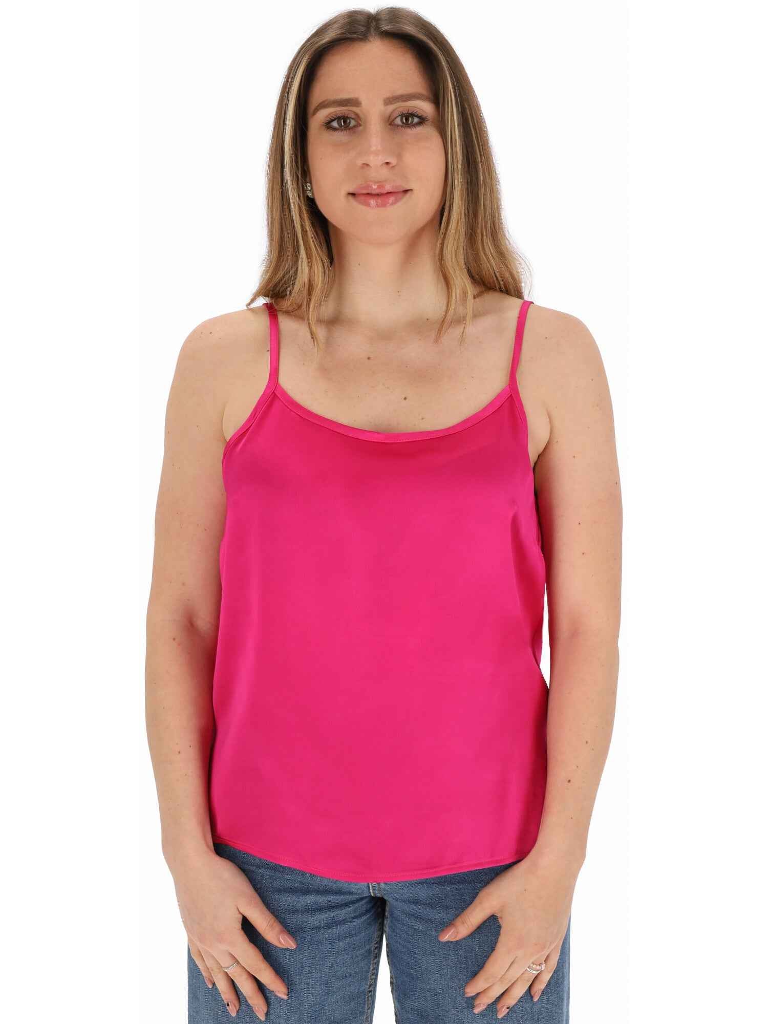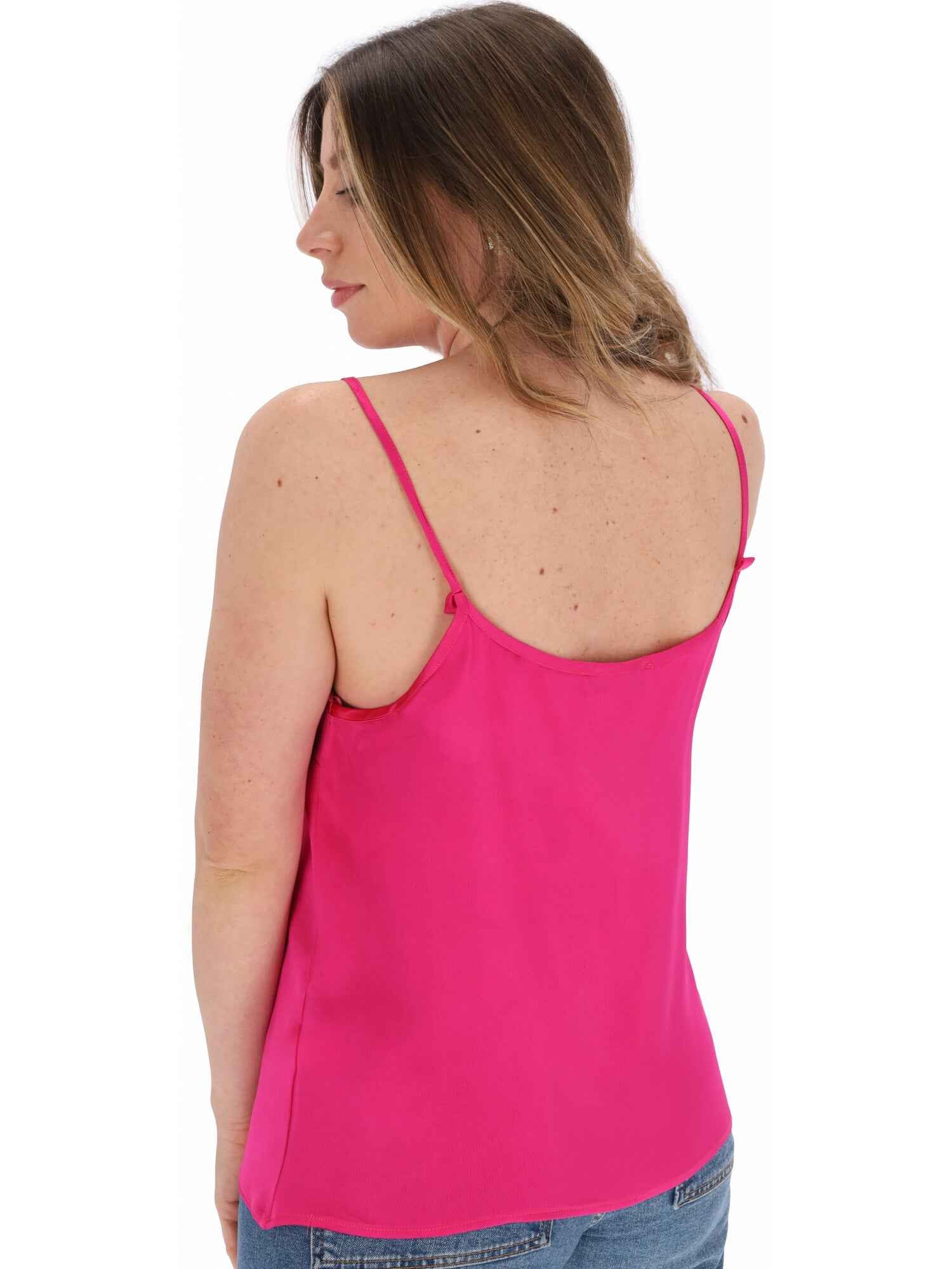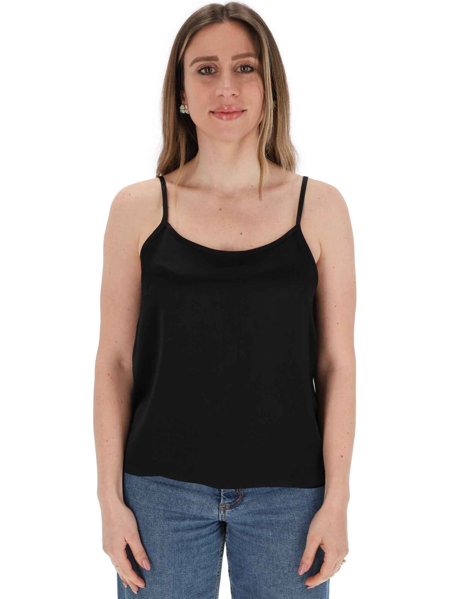 Il top è realizzato in viscosa, con spalline e scollo tondo.
