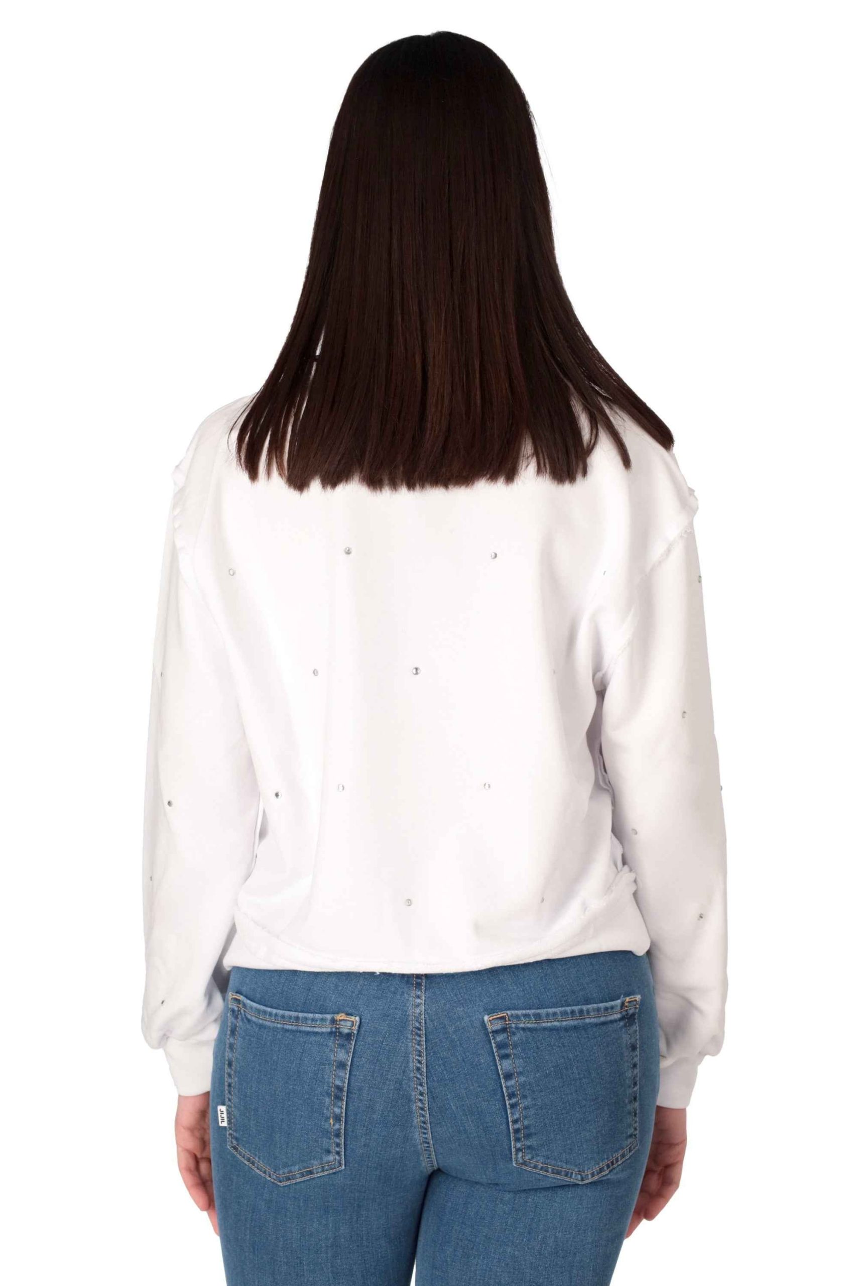 Presenta maniche lunghe con polsini a coste, girocollo e applicazione di strass.