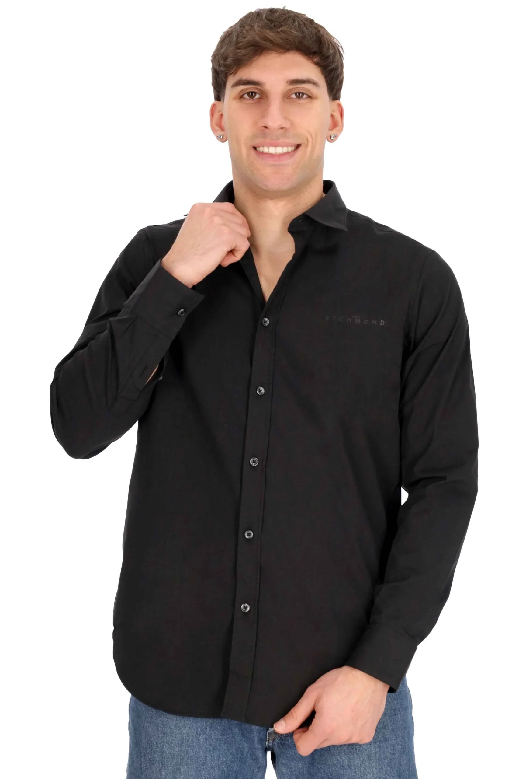 E’ un modello slim fit, con colletto classico, chiusura con bottoni, maniche lunghe con polsini.