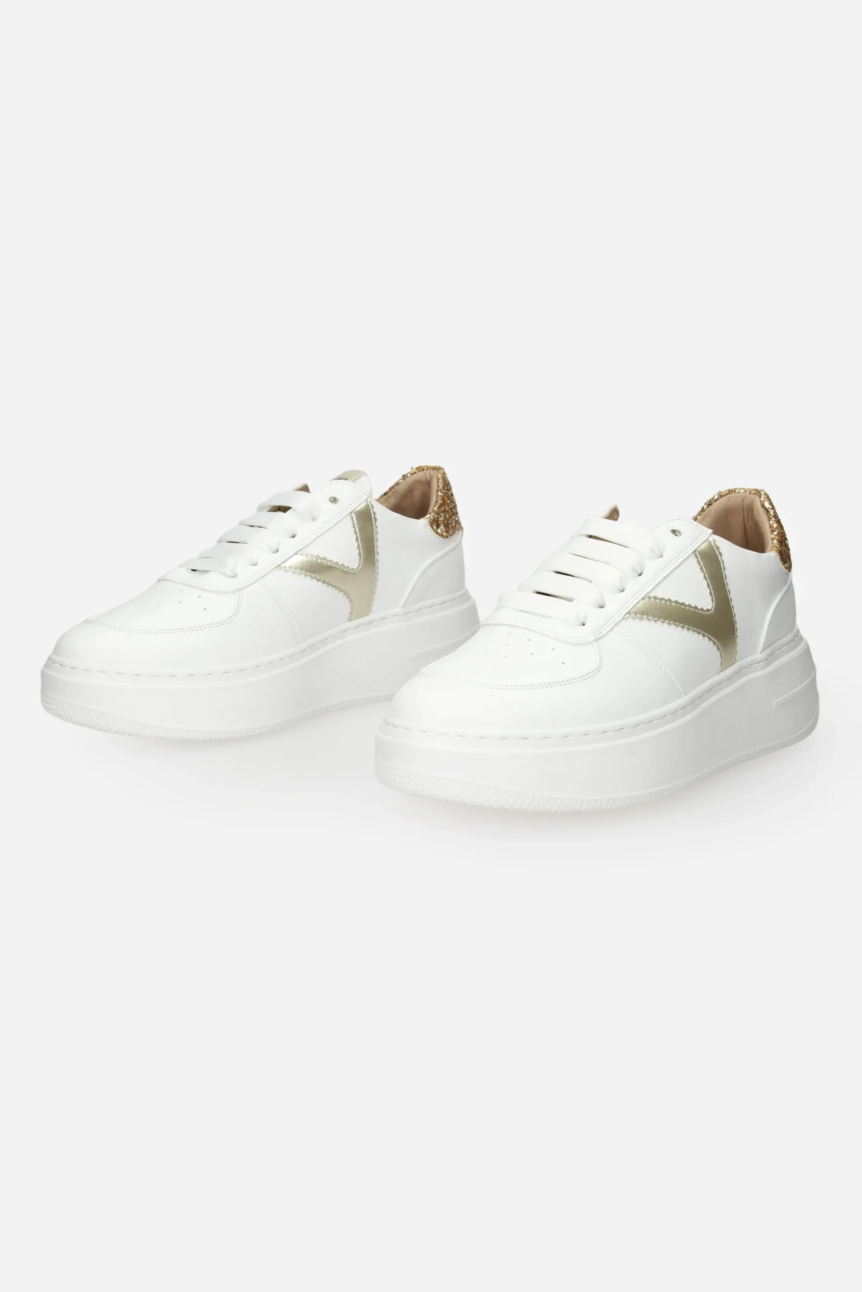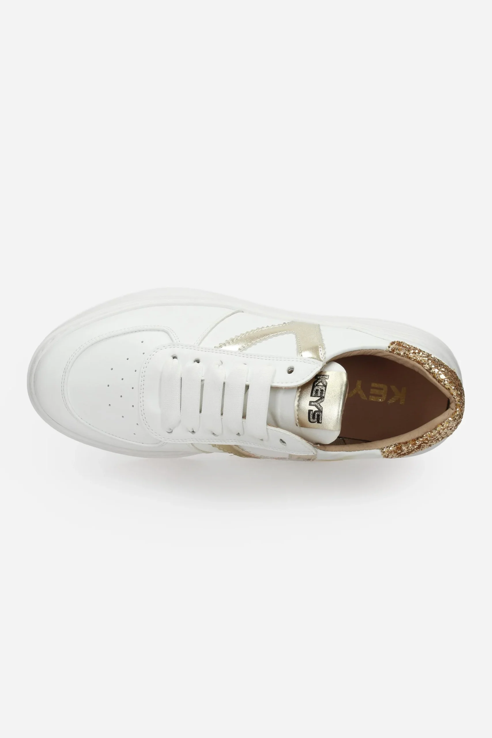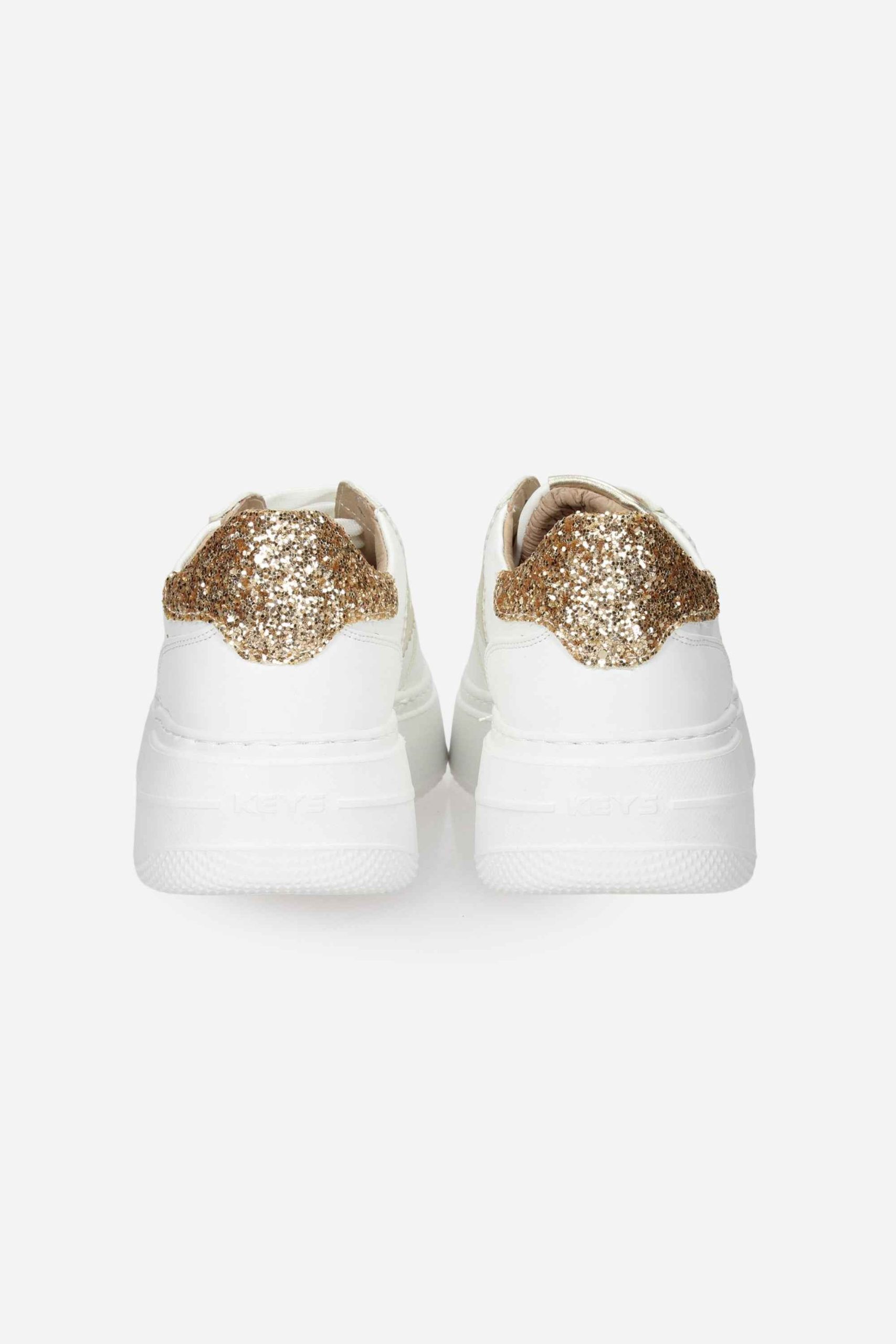 La sneakers è realizzata in ecopelle con dettagli glitter sul retro.