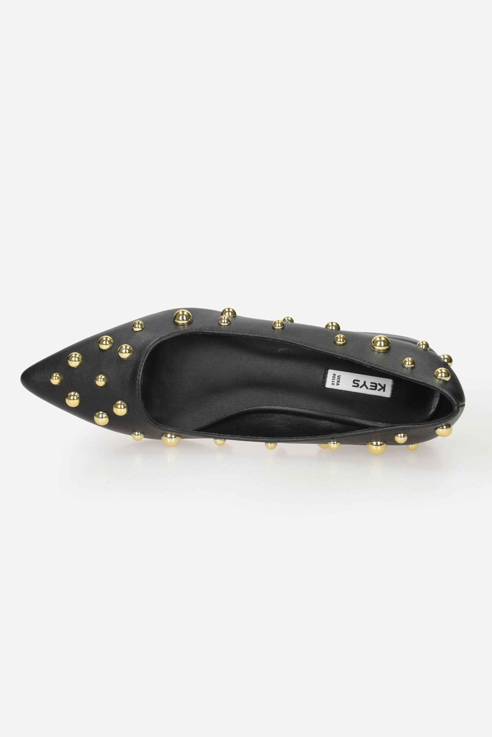 La ballerina è realizzata in ecopelle con borchie.