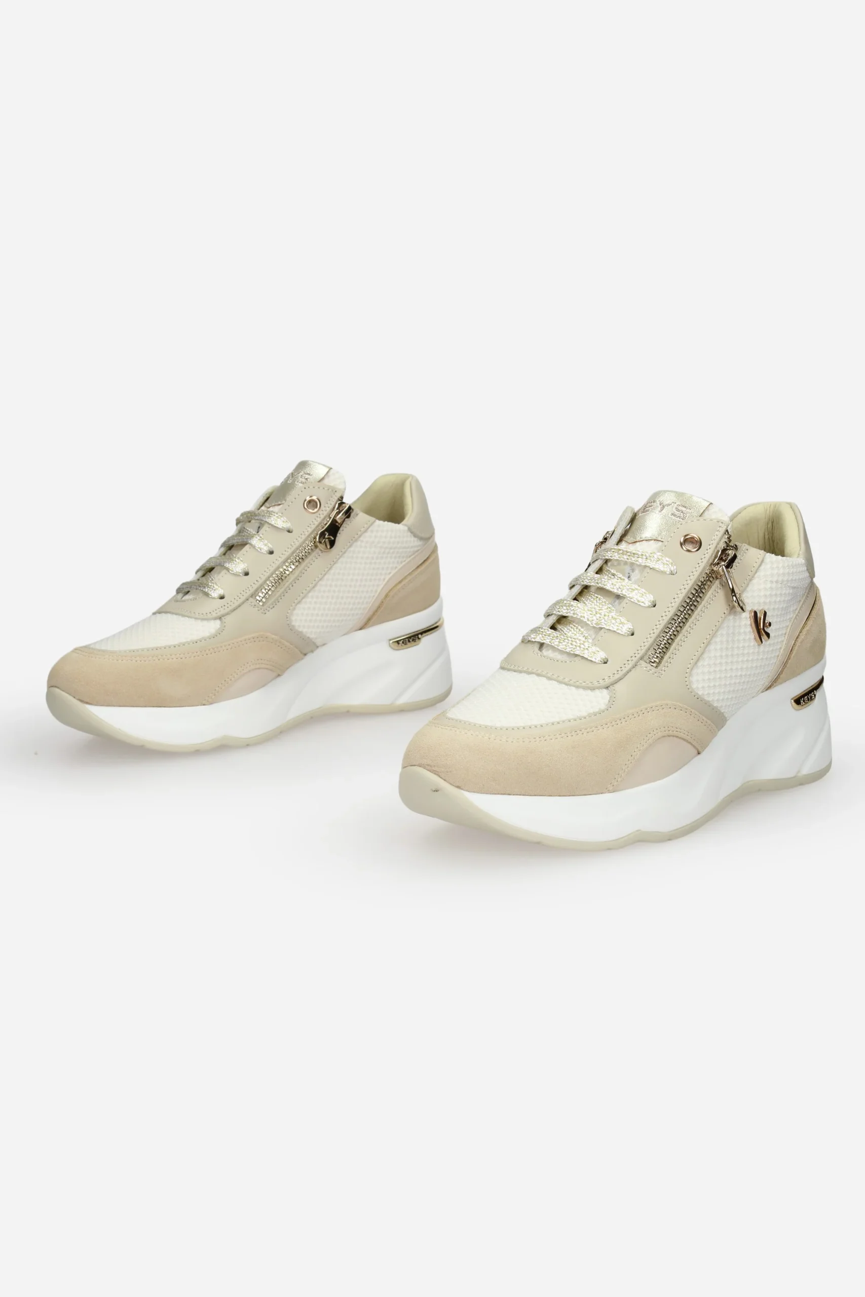 La sneakers è realizzata in camoscio e rete con dettagli in pelle.