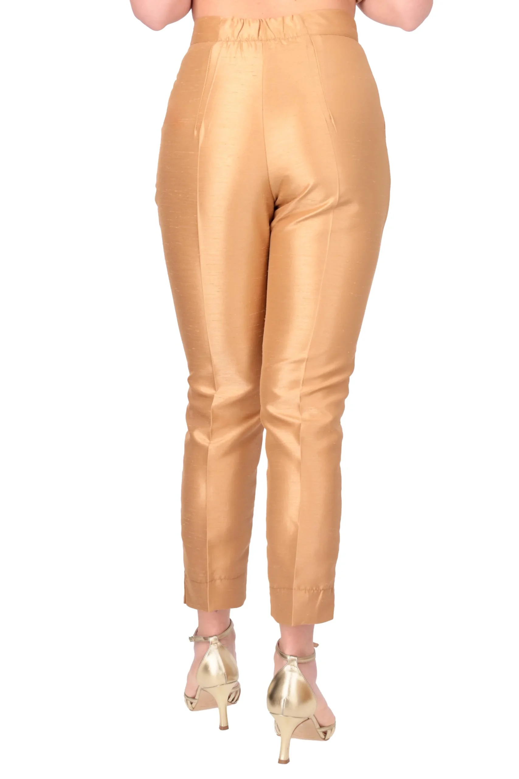 Presenta chiusura con zip laterale, tasche a filetto sui fianchi, risolto sul fondo con spacchetto laterale e fascia elastica sul retro..