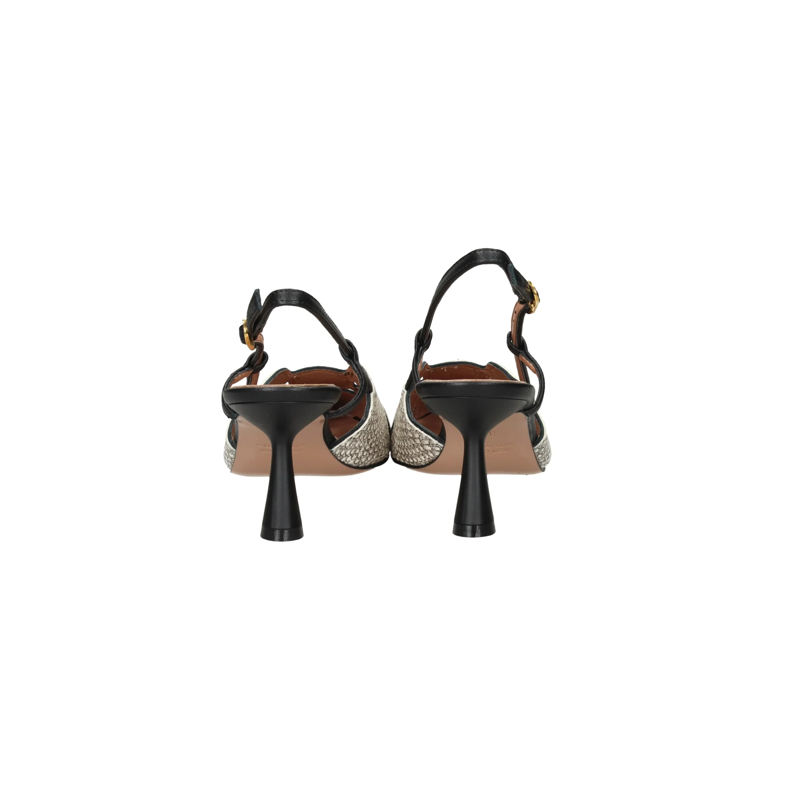 Presenta cinturino al tallone con fibbia regolabile.
