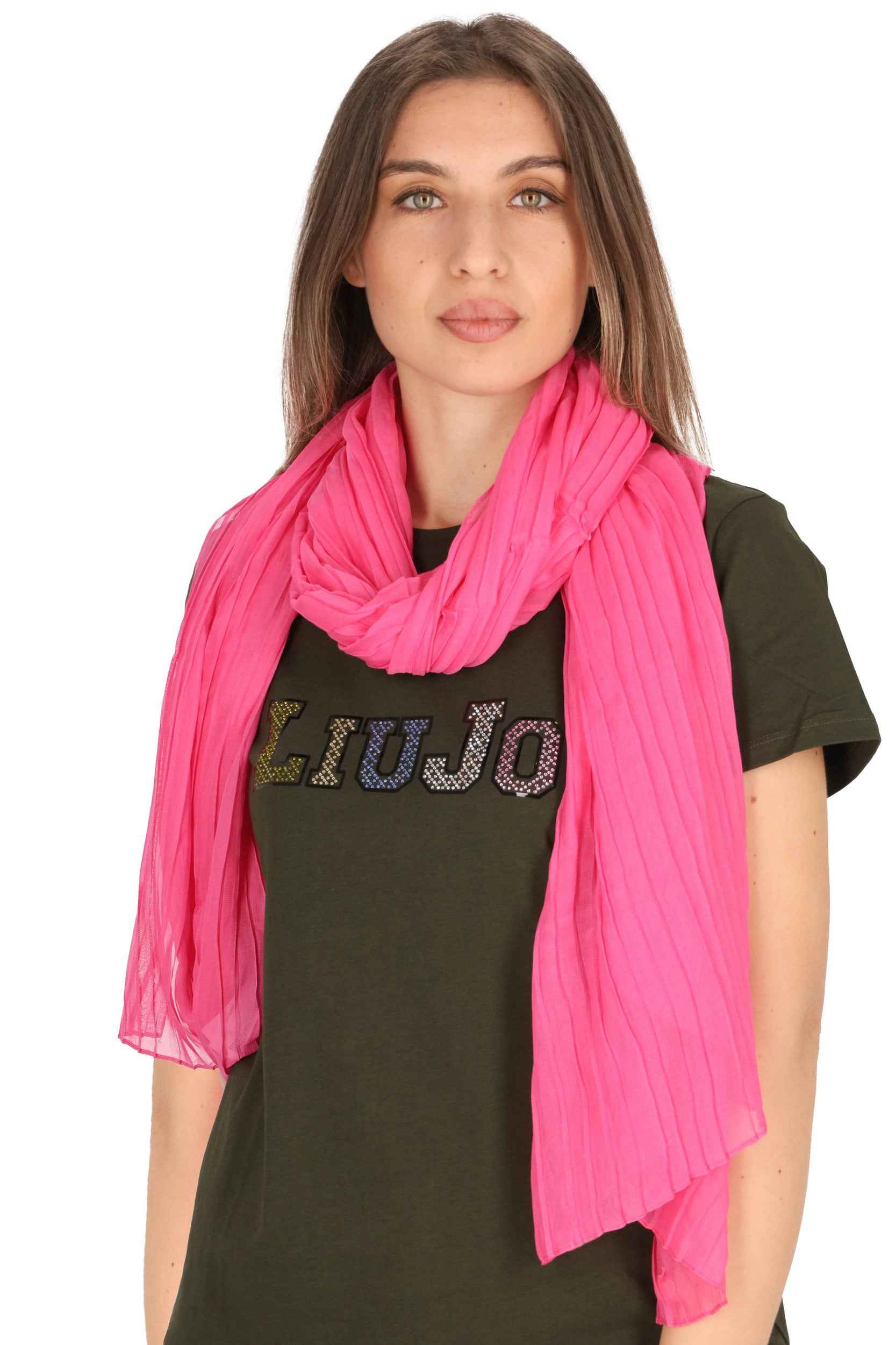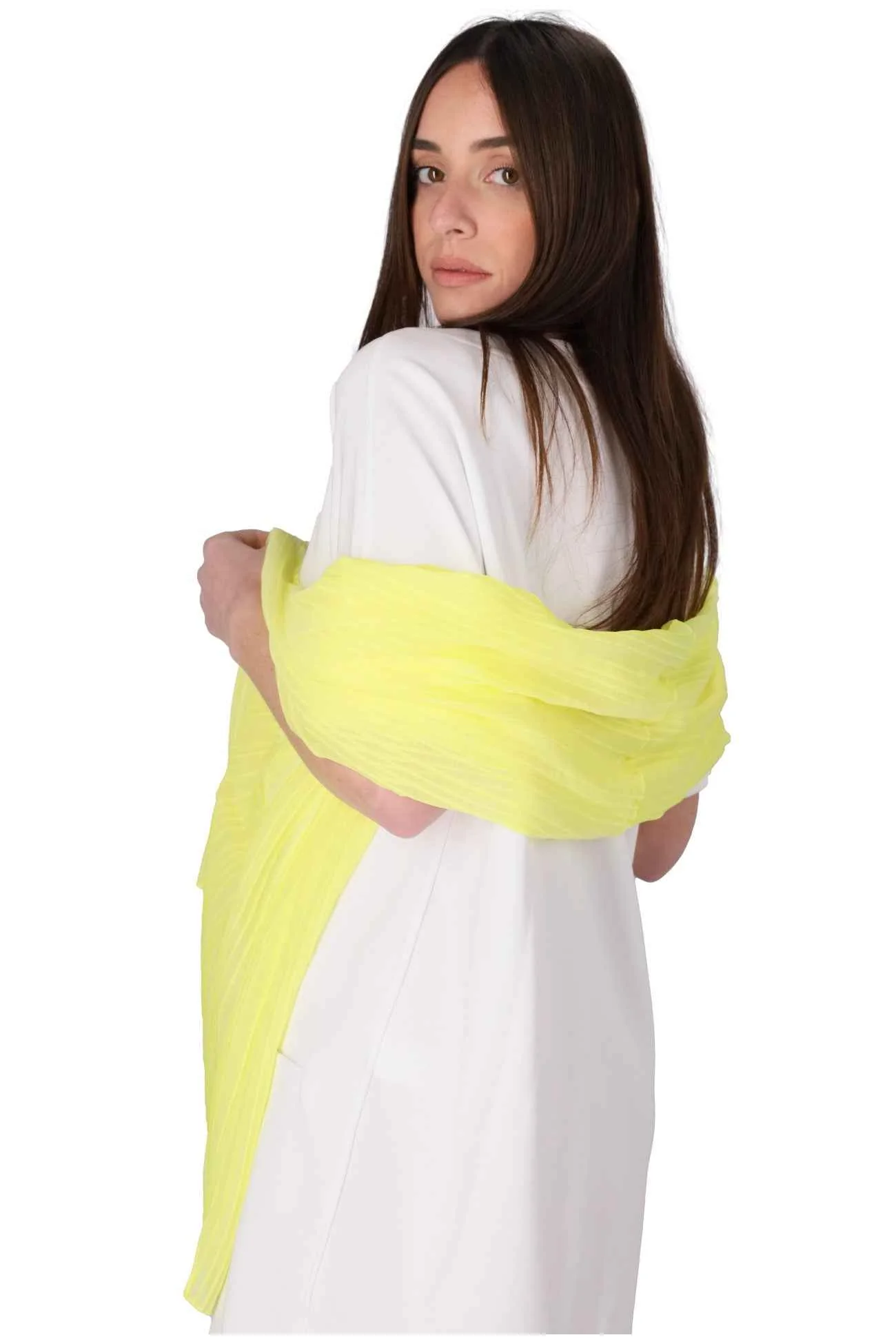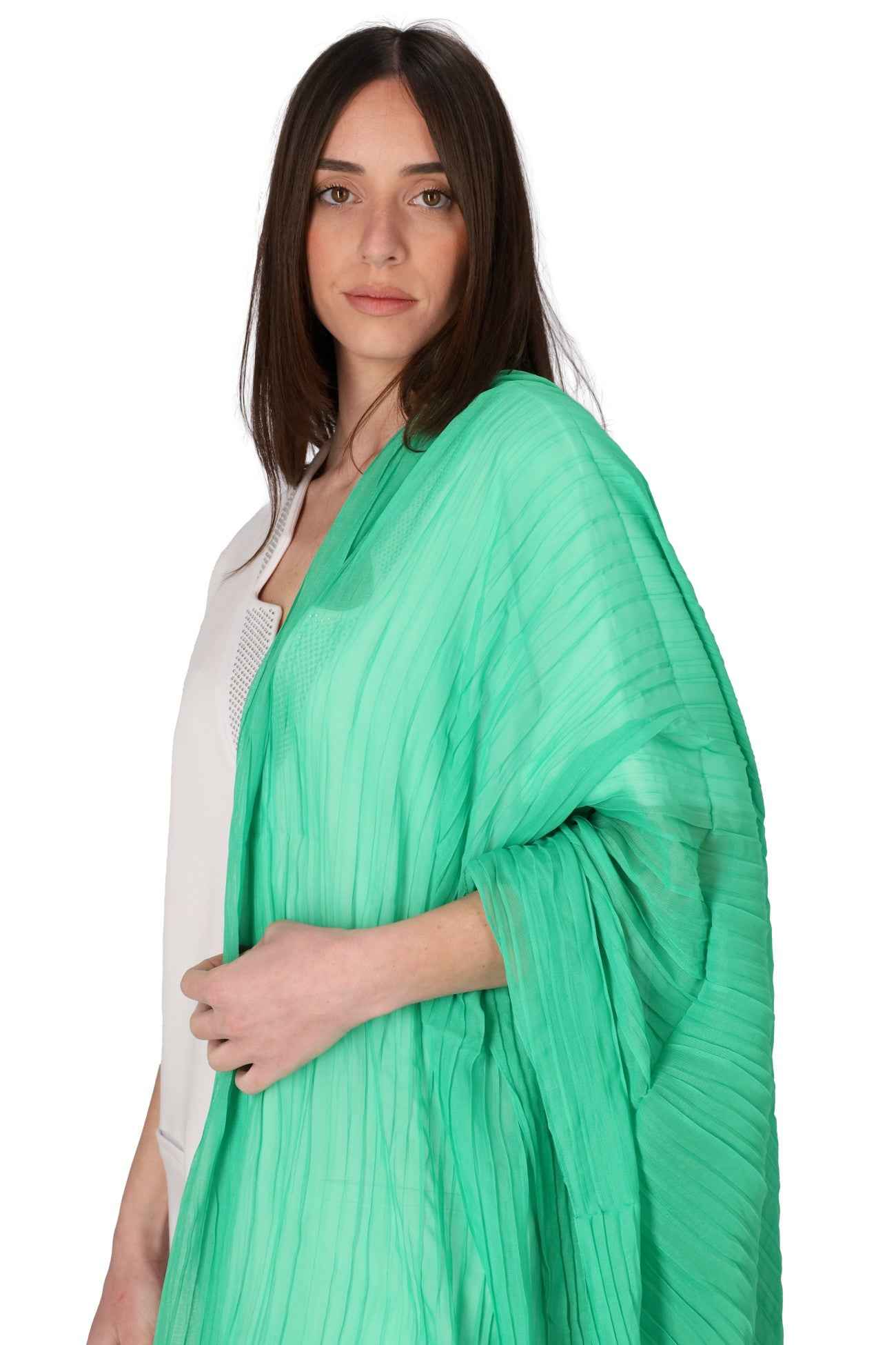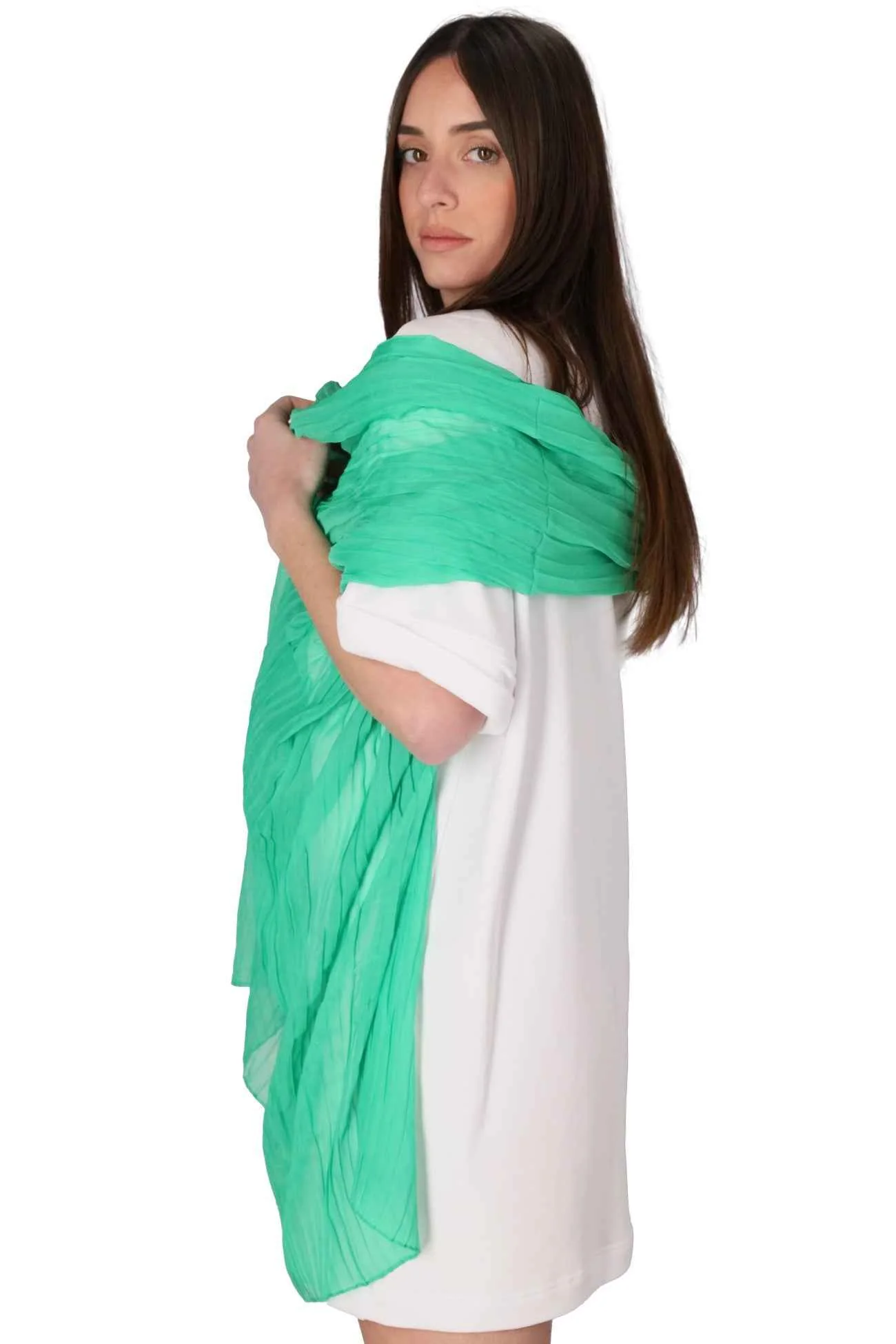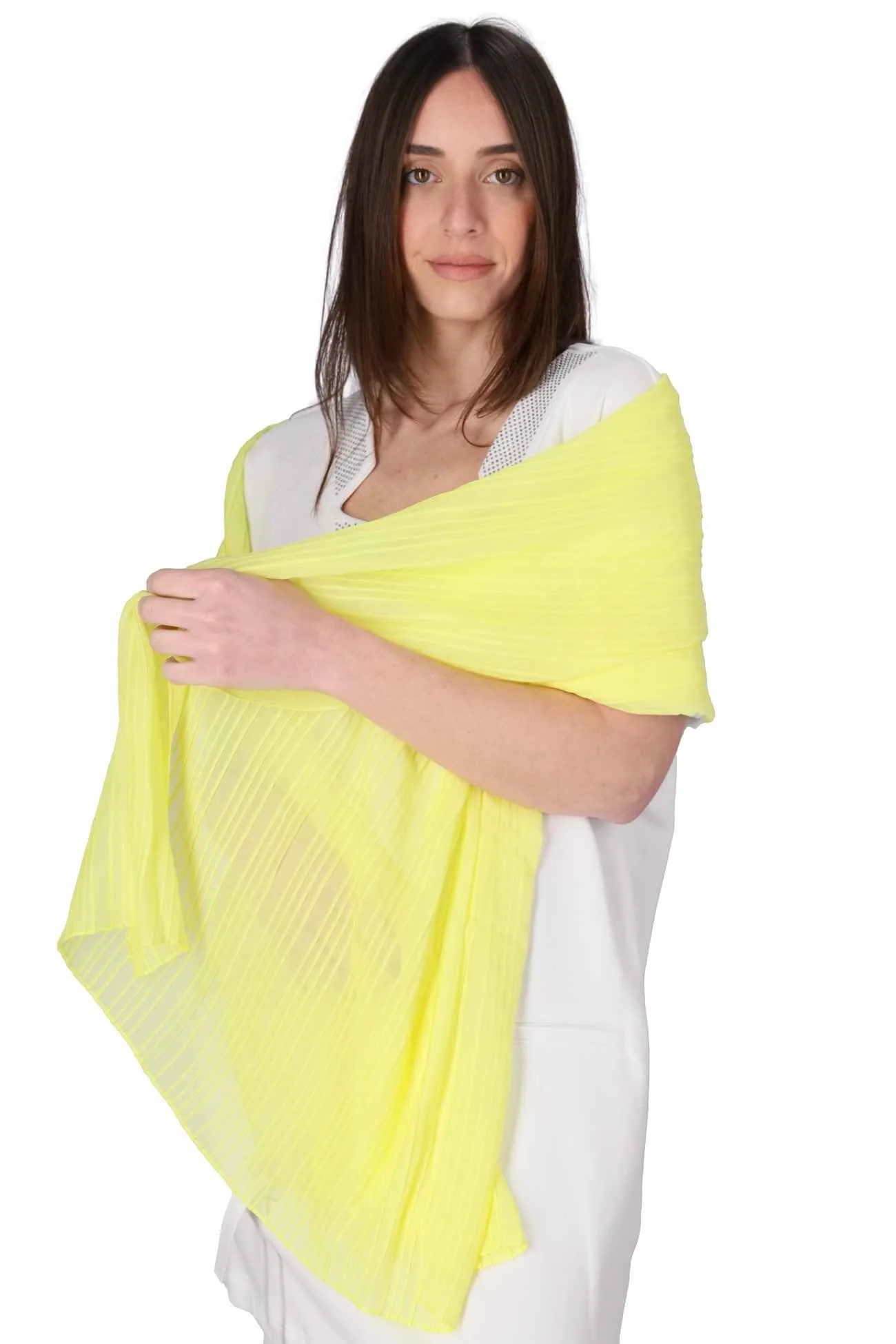 La stola è realizzata in poliestere, con motivo plissé e bordo rifinito.