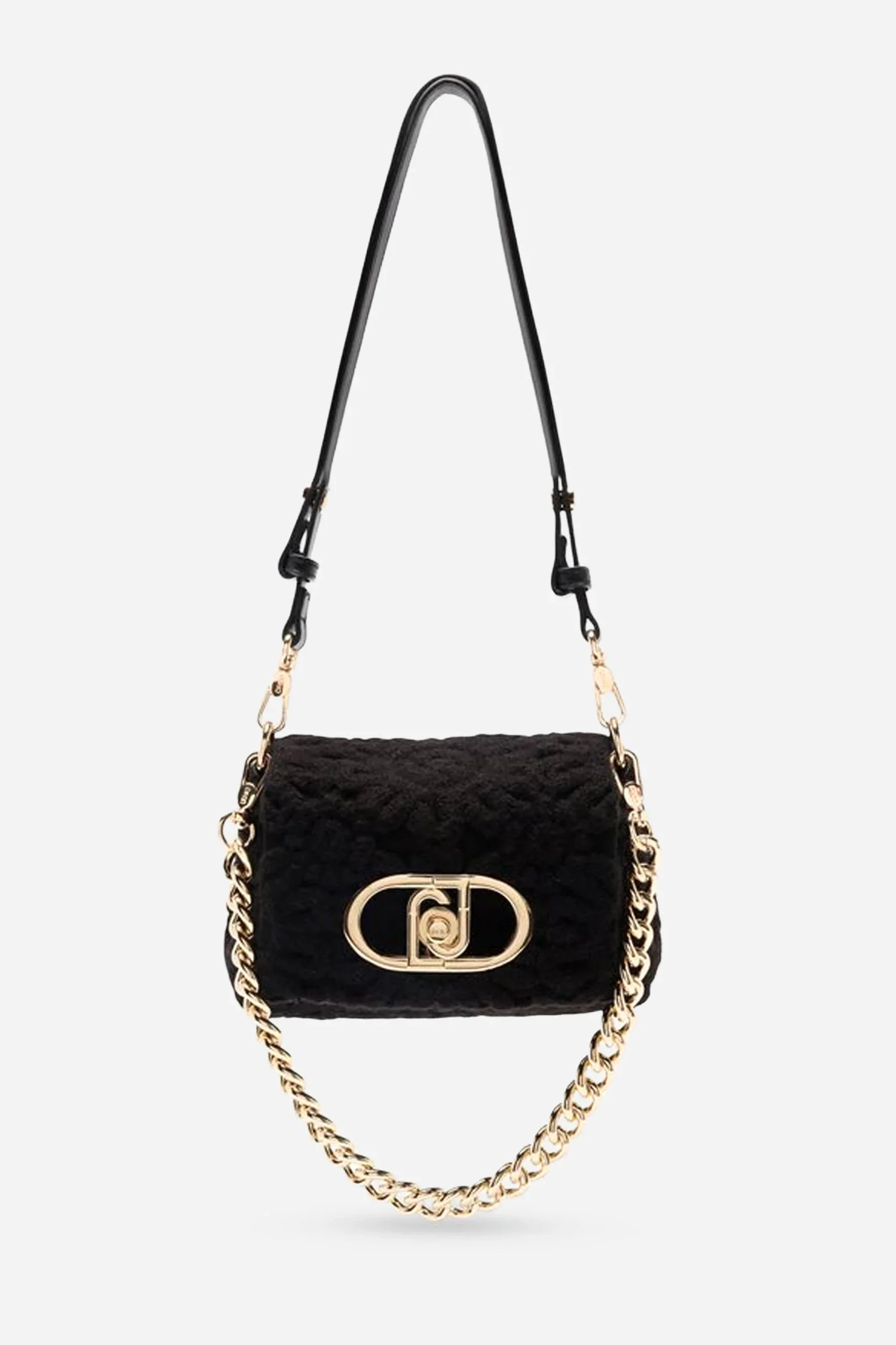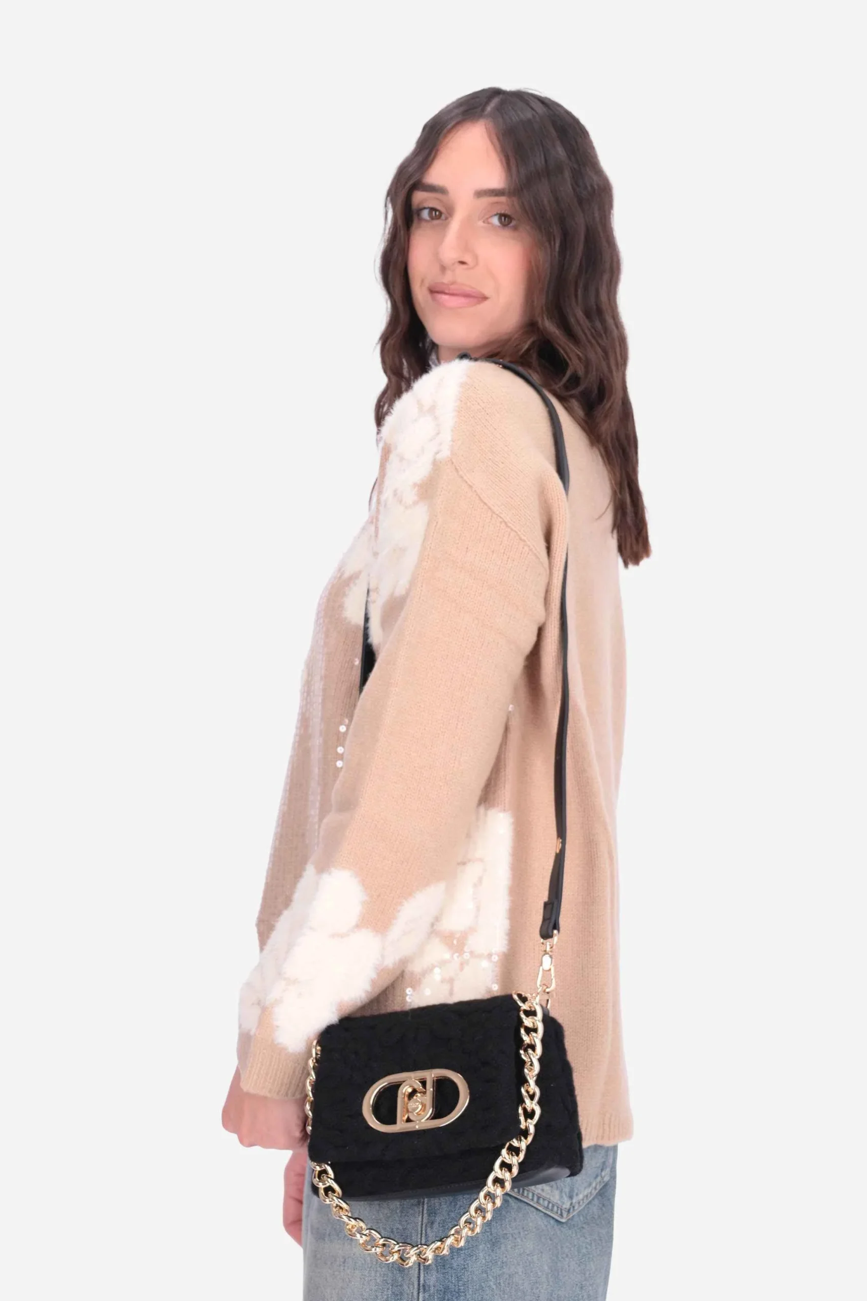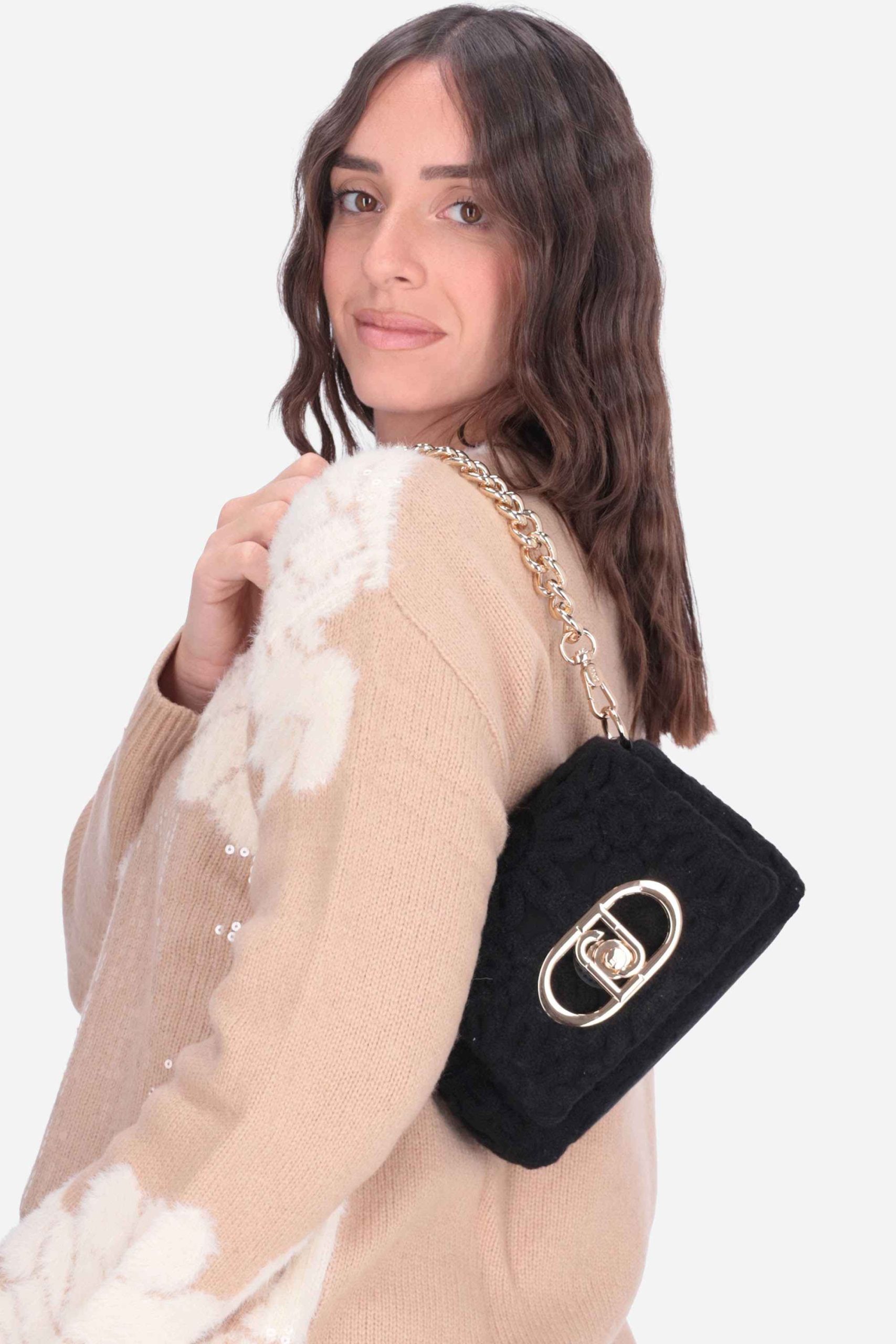 La borsa LaPuffy è realizzata in lana ricamata con logo in metallo sul davanti.