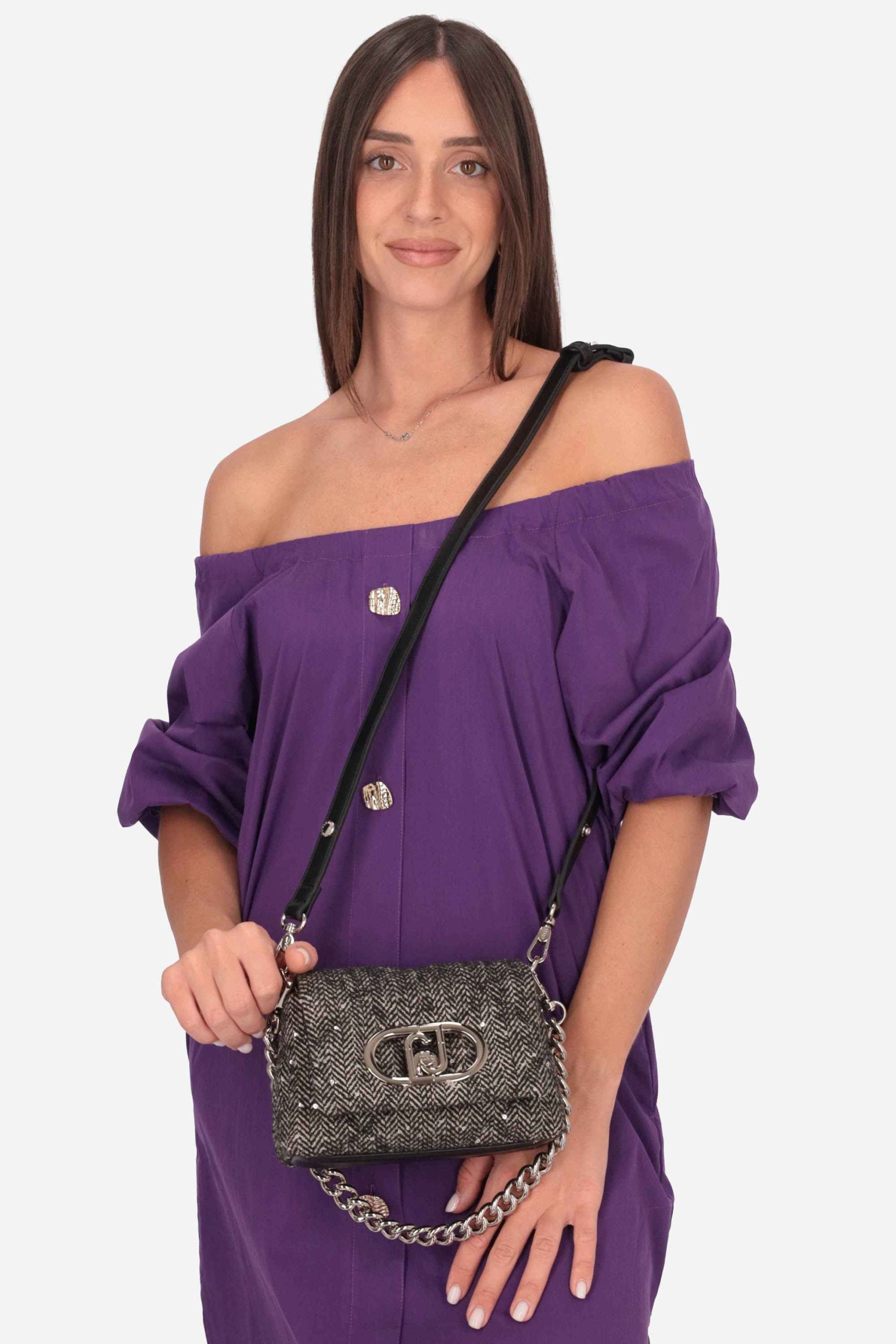 La borsa LaPuffy è realizzata in tessuto con lavorazione a spina di pesce, con logo in metallo sul davanti.