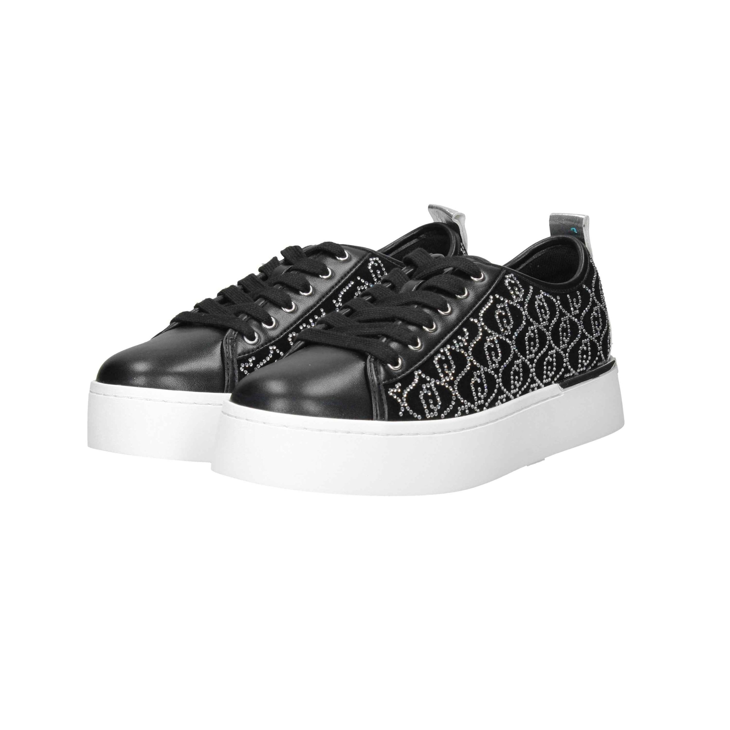 Presenta una chiusura con lacci in cotone sul davanti, strass con logo in applicati su entrambi i lati, plantare estraibile.