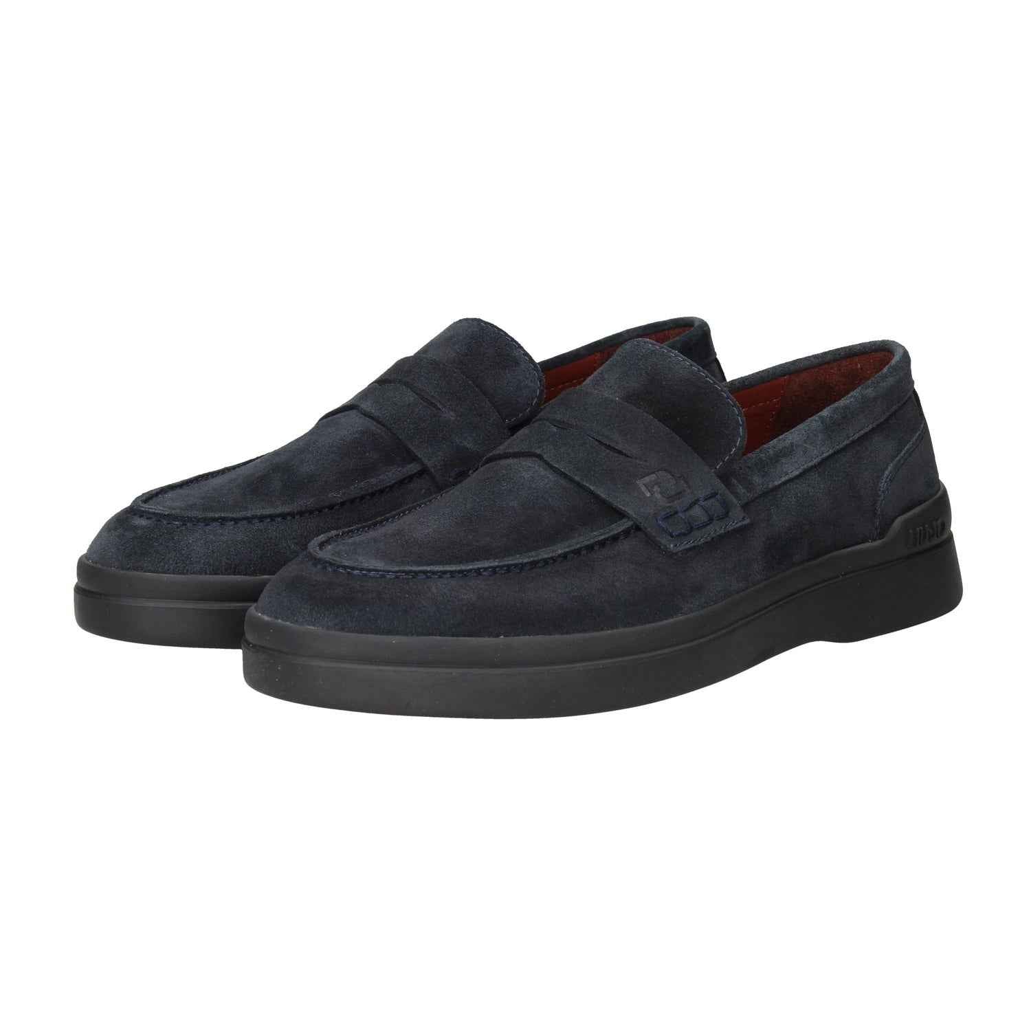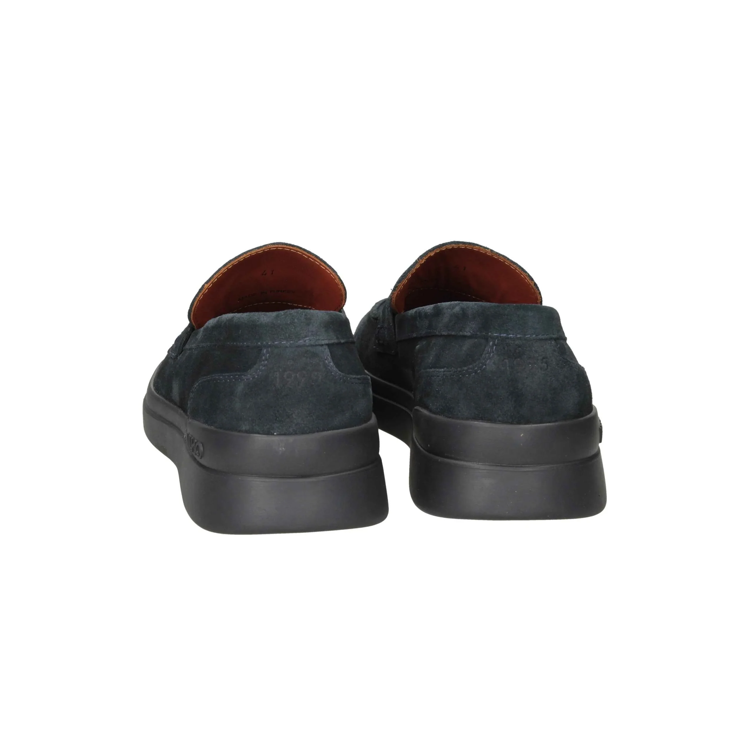 Mocassino in camoscio, suola in gomma, fondo antiscivolo, interno in pelle.