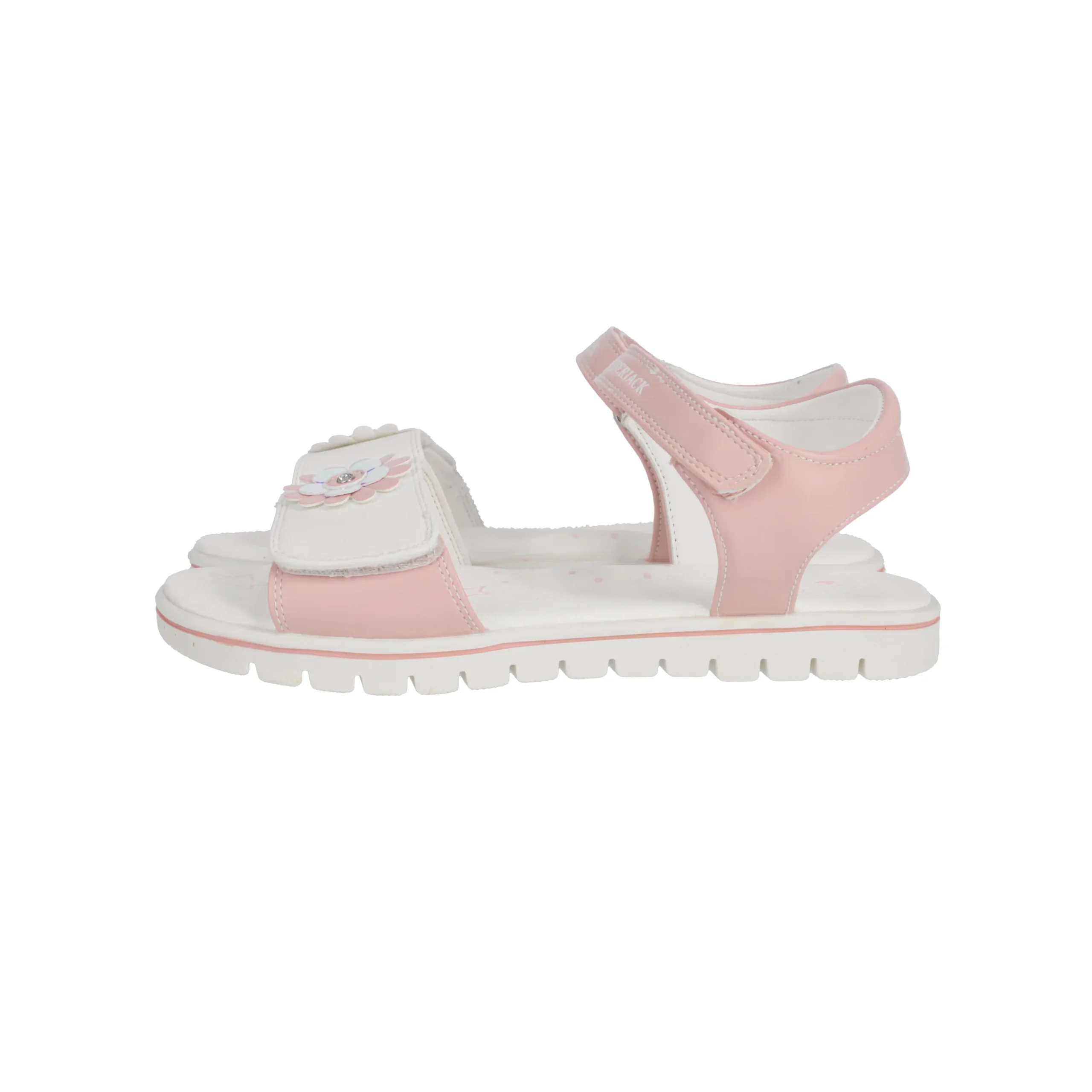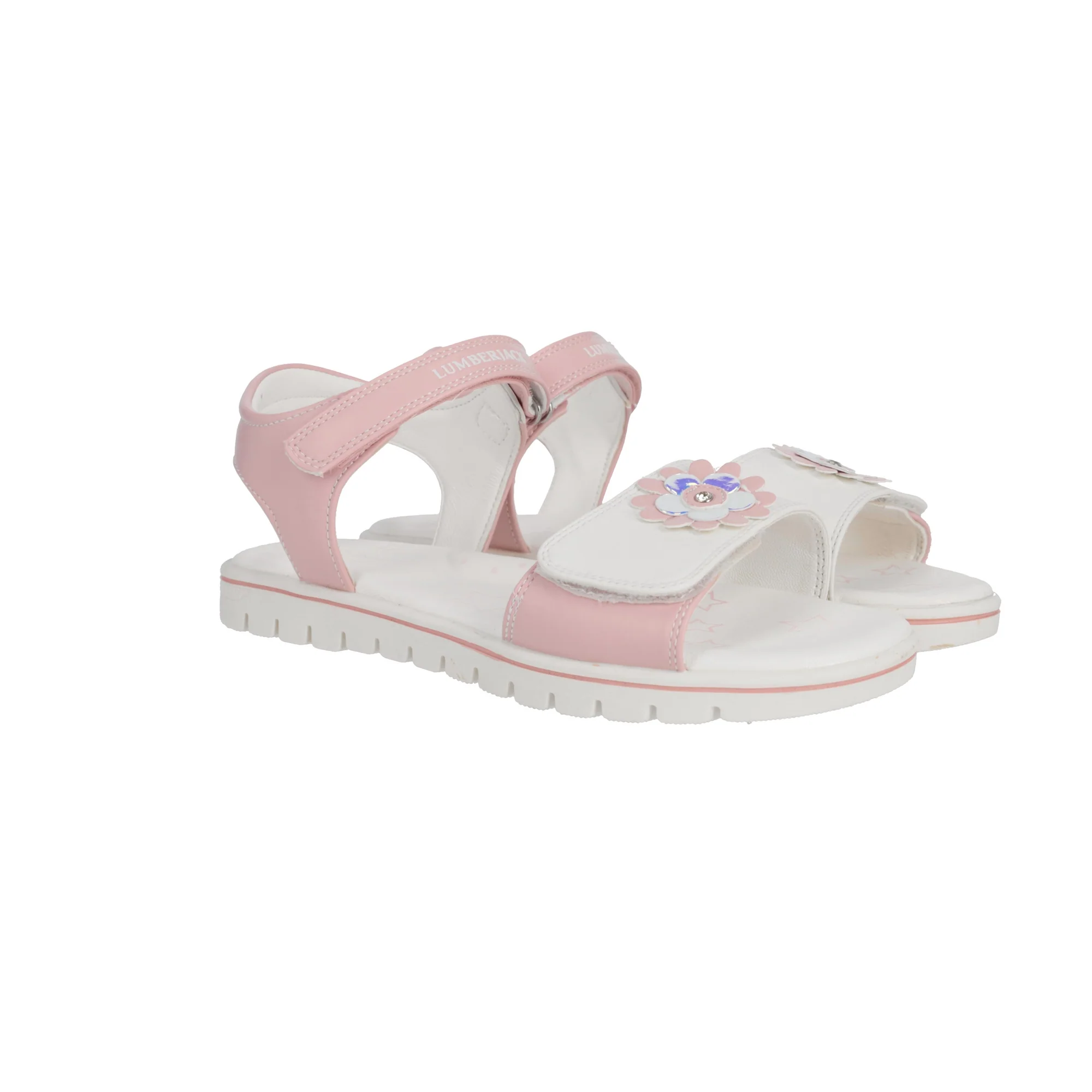 Presenta fascia con strappo e applicazioni, chiusura con strappo regolabile e plantare in pelle.