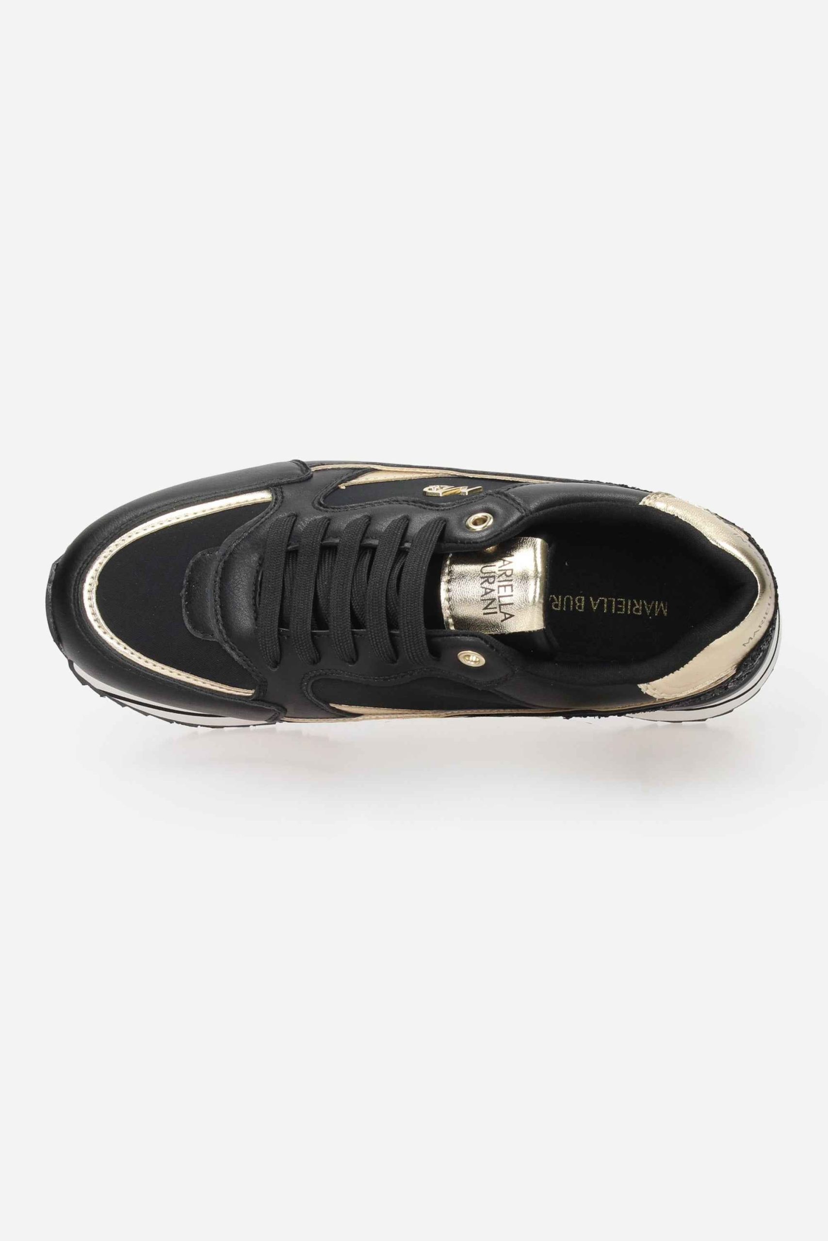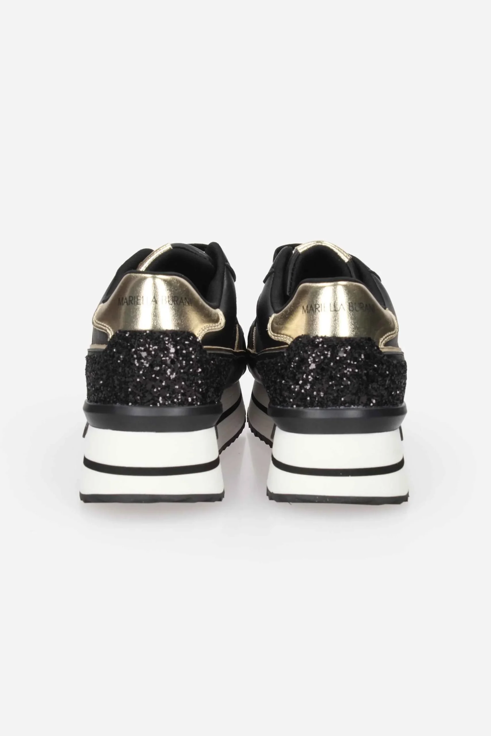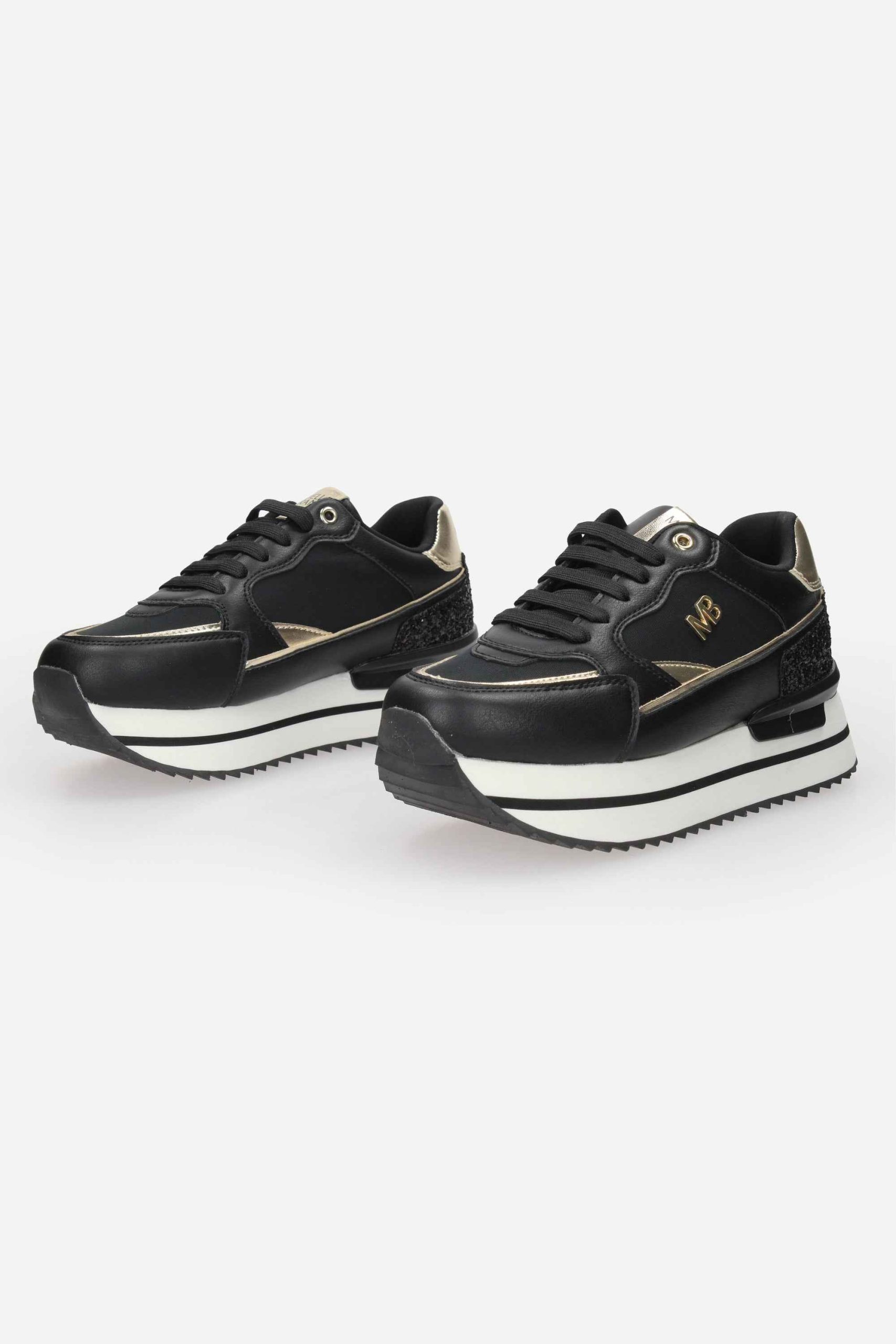 La sneakers è realizzata in ecopelle e nylon con dettagli glitter sul retro.