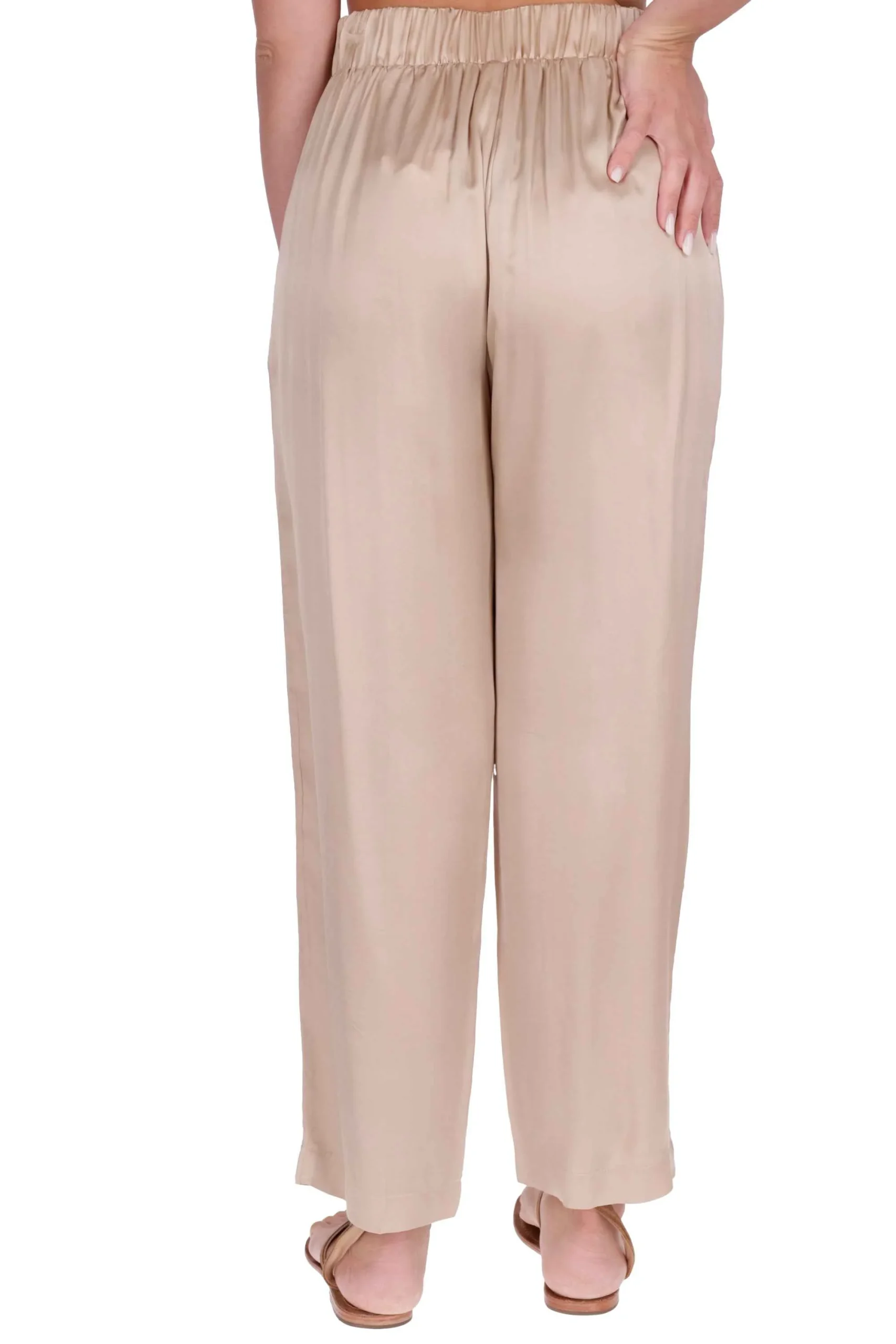 Il pantalone è realizzato in viscosa, dalla linea dritta.