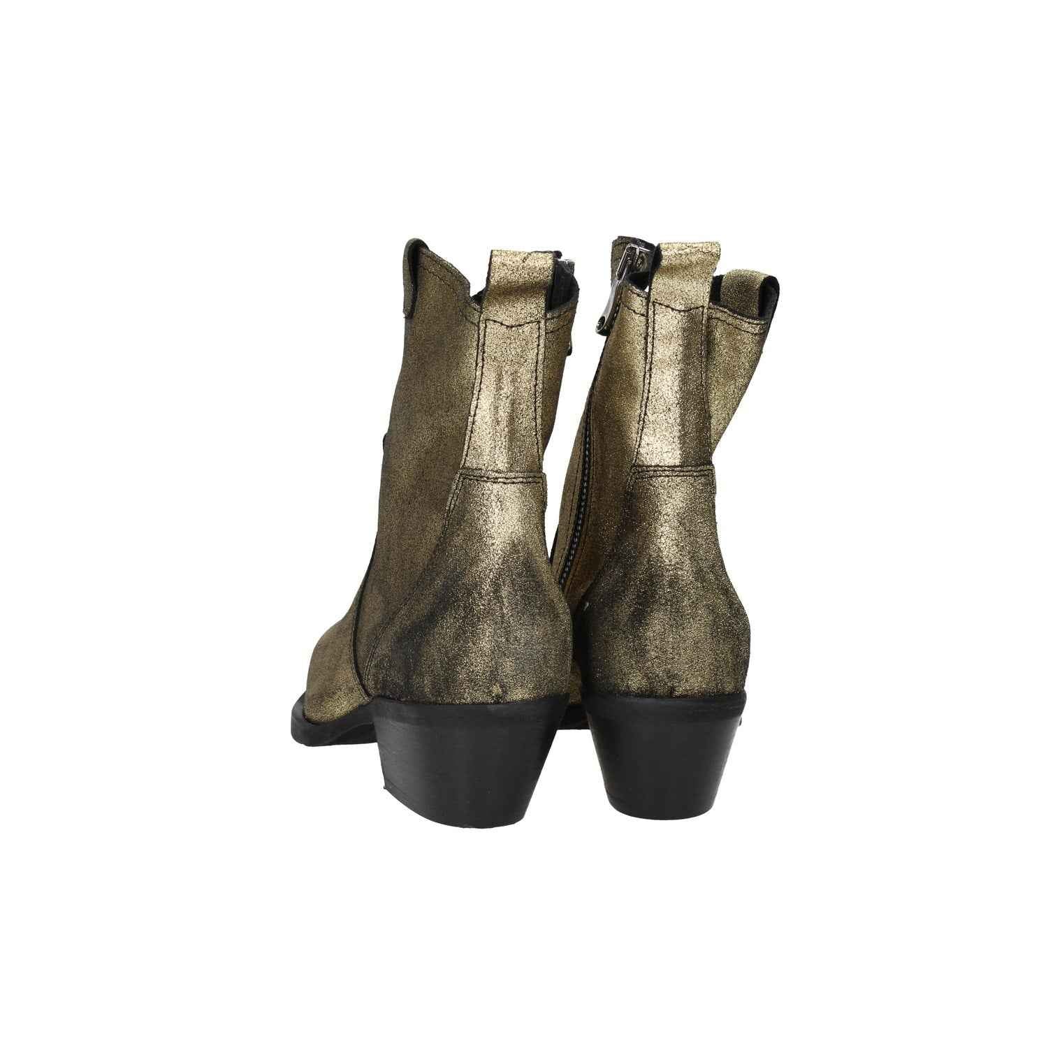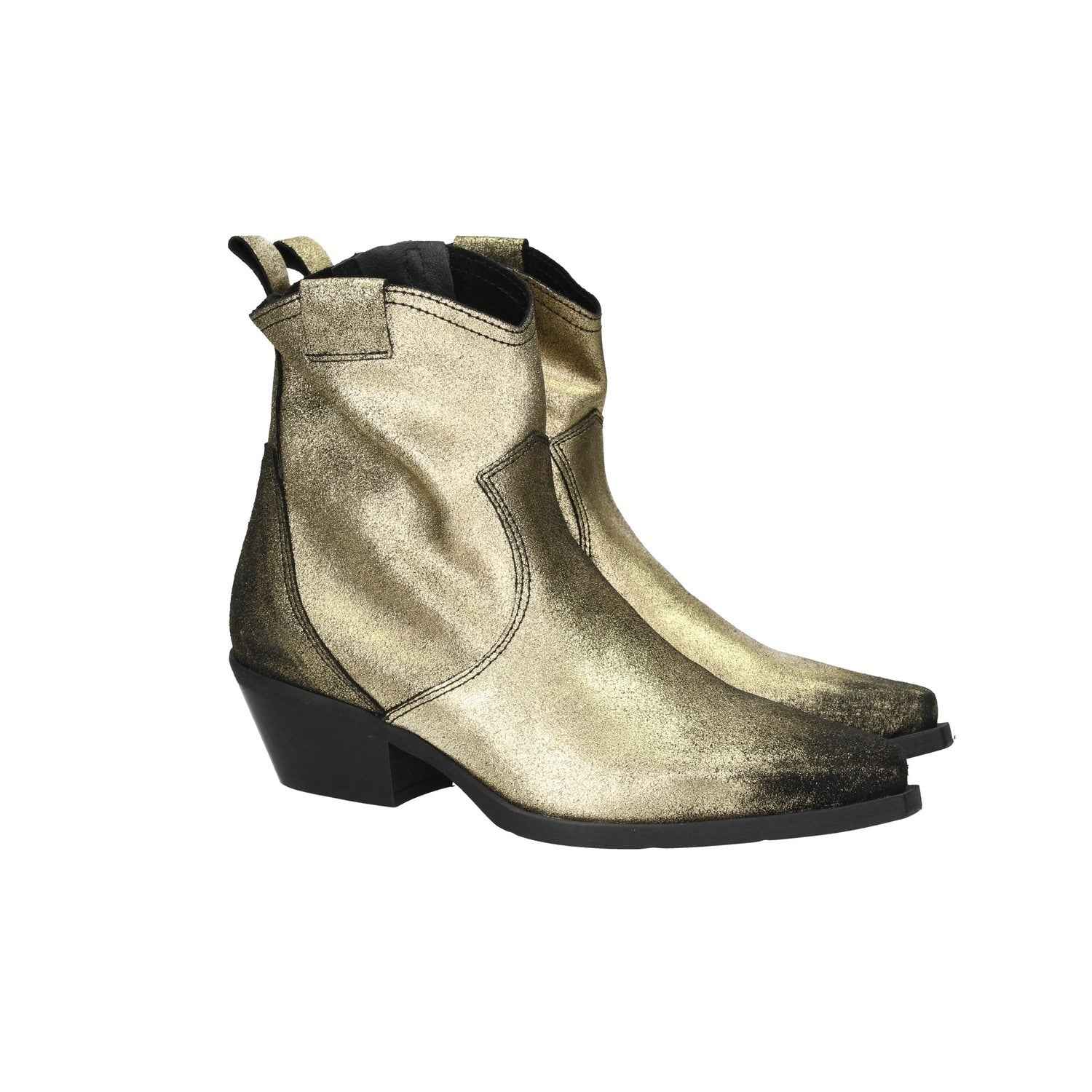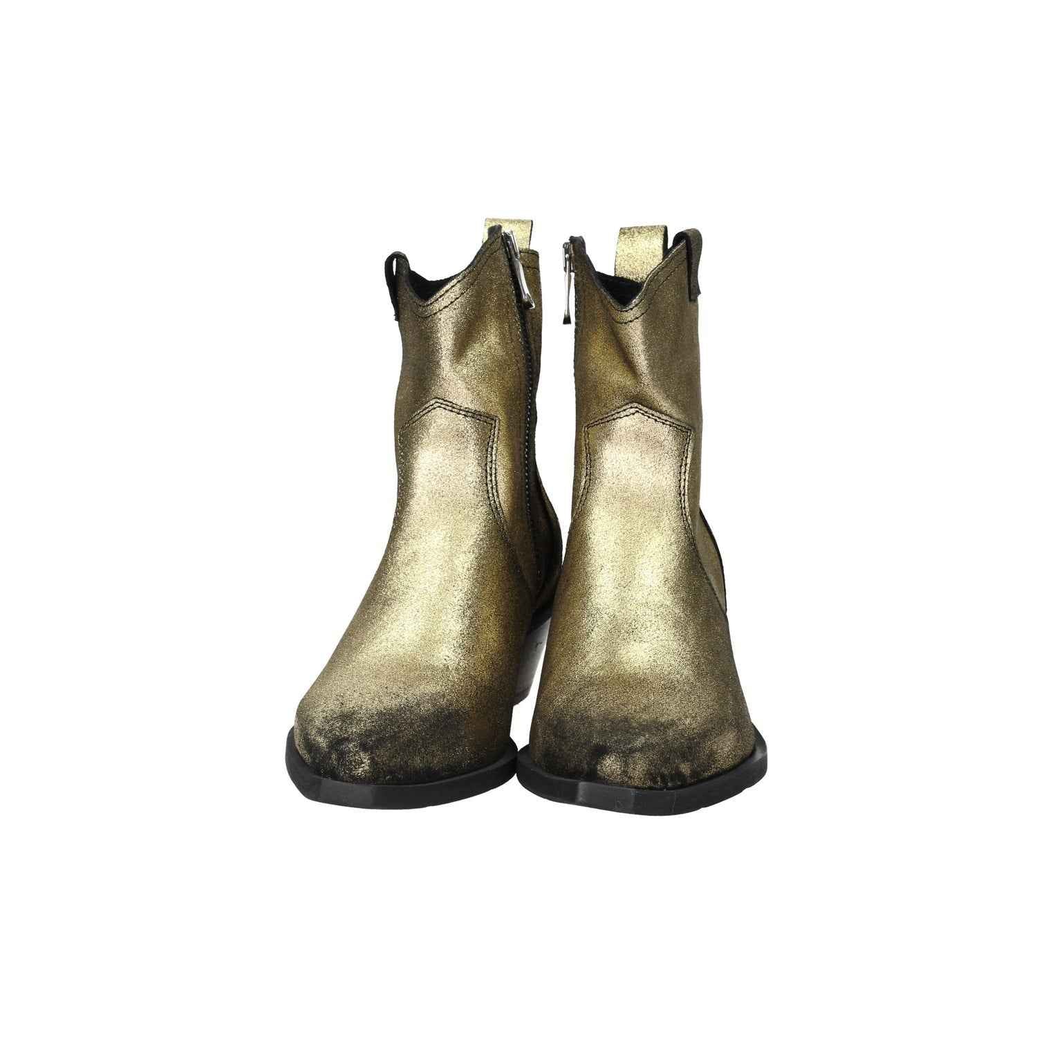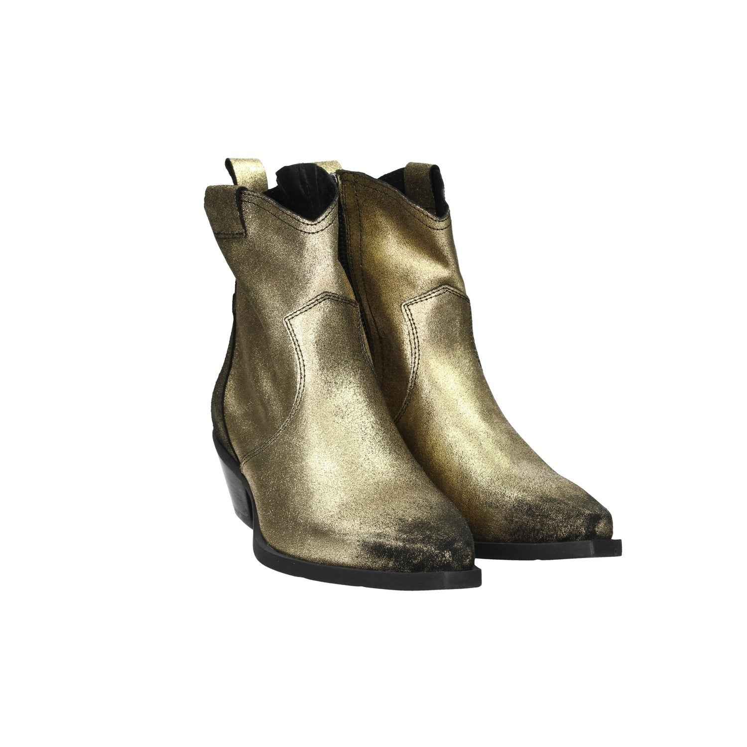 Texano in pelle e laminato, tacco alto 5cm, suola in gomma, fondo antiscivolo, con zip laterale, interno foderato.