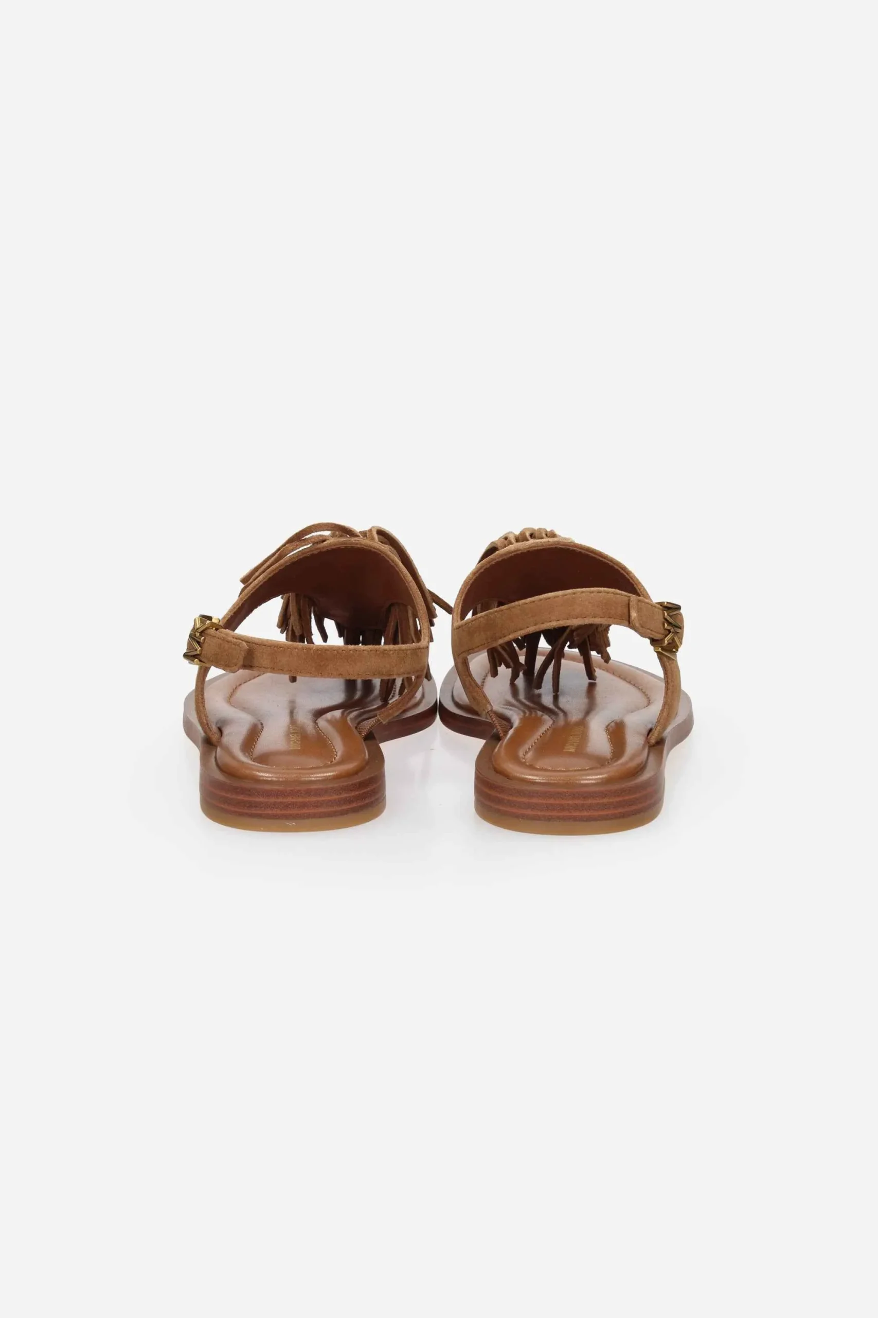 Presenta frange sul davanti e fascia al tallone con fibbia regolabile con logo.