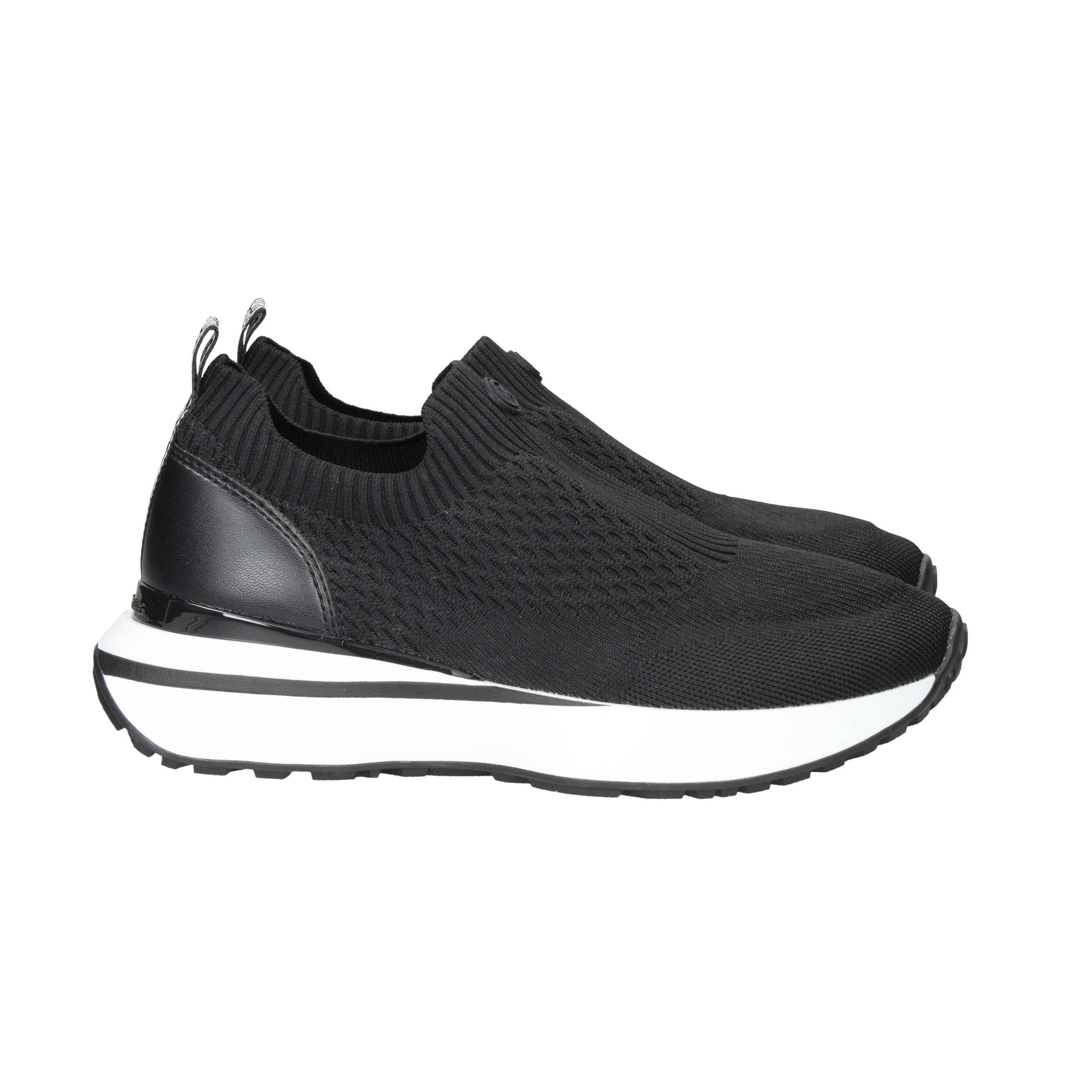 Sneakers in polestere e nylon, para alta 5cm, suola in gomma, fondo antiscivolo, modello slip-on, interno in tessuto.