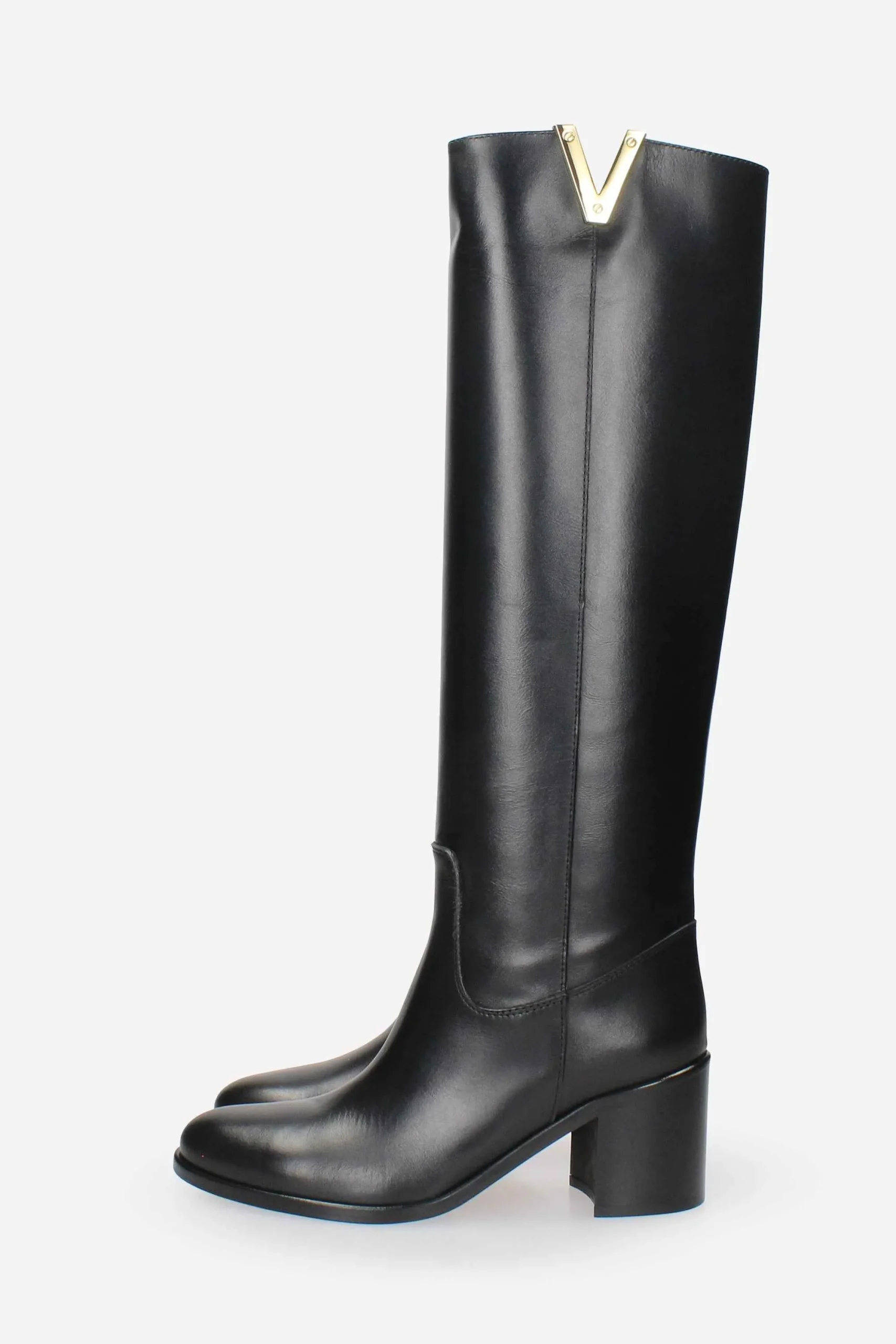Fondo gomma con tacco di cm 7 e plateaux di cm 1 nel numero 37, gambale alto 30 cm .