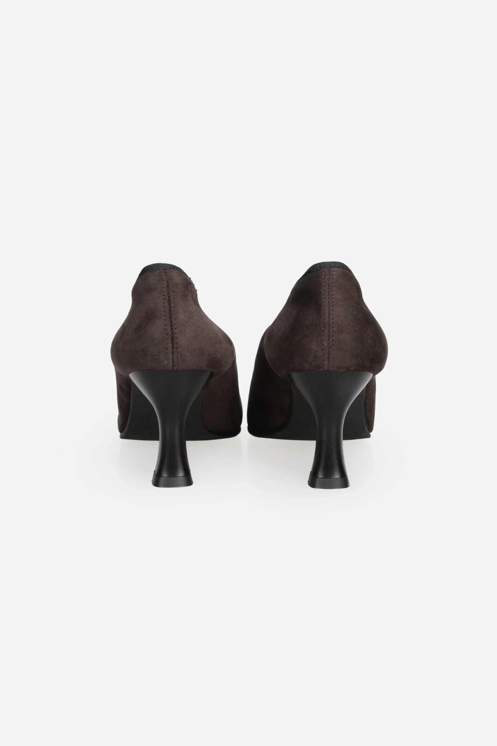 La decollete è realizzata in camoscio vegano idrorepellente..