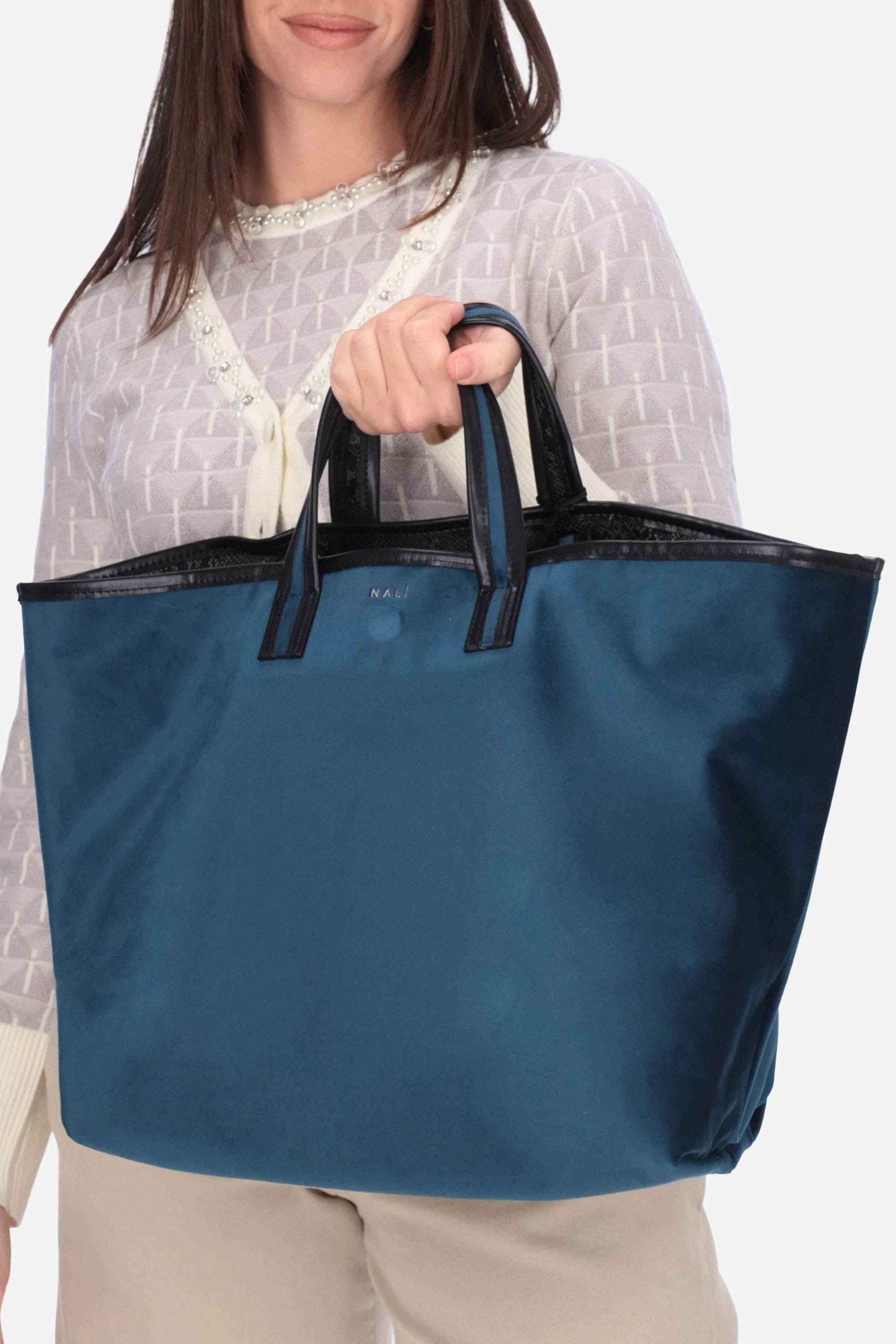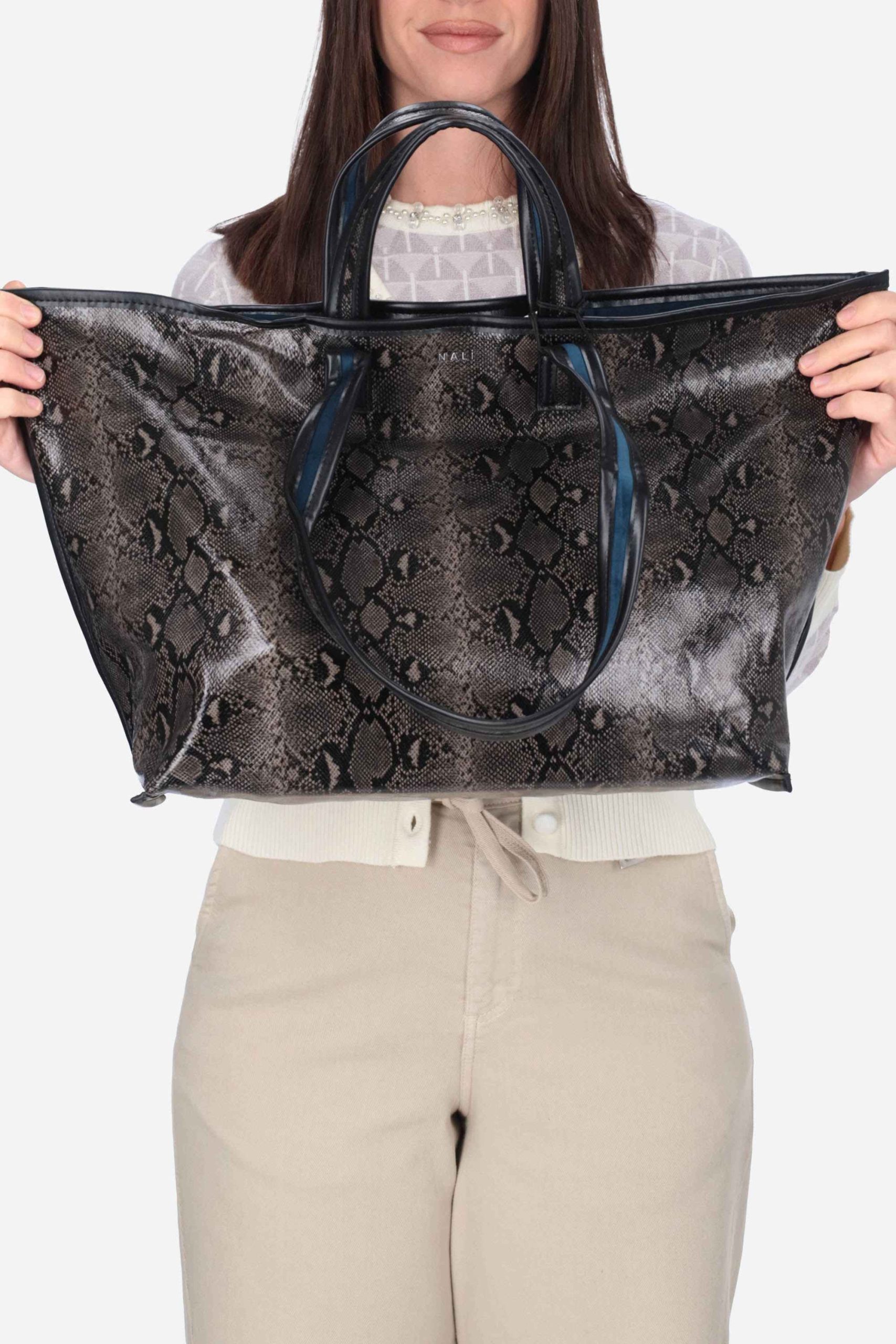 È un modello double oversize, con doppio manico superiore e chiusura bottone magnetico.