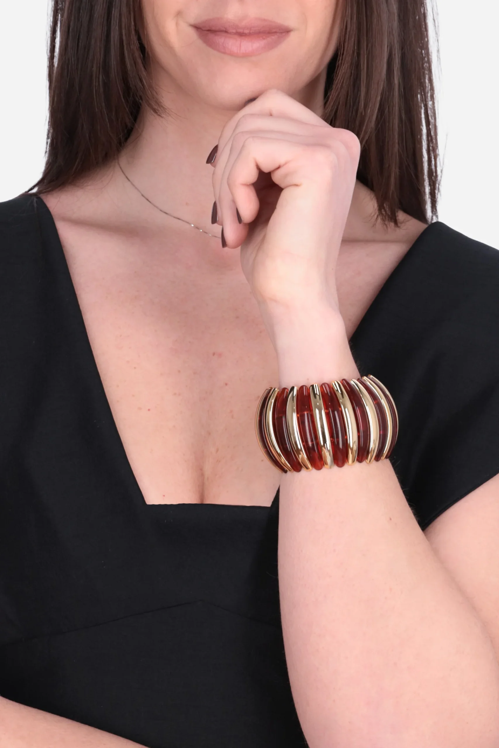 Il bracciale è realizzato in resina con elastico.
