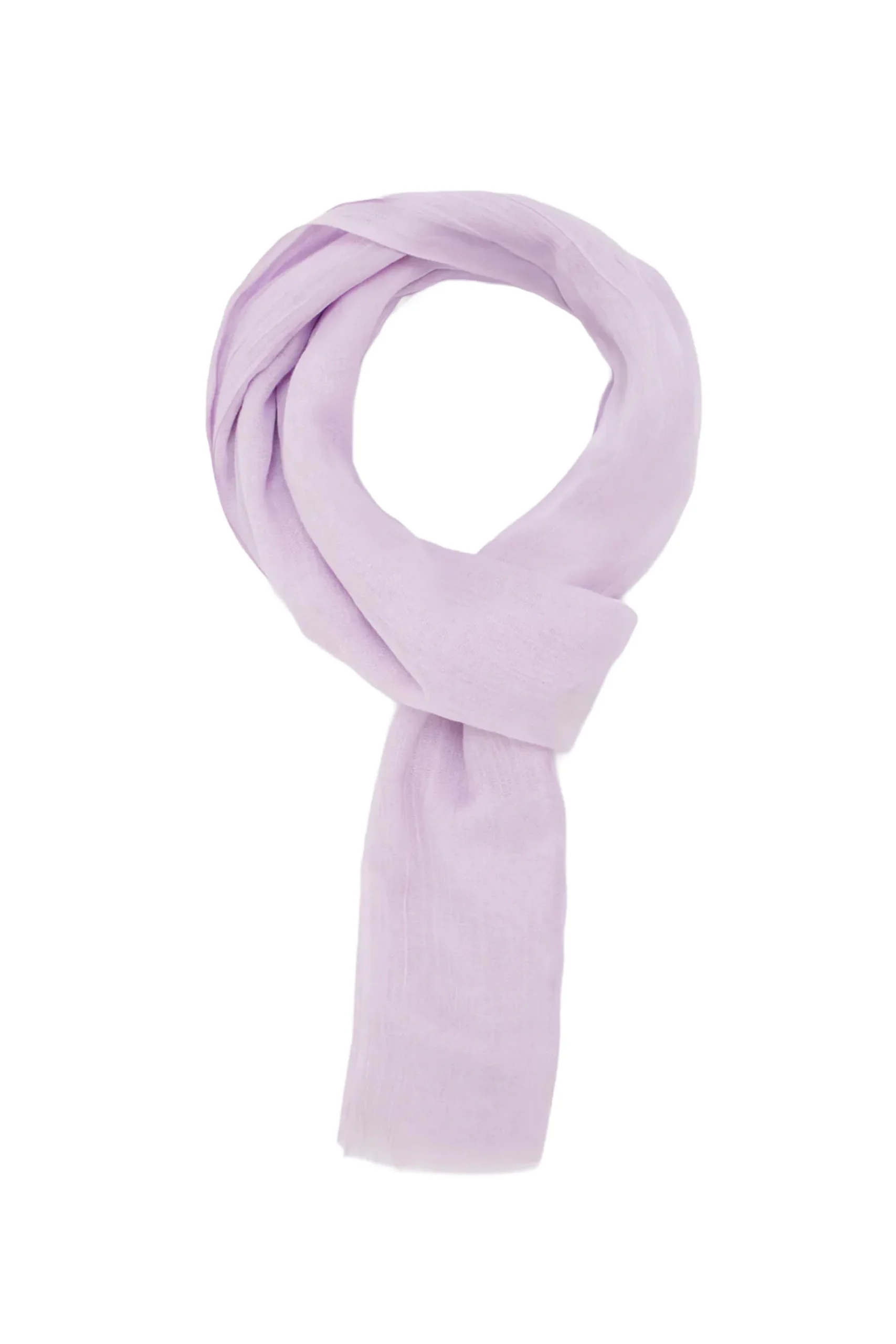 La sciarpa è realizzata in tessuto leggero e traspirante, con bordo sfrangiato.