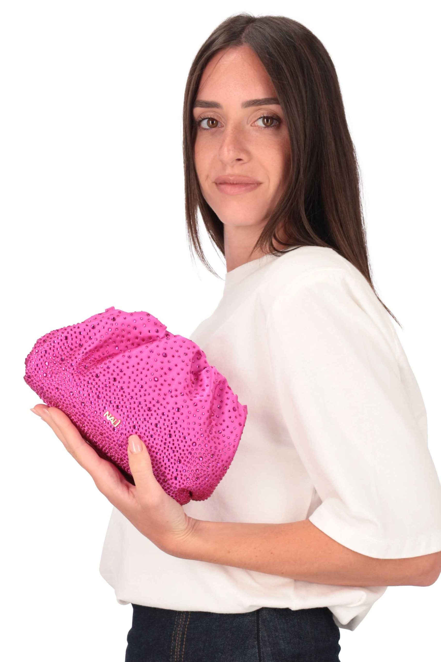 La borsa è realizzata in poliestere con applicazione di strass all over in tono colore.