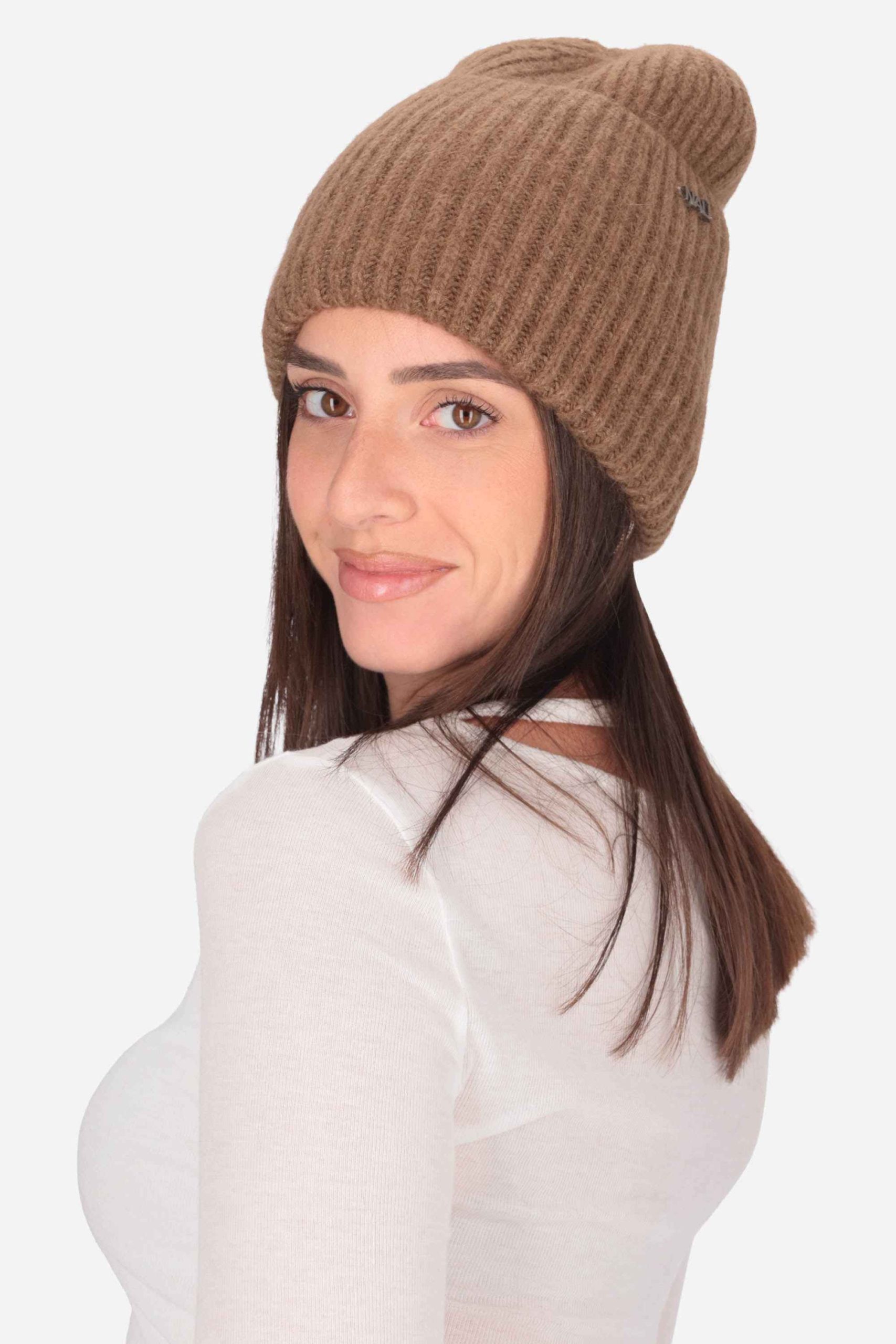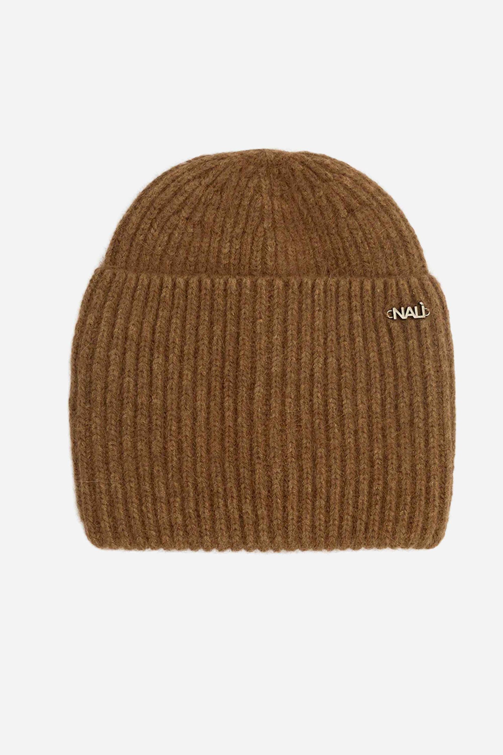 Il cappello è realizzato in rabbit fur e acrilico con lavorazione a coste, con logo metallico.