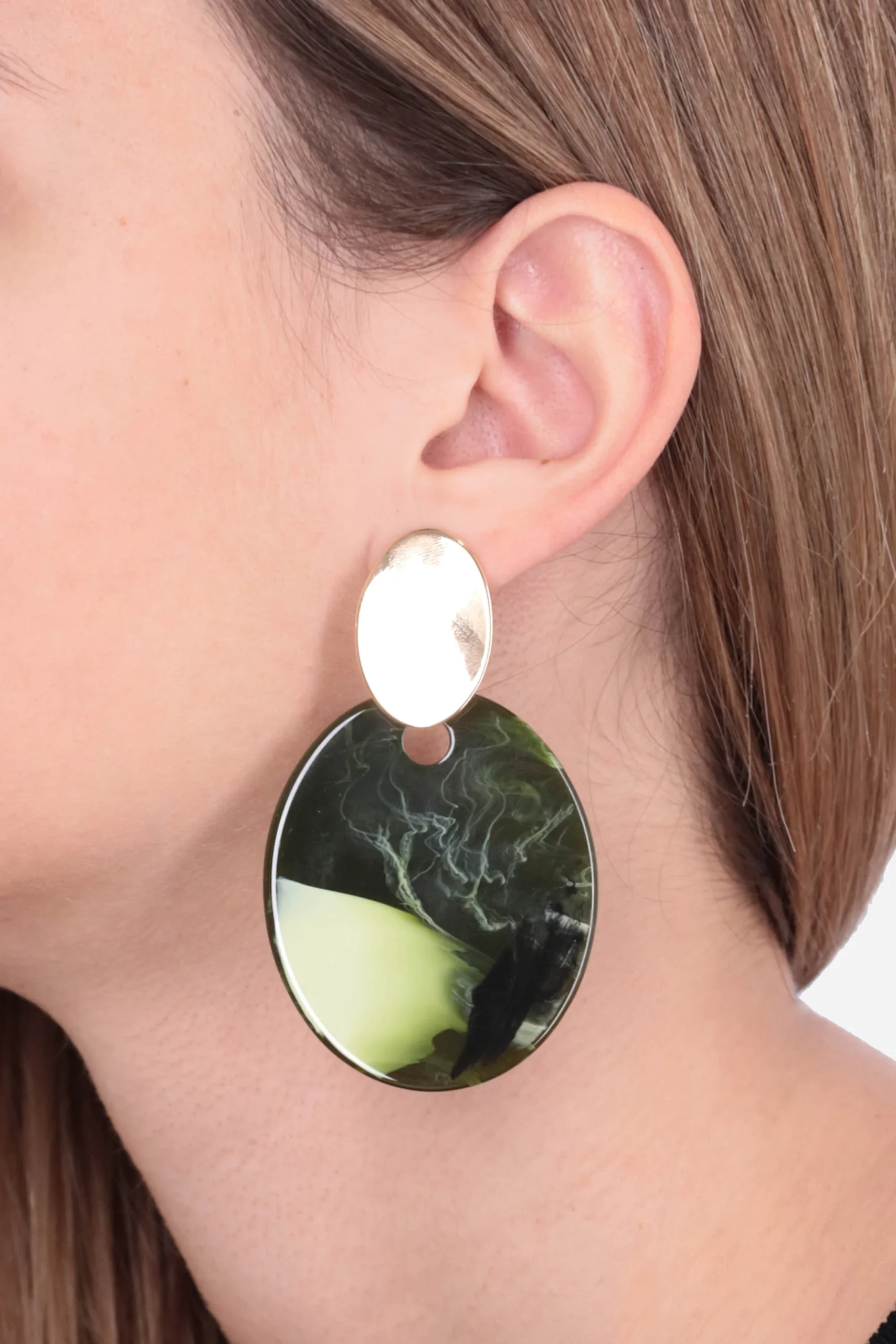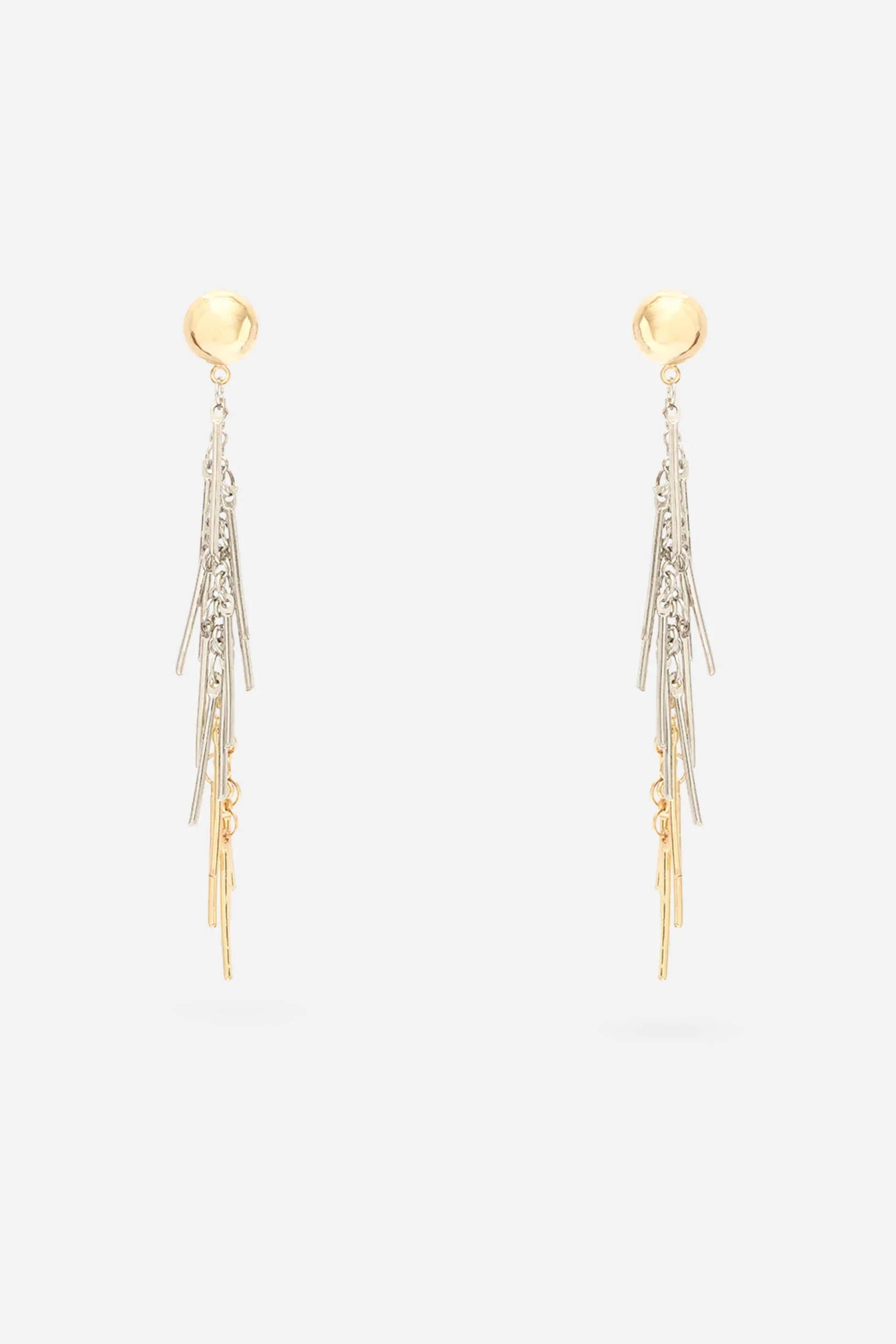 Gli orecchini pendenti bicolore sono composti da base tonda dorata e fili sottili argentati e dorati.