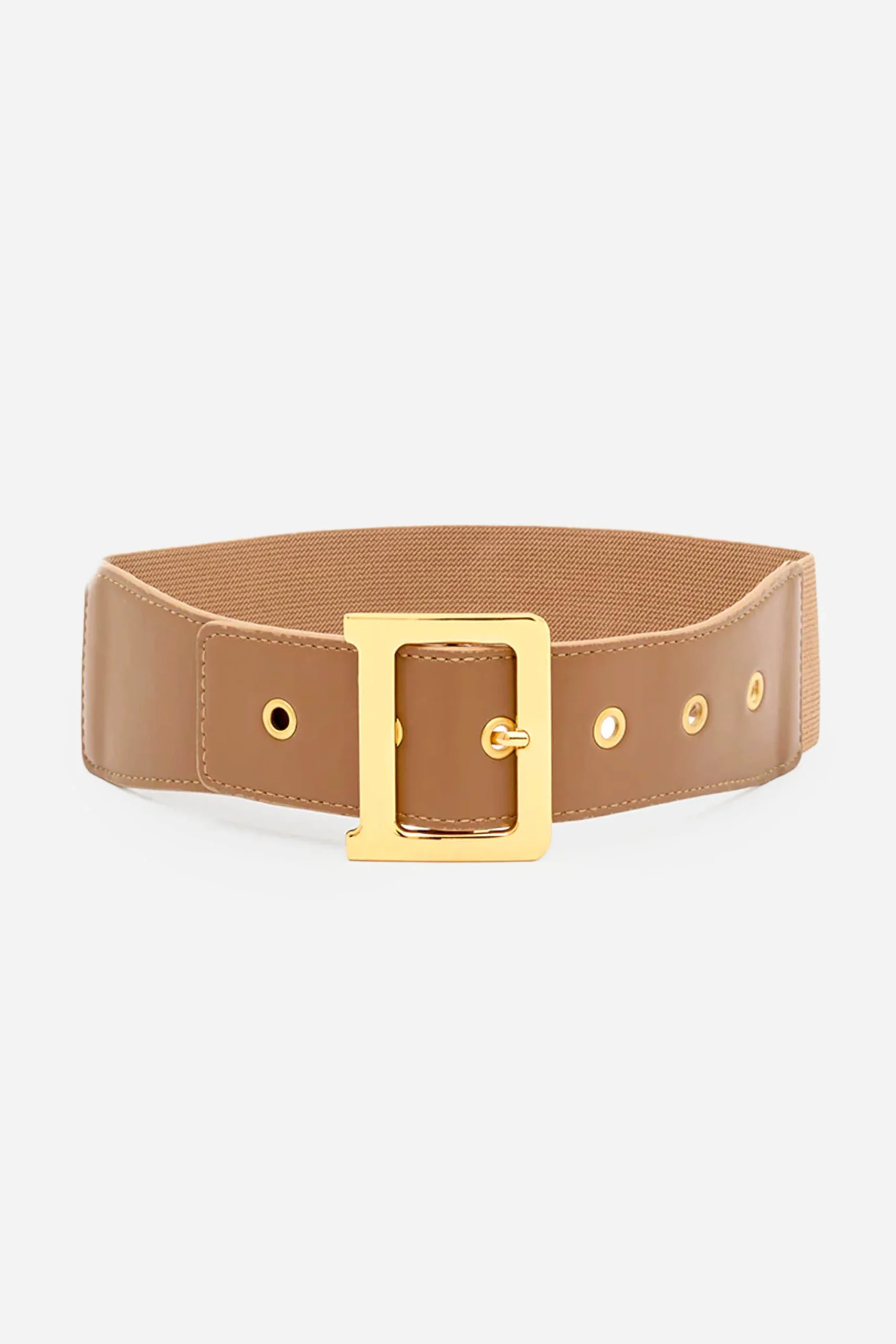 La cintura a fascia larga presenta fibbia quadrata regolabile.