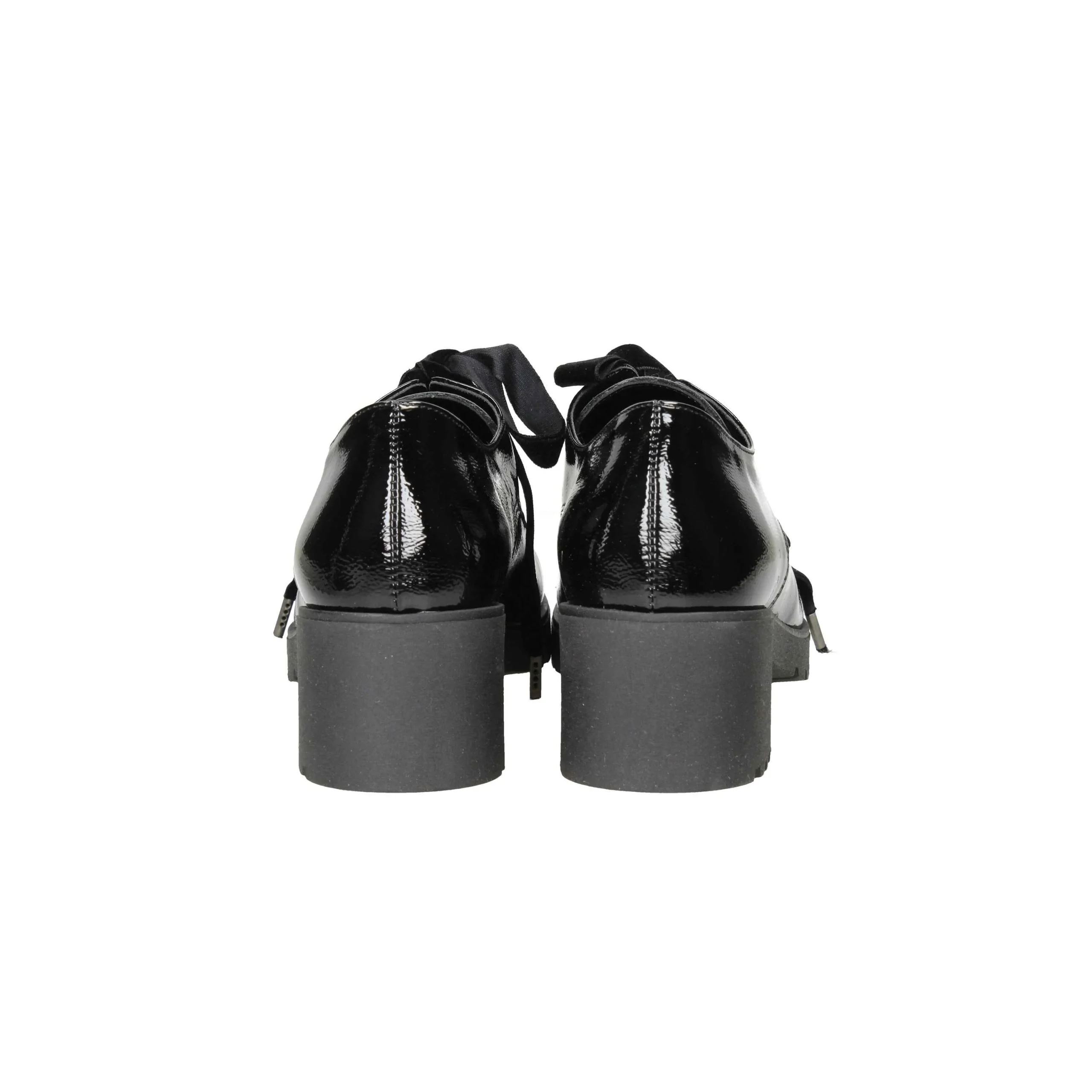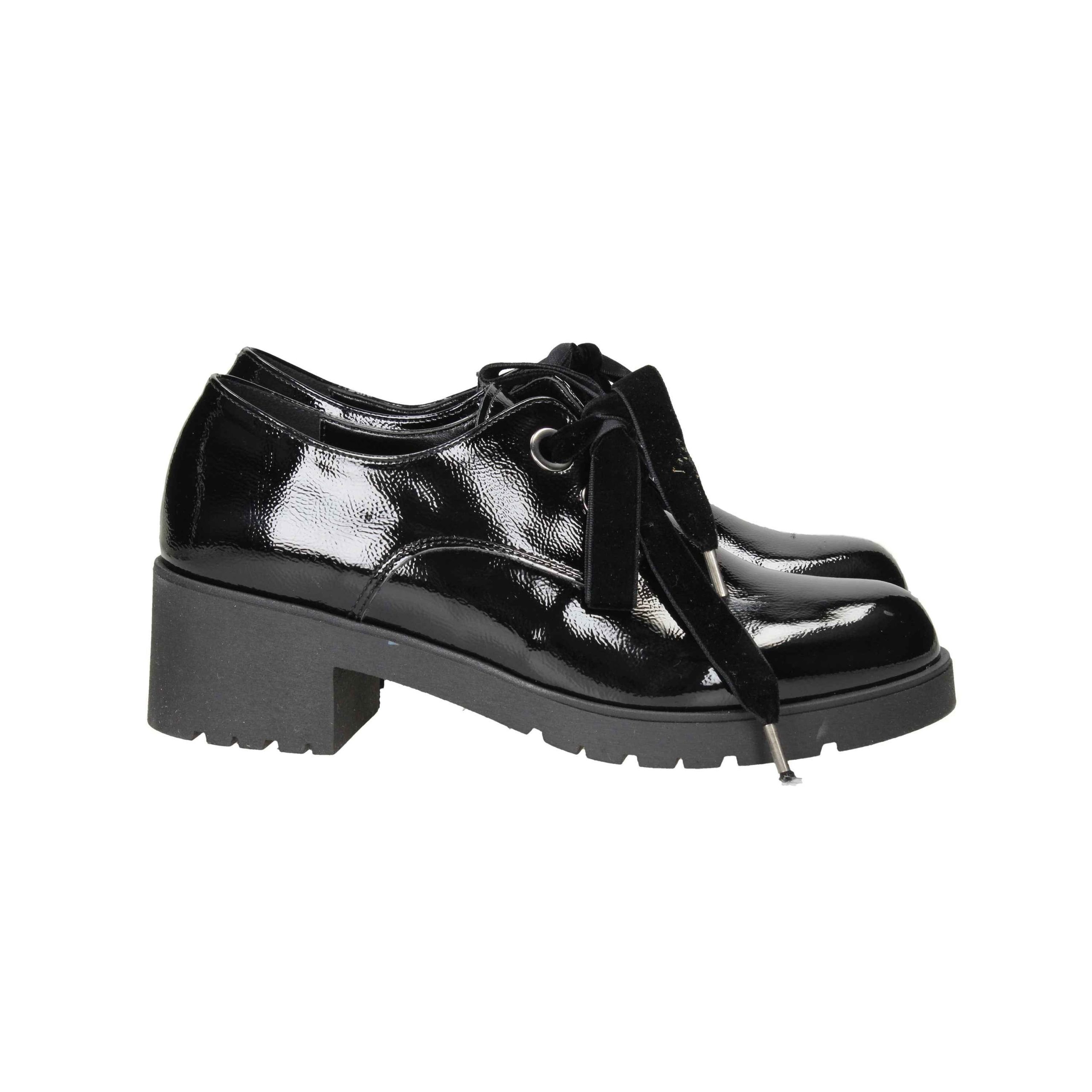 Scarpa in naplak con lacci in nylon, tacco alto 5cm, suola in gomma, interno in pelle.
