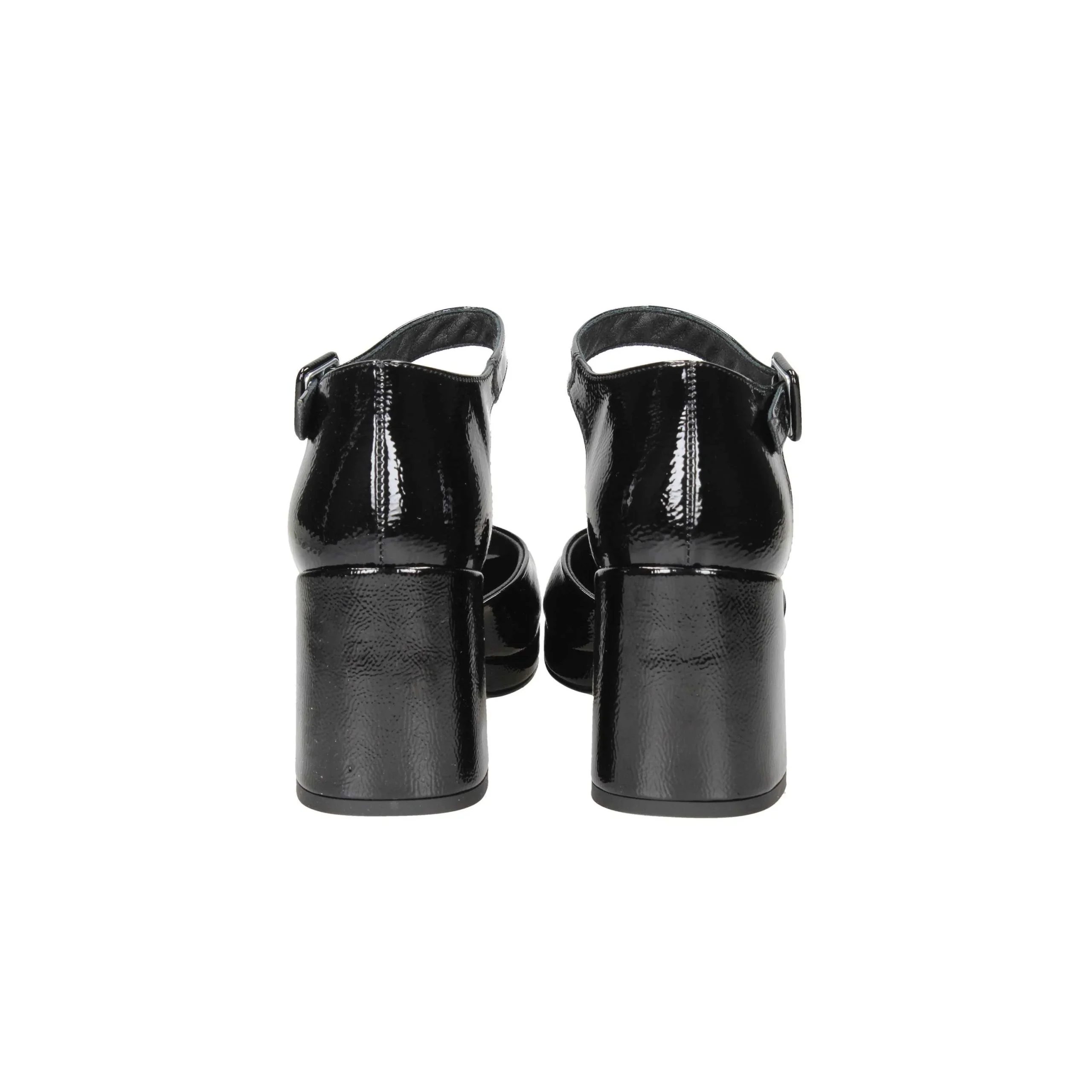 Decollete in naplak, tacco alto 7cm, suola in gomma, con cinturino regolabile, soletta in pelle.