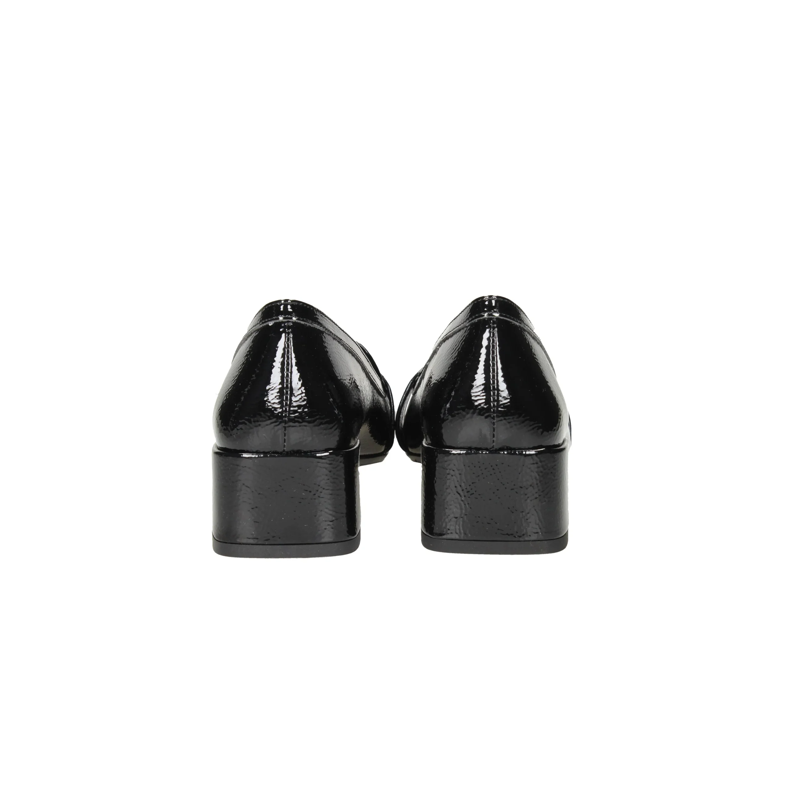 Decollete in naplak, tacco alto 4cm, suola in gomma, dettaglio sul davanti, interno in pelle.