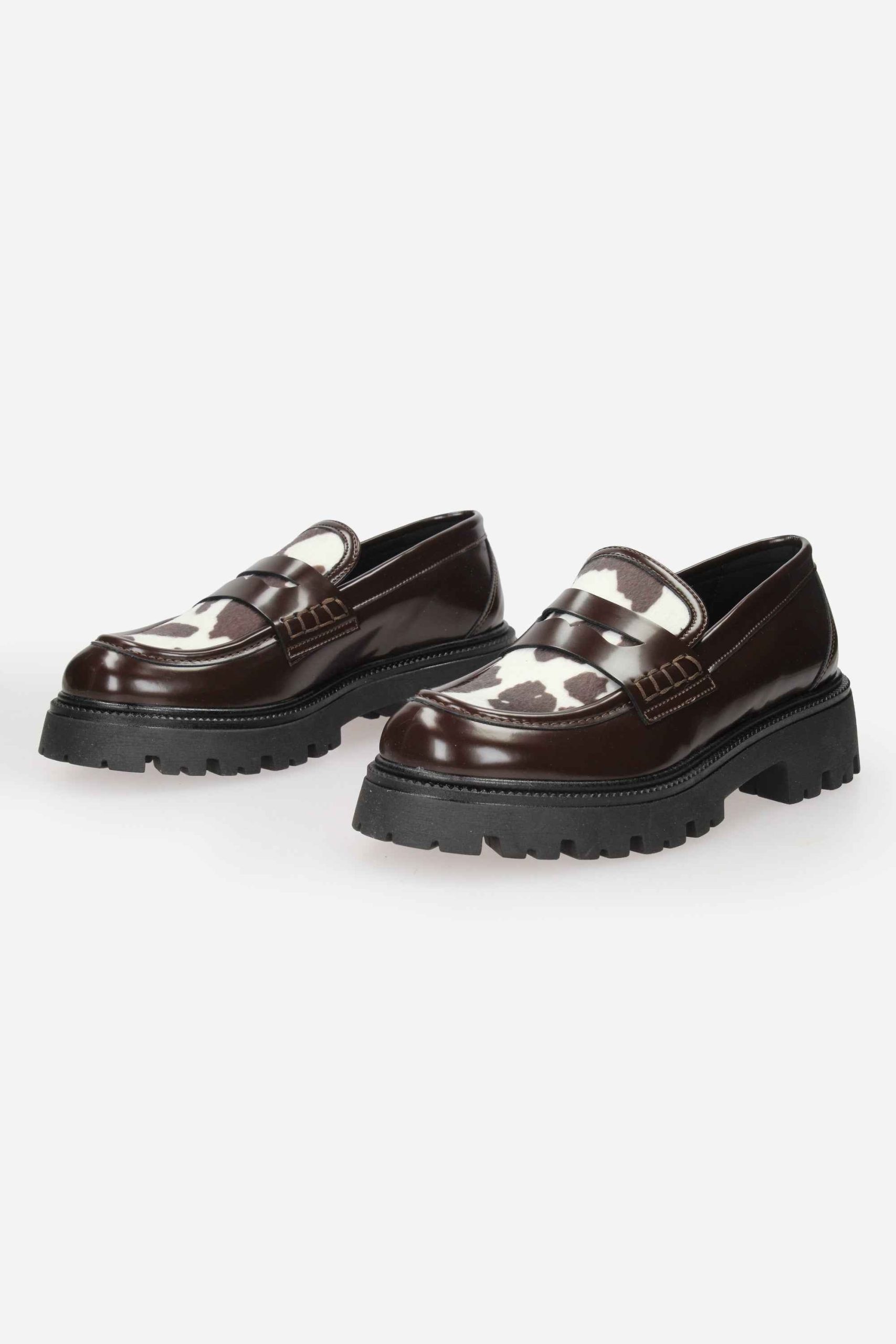 Il mocassino è realizzato in ecopelle e cavallino.