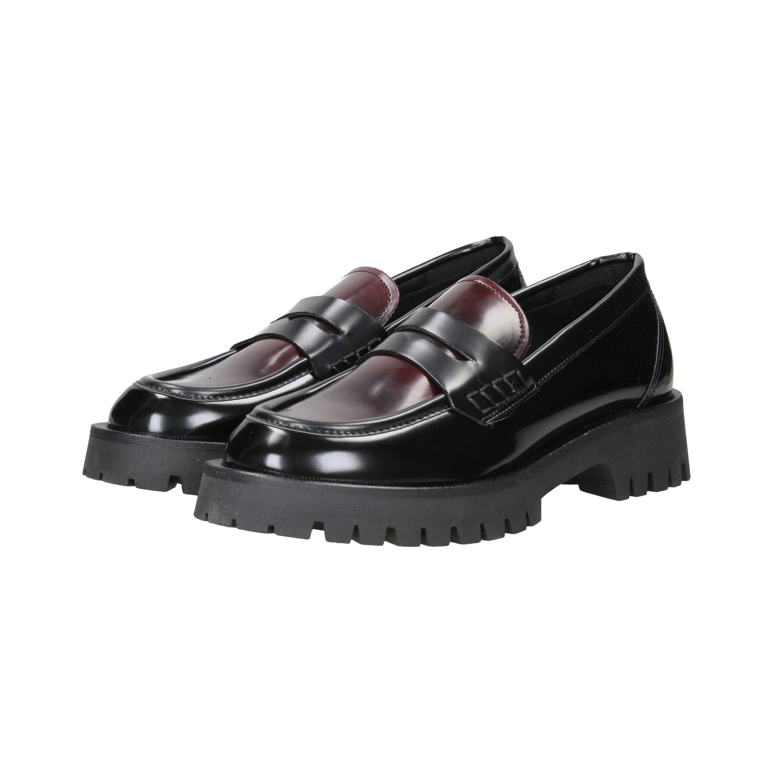 Mocassino in abrasivato, tacco alto 3cm, suola in gomma, fondo cararmato, interno in pelle.