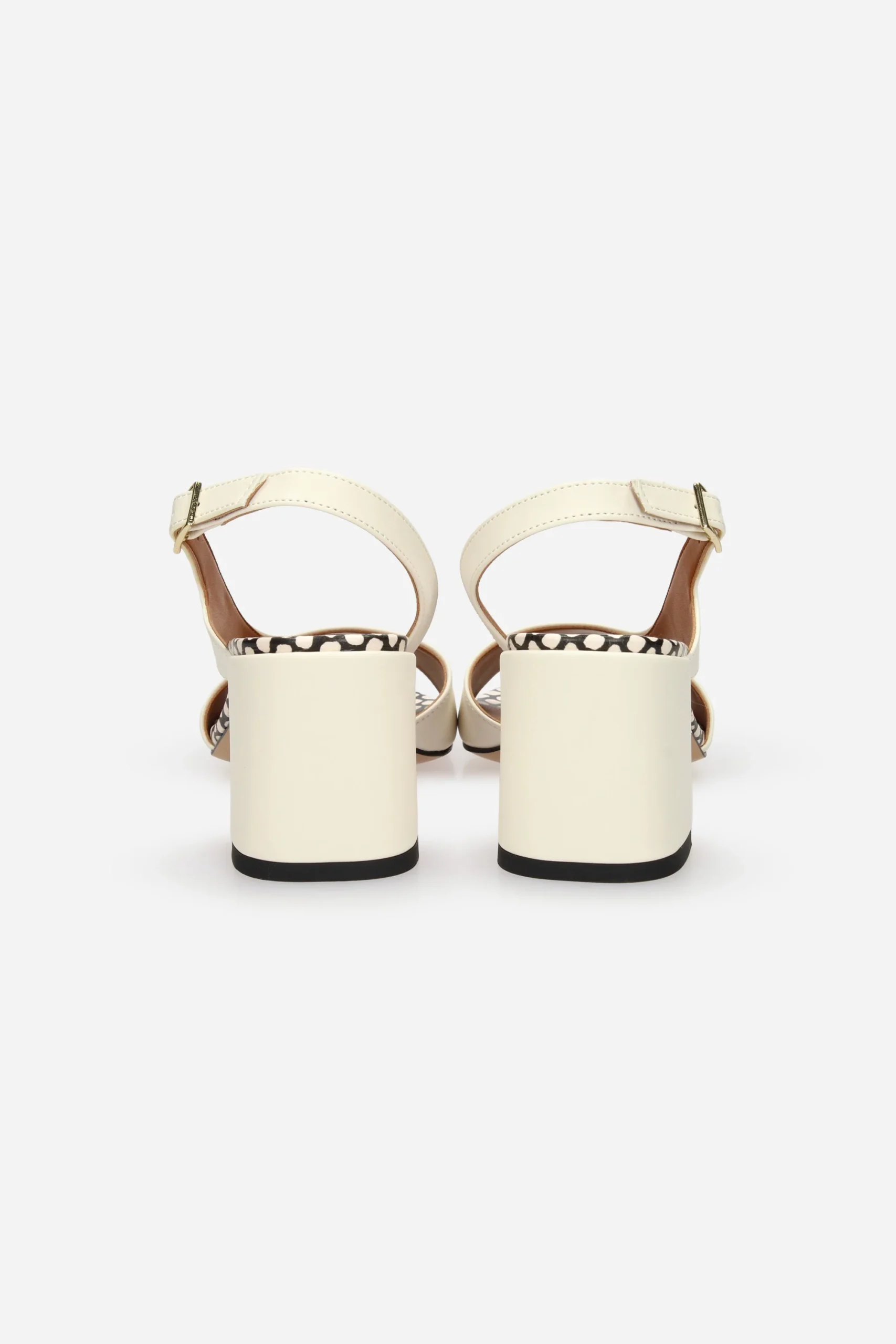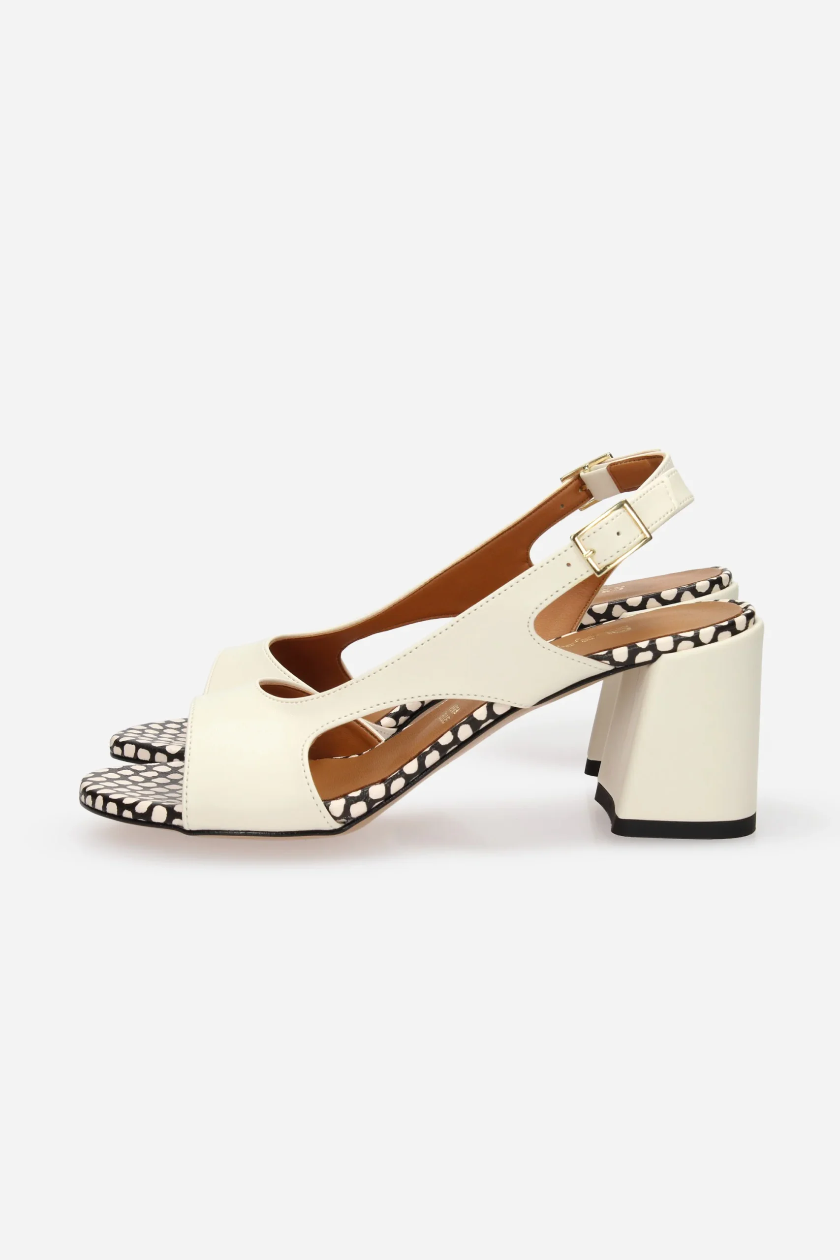 Presenta fascia sul davanti e cinturino al tallone con fibbia regolabile, plantare in pelle.