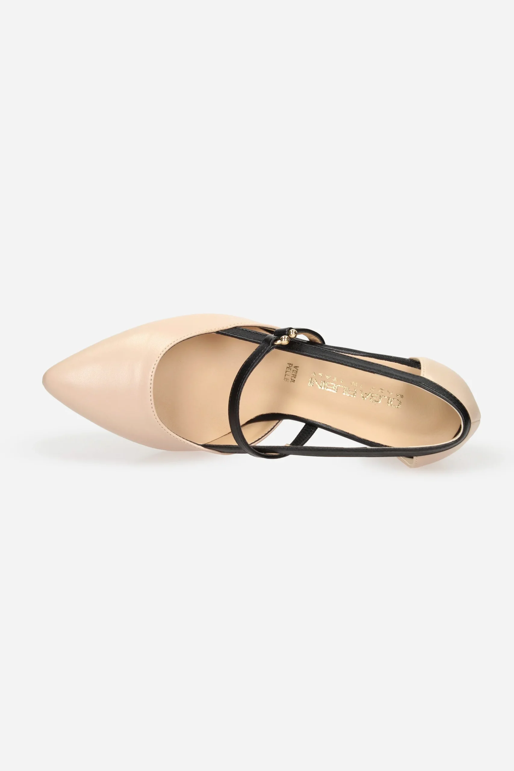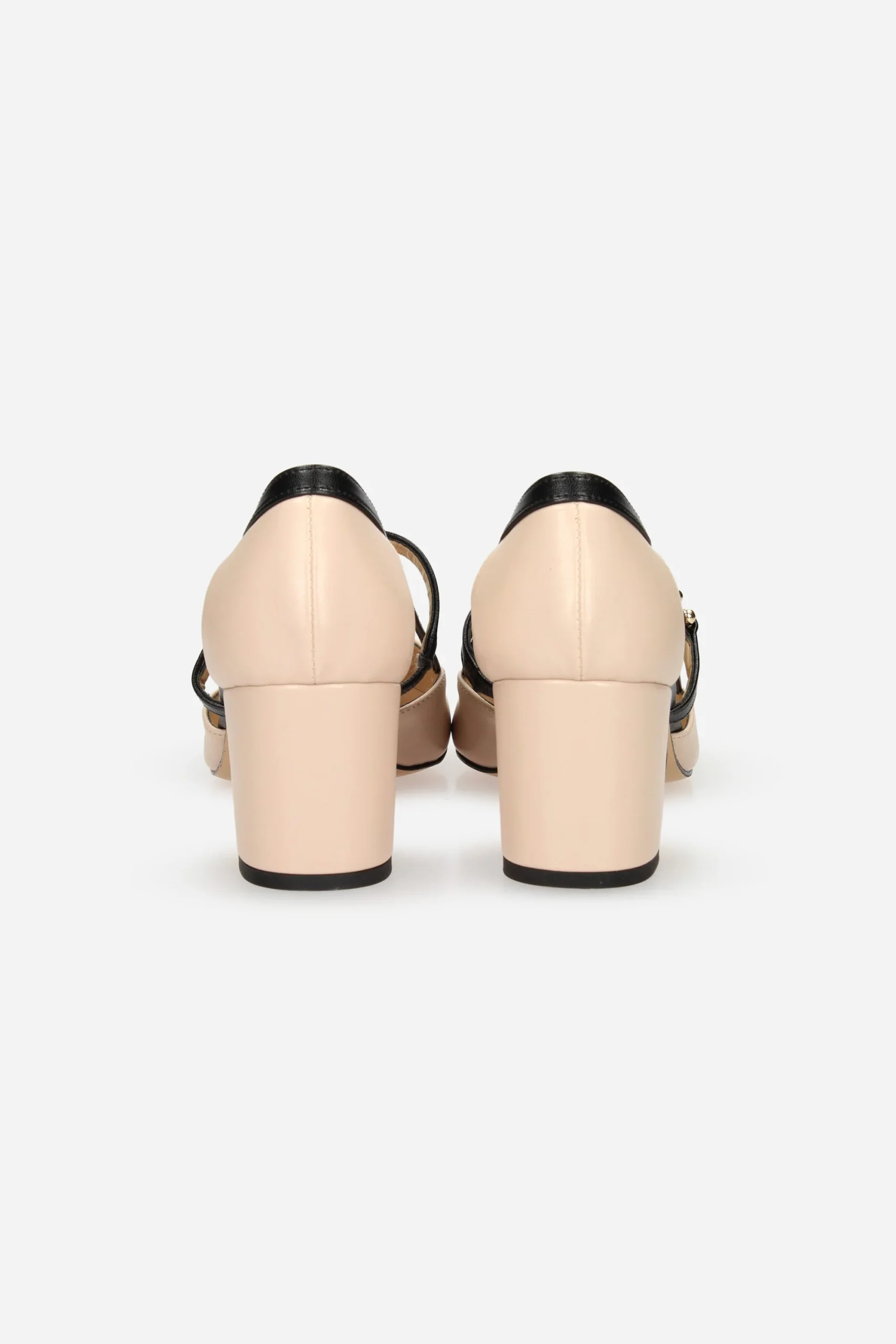 Presenta cinturino con borchia sul davanti, plantare in pelle.