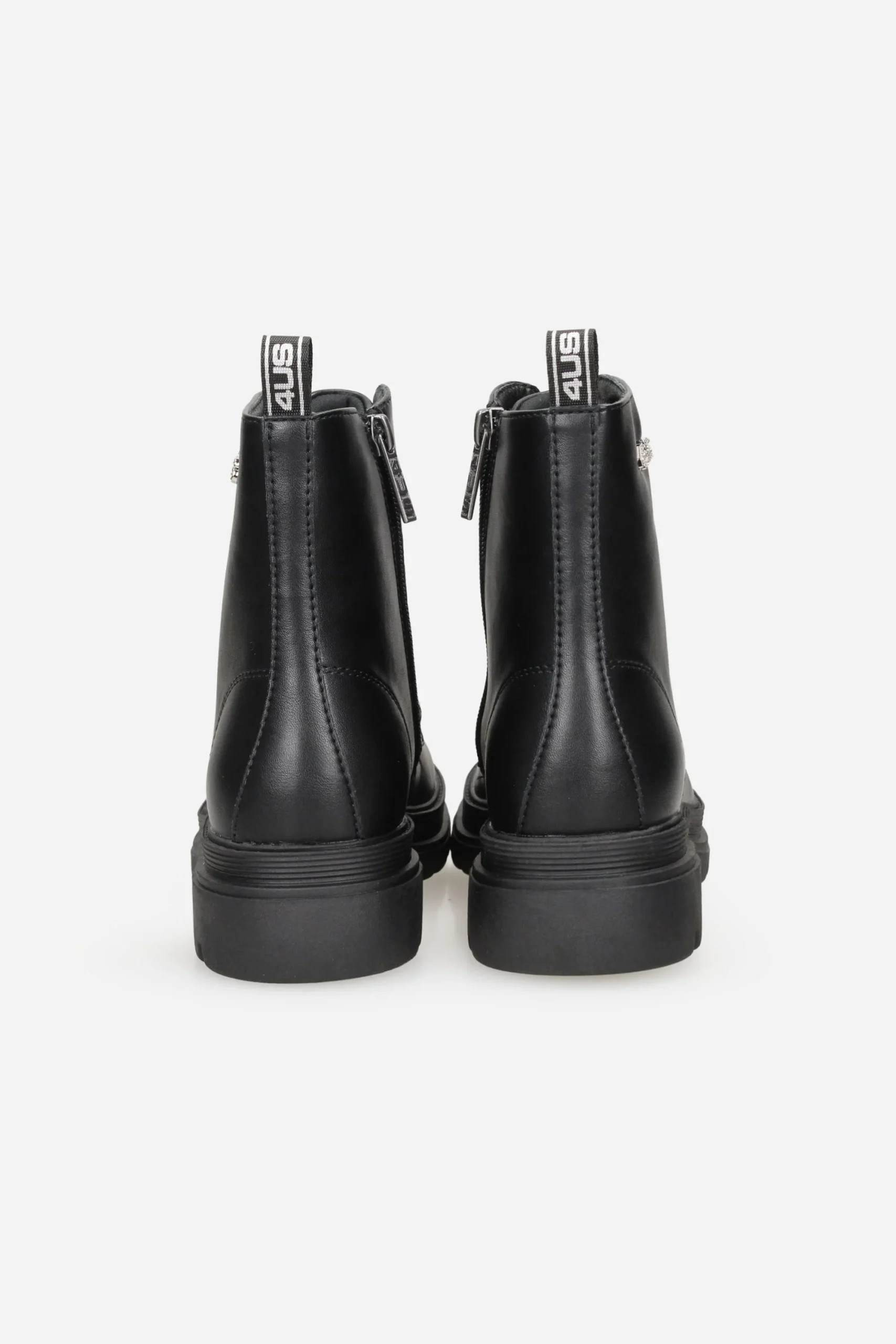 Presenta lacci in cotone, chiusura con zip laterale, plantare anatomico in pelle.