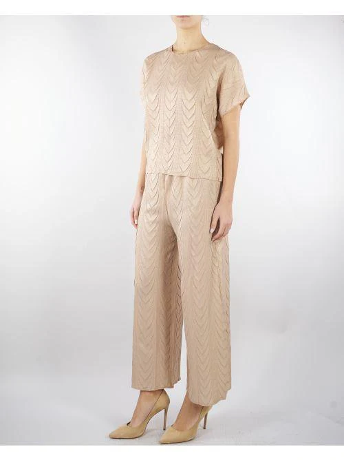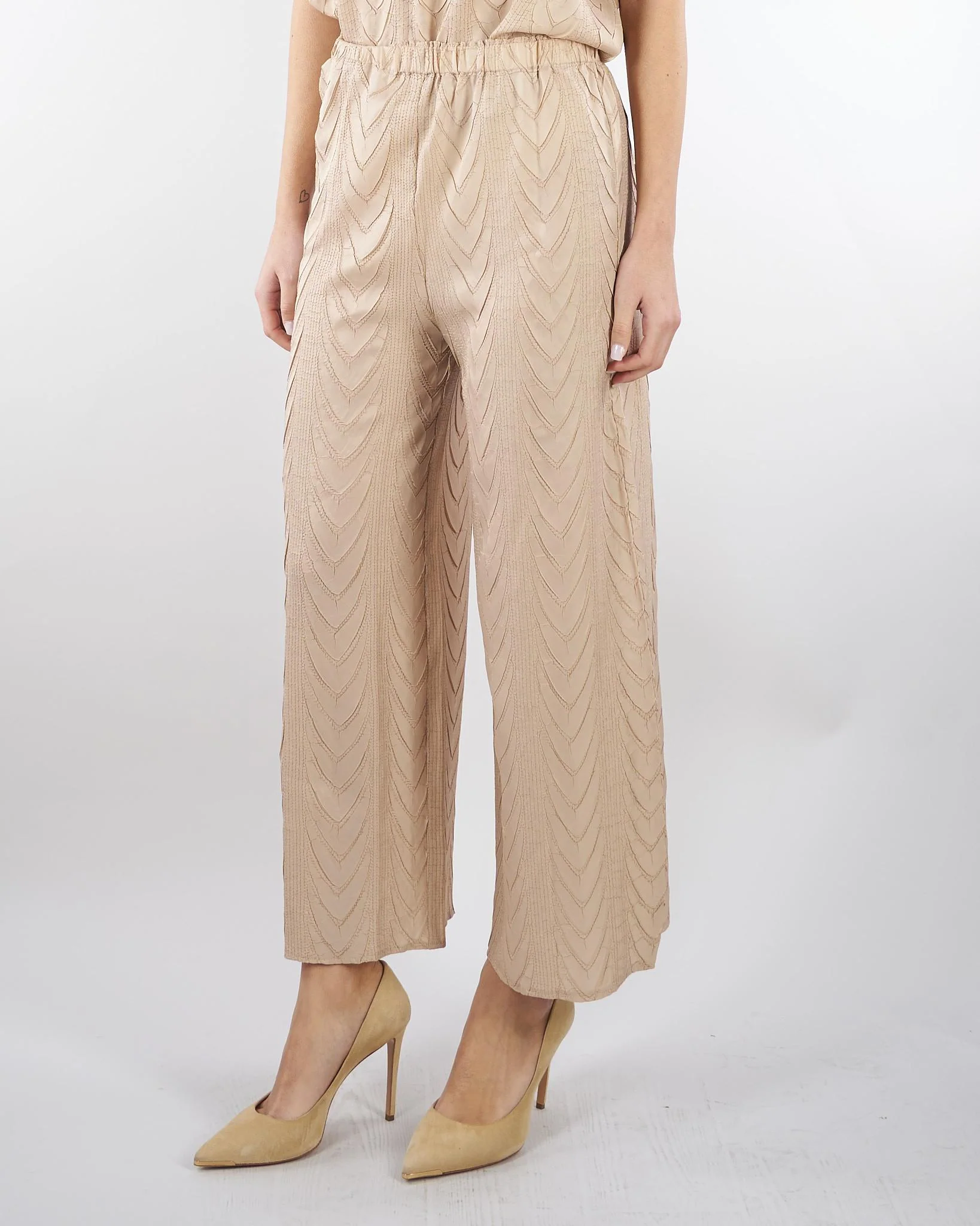 Pantalone plissettato con disegno treccia di Meimeij. Modello dritto con vita alta ed elastico. Tasche laterali.
