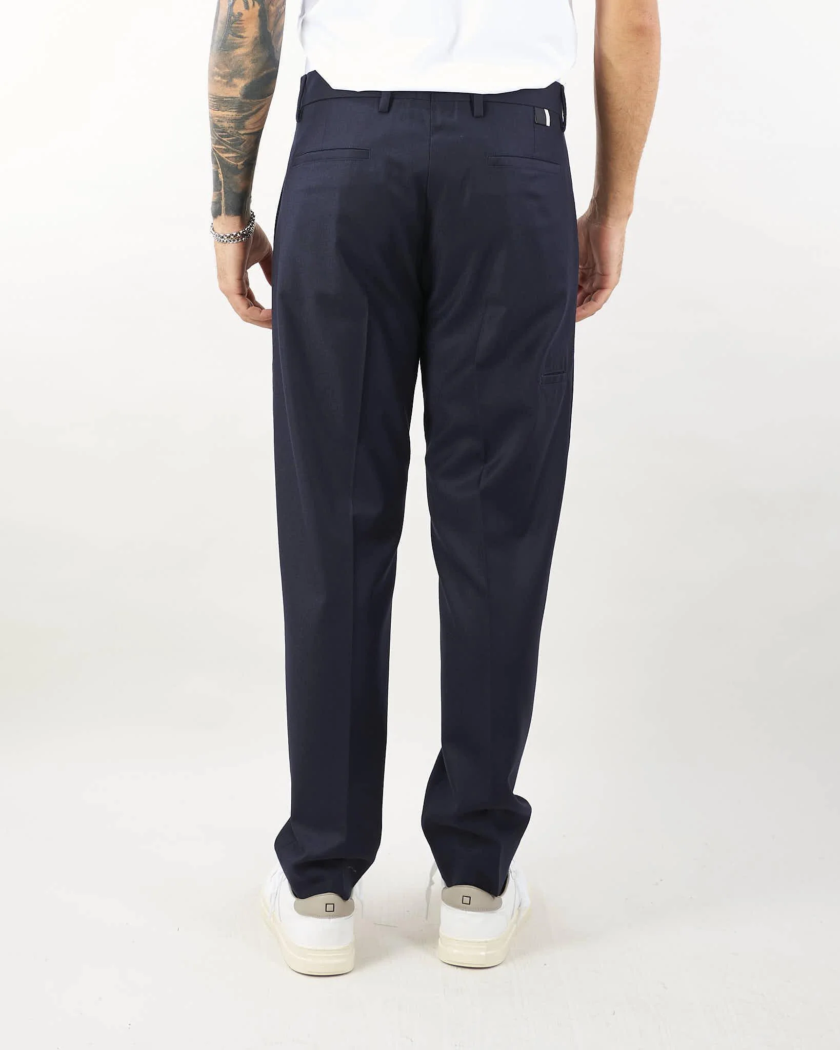 Pantalone in pura lana di Low Brand. Modello Ford con pences. Tasche america laterali e tasche a filo sul retro. Chiusura centrale con bottone e gancio. Relaxed fit.
