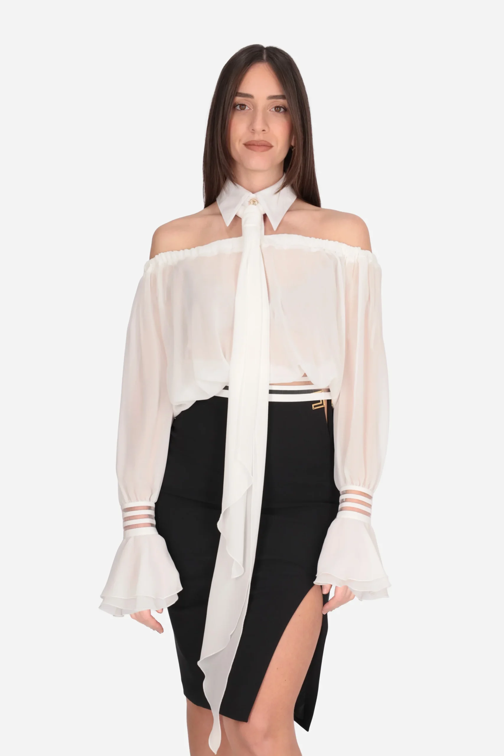 La modella in foto è alta 175 cm e indossa una taglia 42.