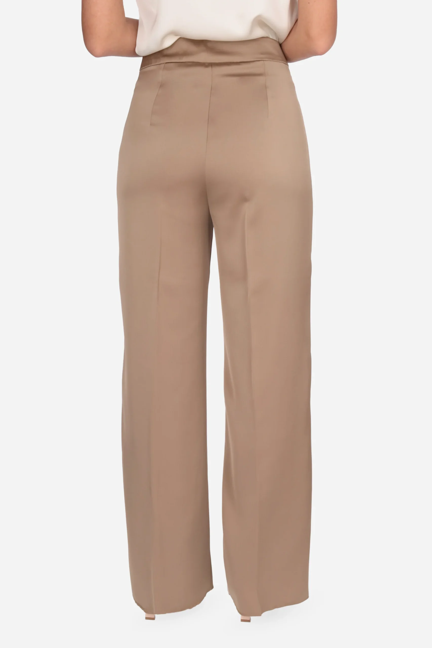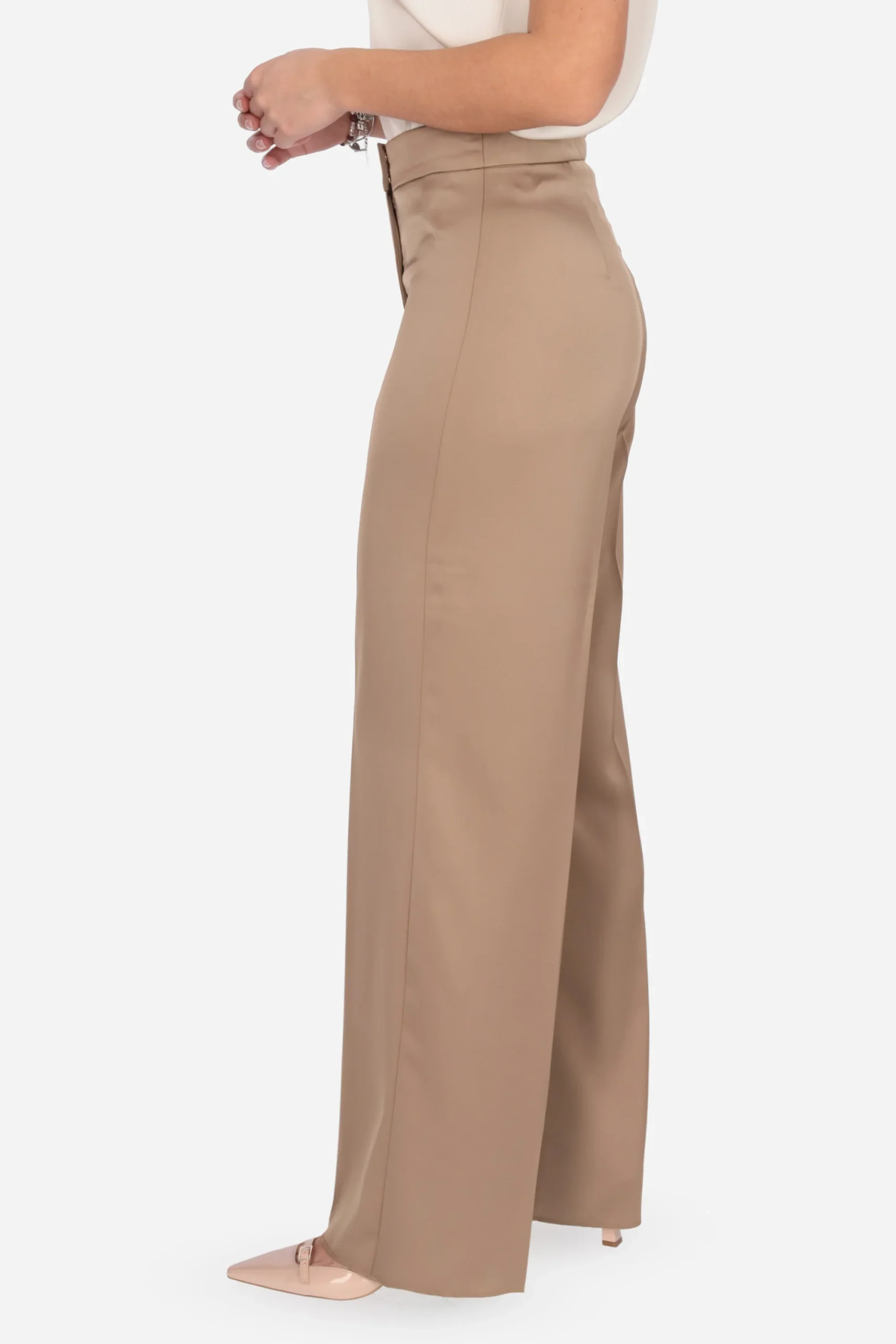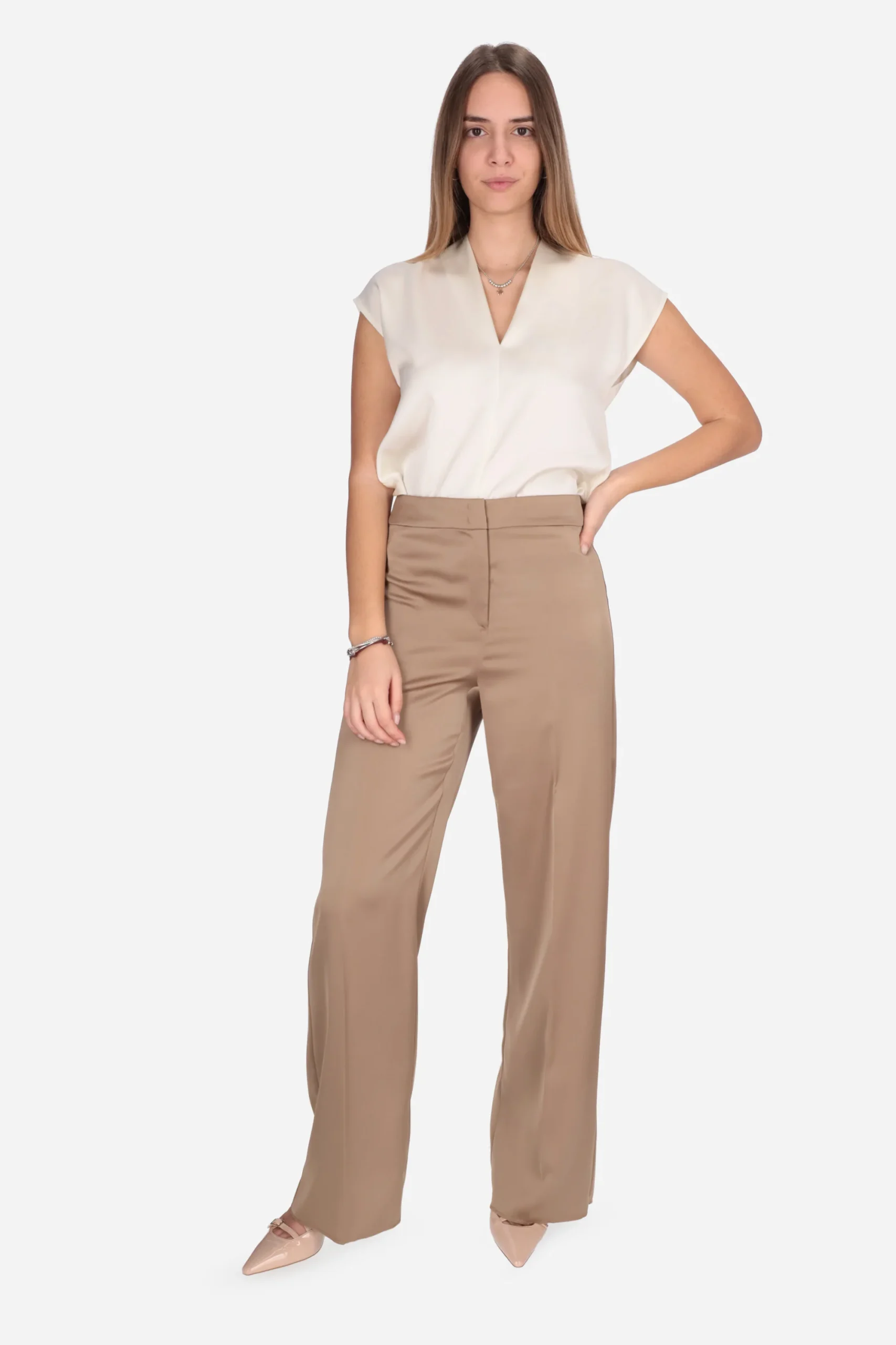 Il pantalone è realizzato in raso fluido.
