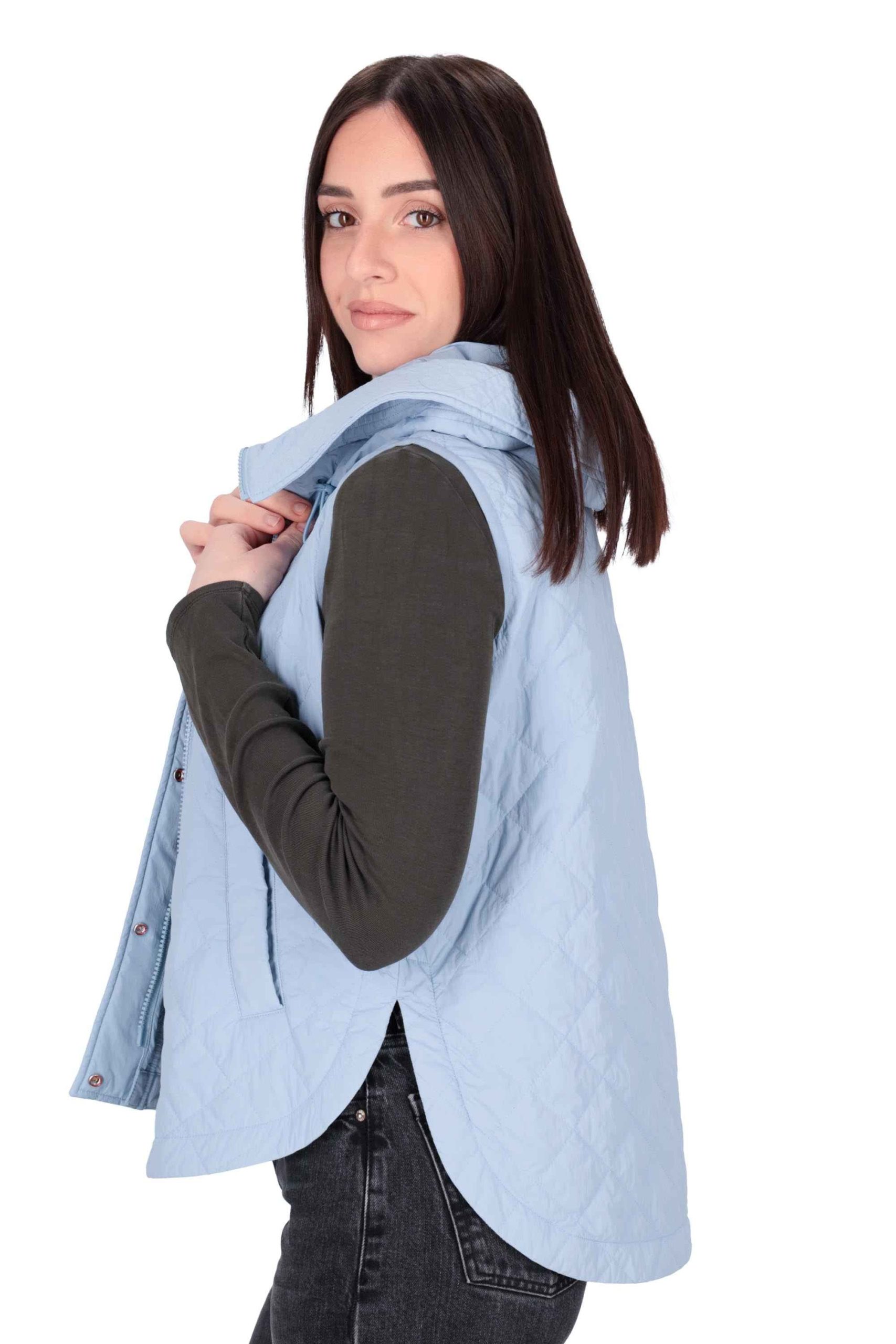 Il gilet è realizzato in tela leggera di nylon, dalla texture morbida con superficie opaca.