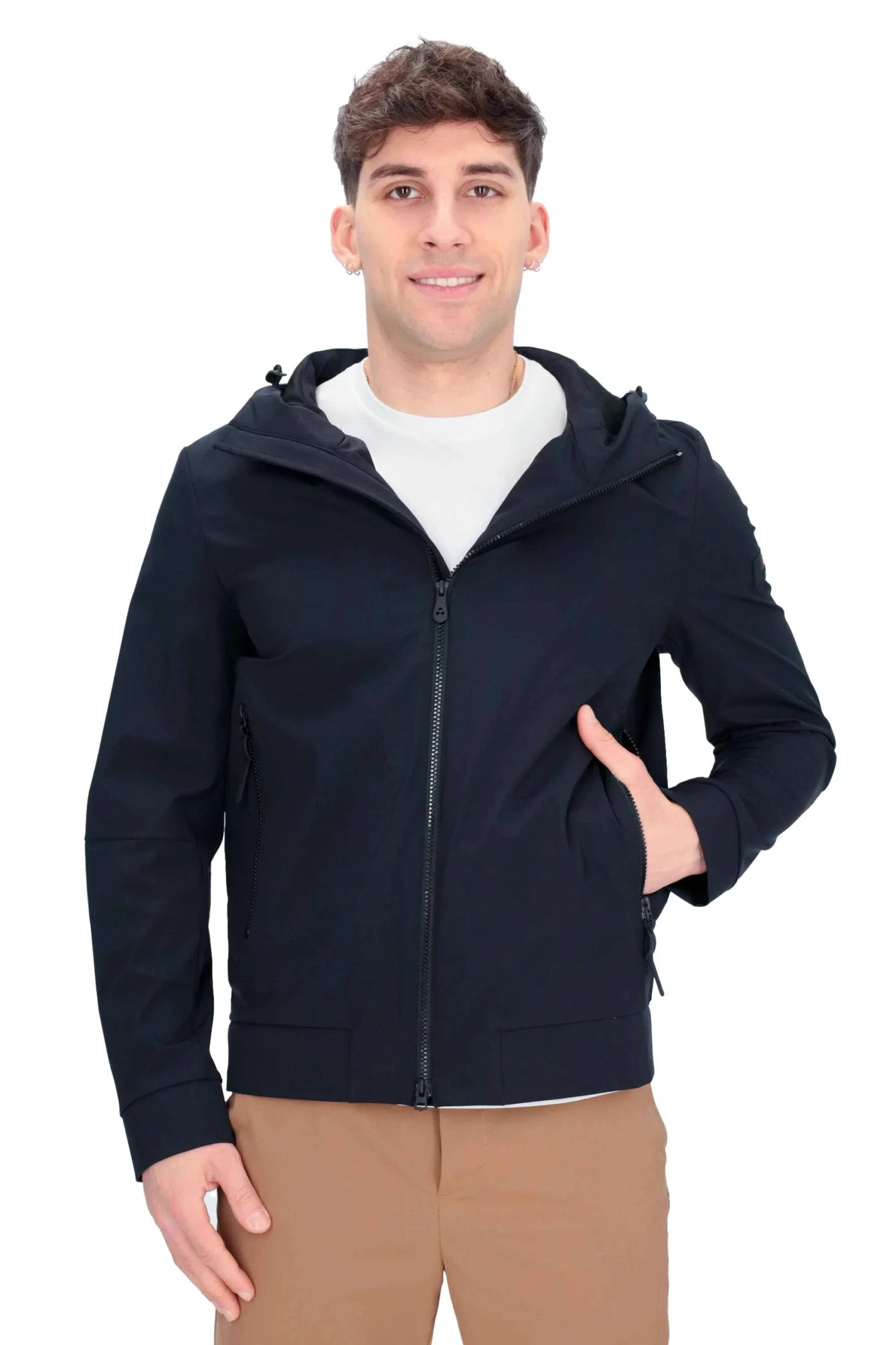 Il giubbino è realizzata in poliestere stretch, con jersey interno morbido e termico, idrorepellente, PFC Free.