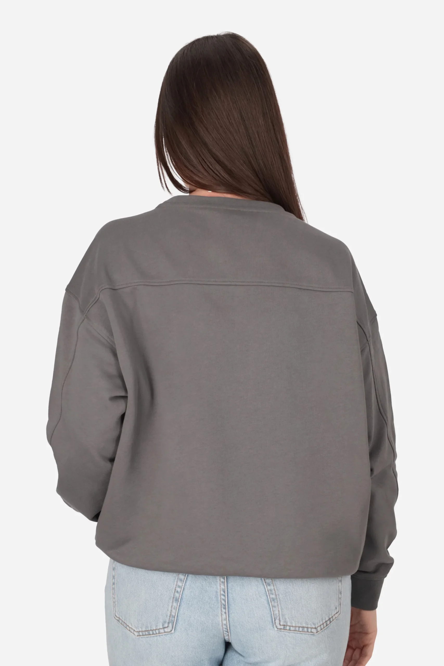 Presenta girocollo, maniche lunghe e bordi rifiniti a coste.