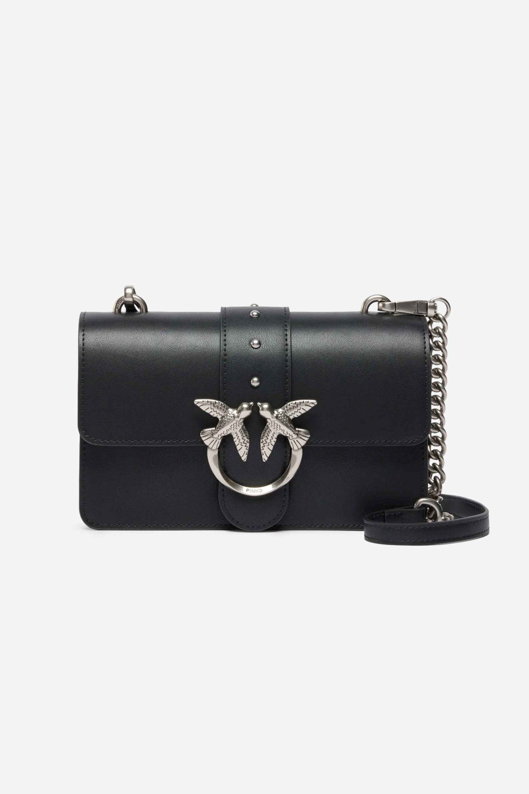 La borsa è realizzata in morbida pelle mano seta, con tracolla a catena in metallo.