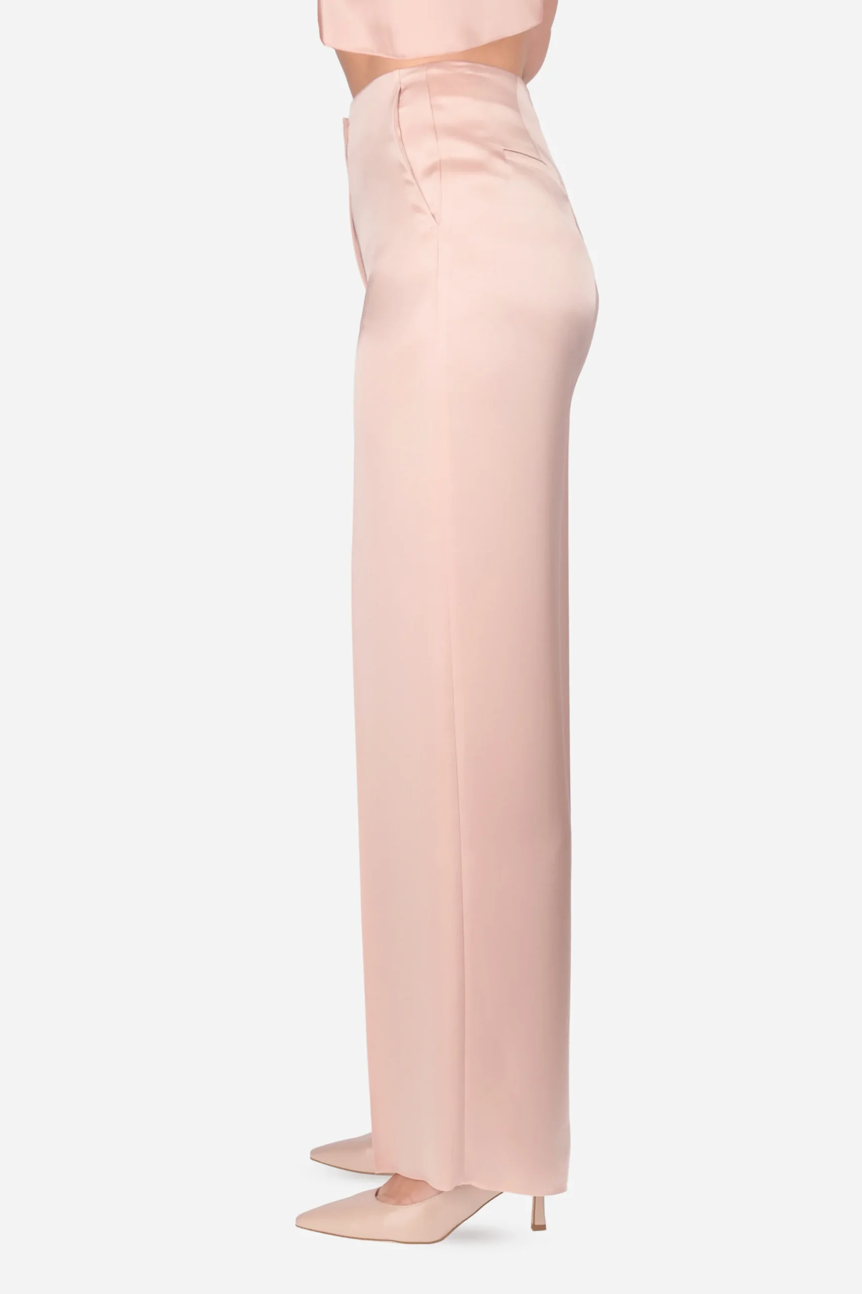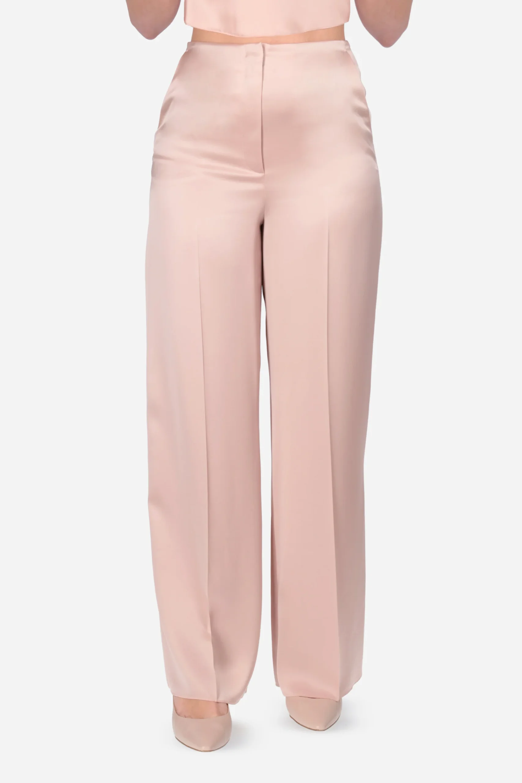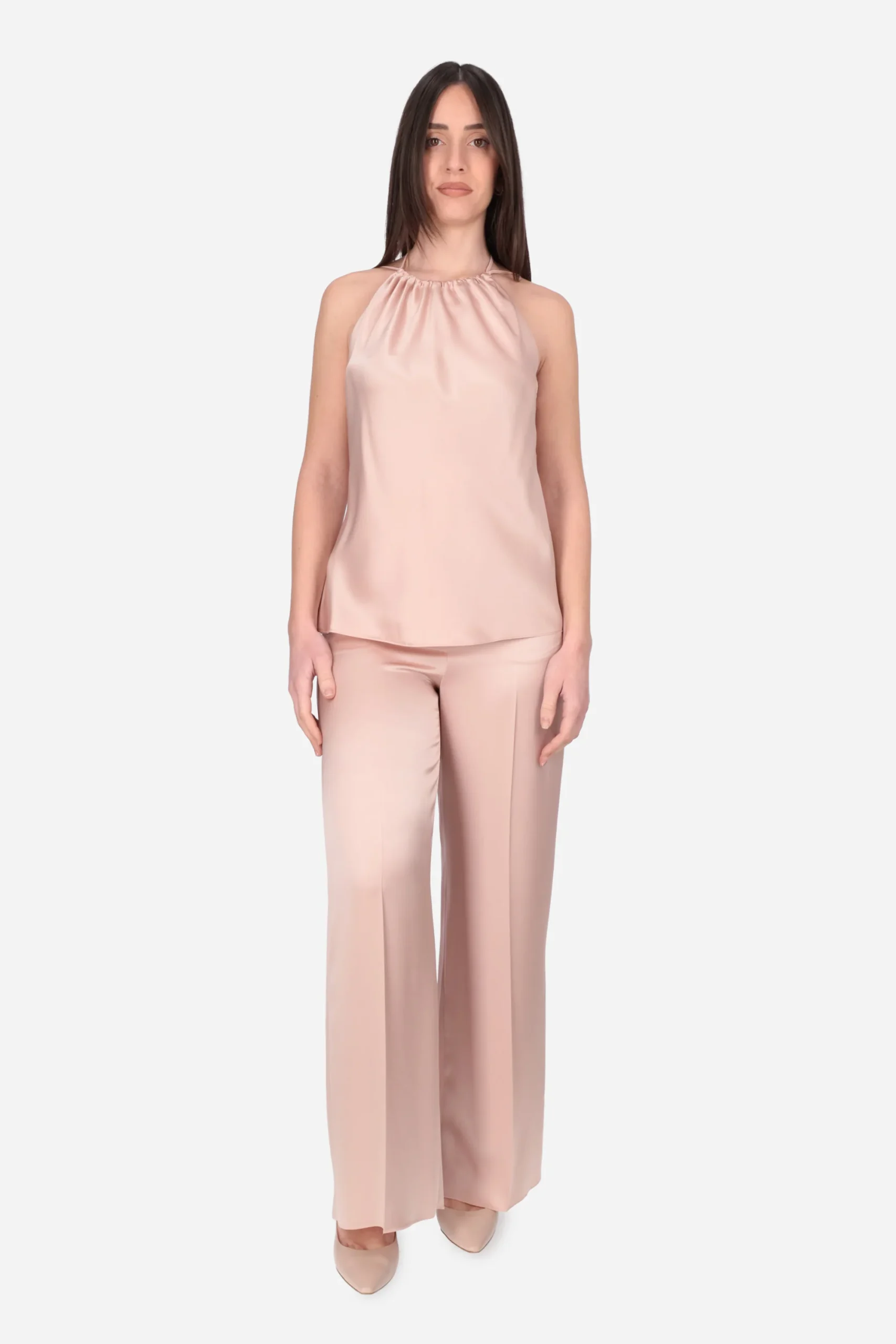 Il pantalone è realizzato in morbido e lucente satin double face.