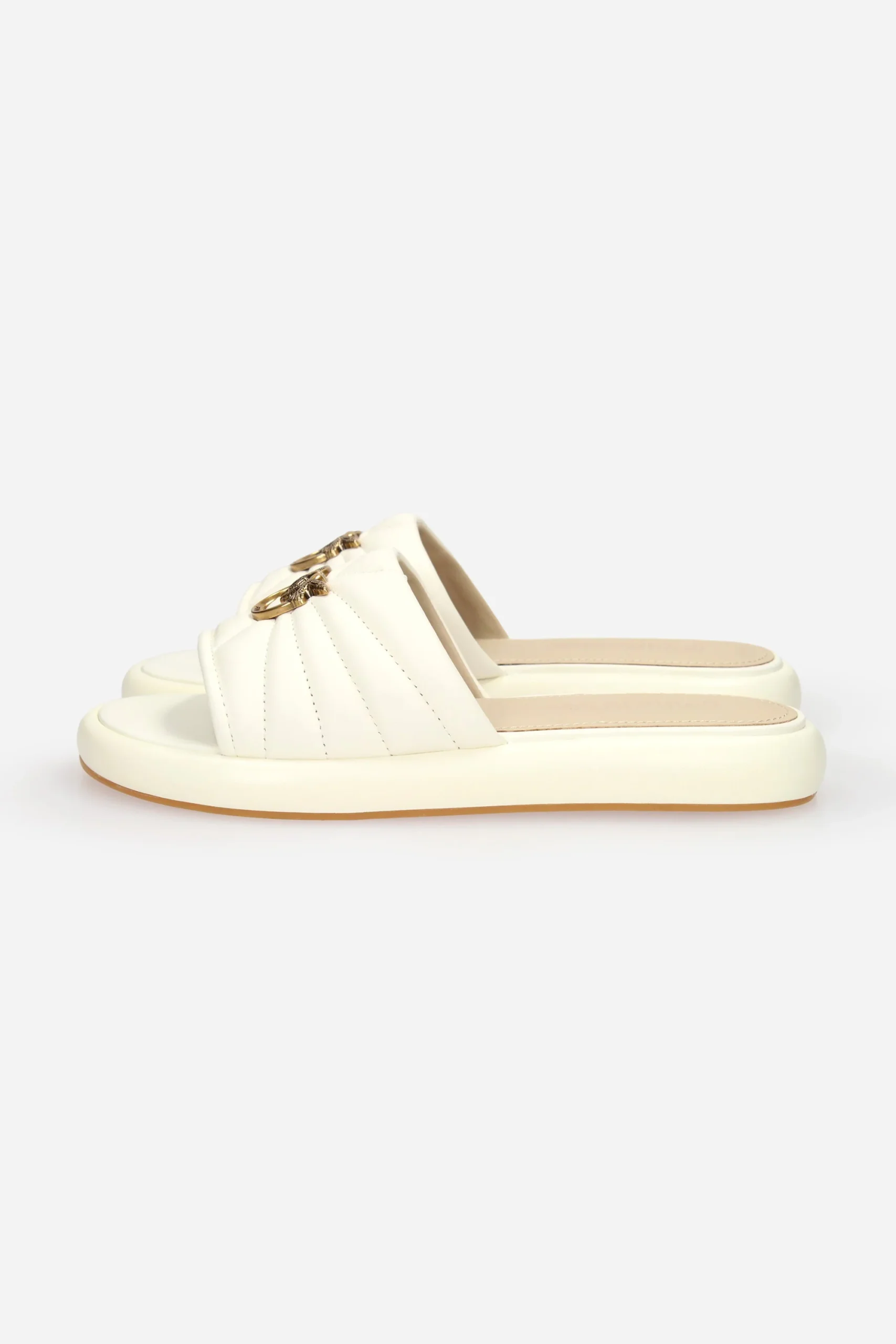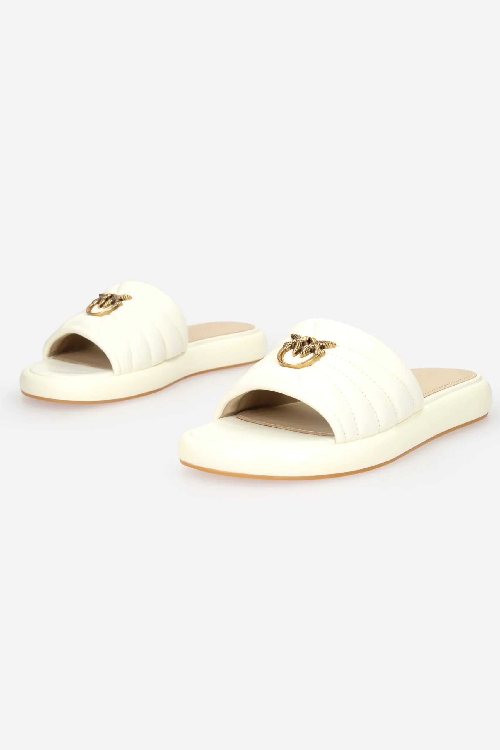 Presenta fascia imbottita trapuntata sul davanti con logo Pinko, plantare in pelle.